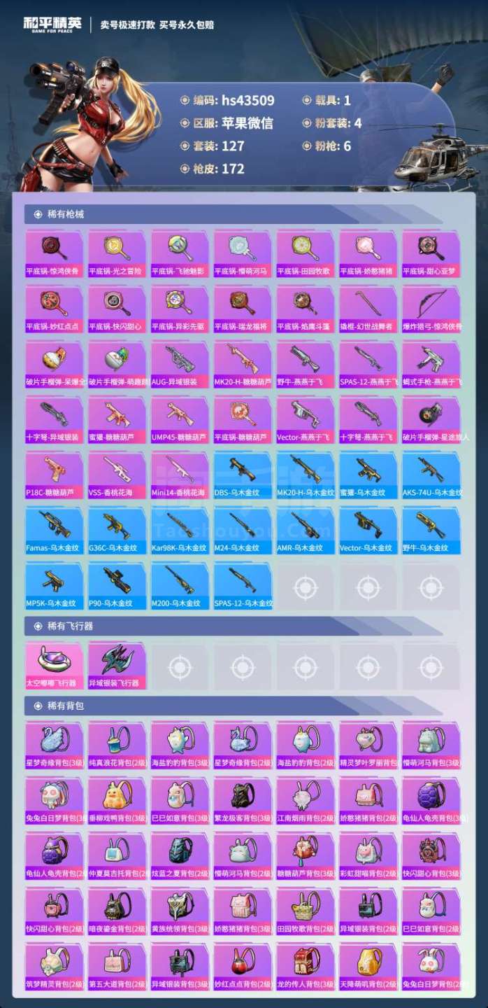 hs43509 苹果微-19王牌印记-有战神框-4粉装-6特效枪-1载具-60222热力值-127