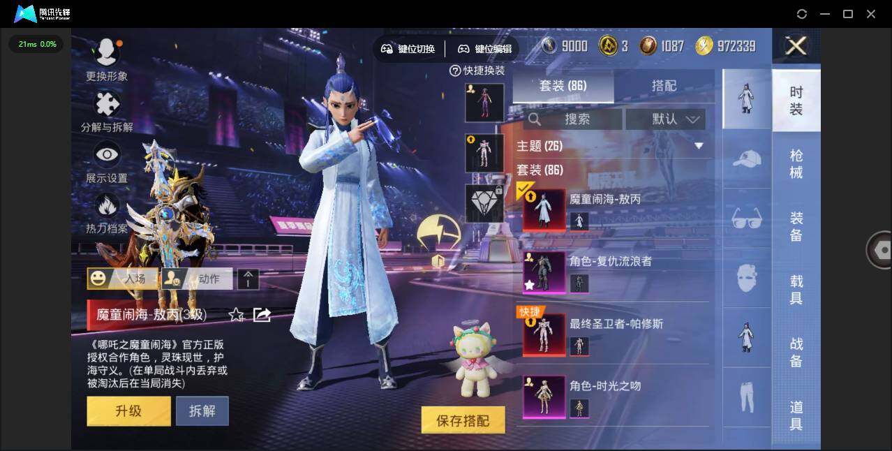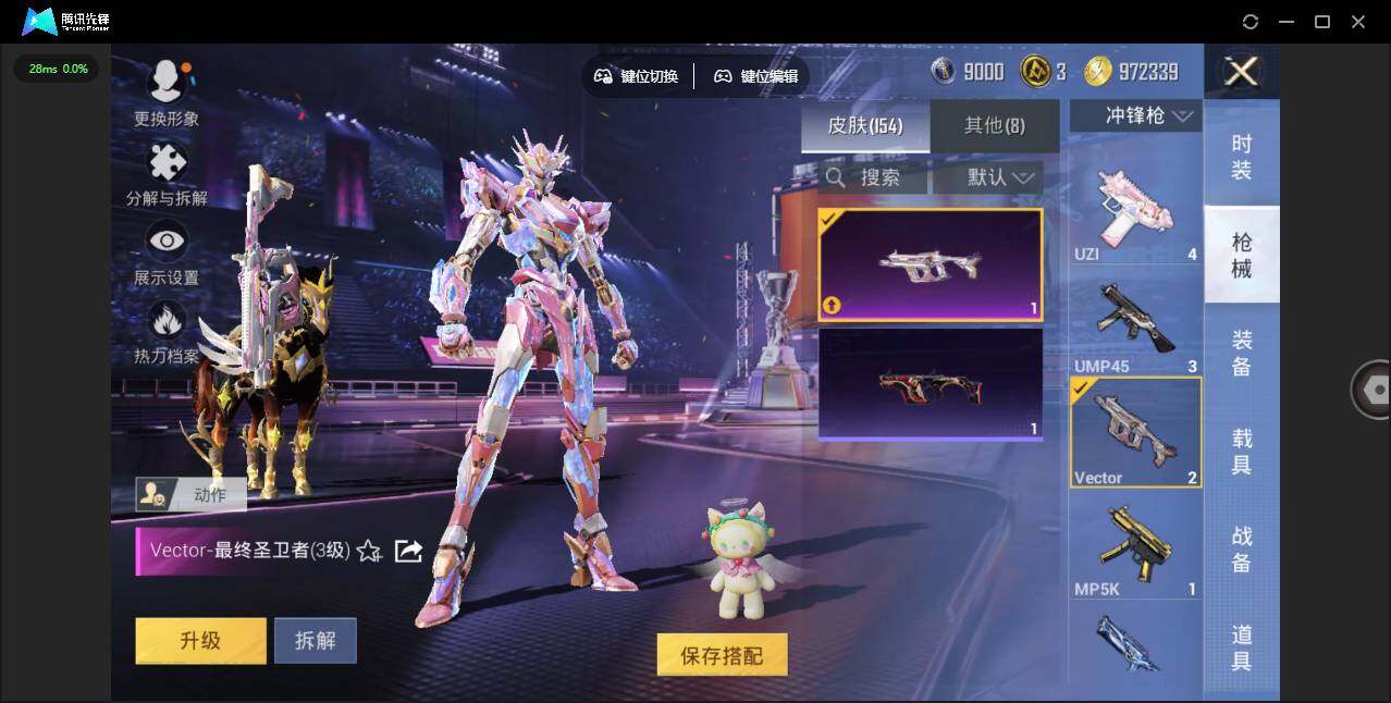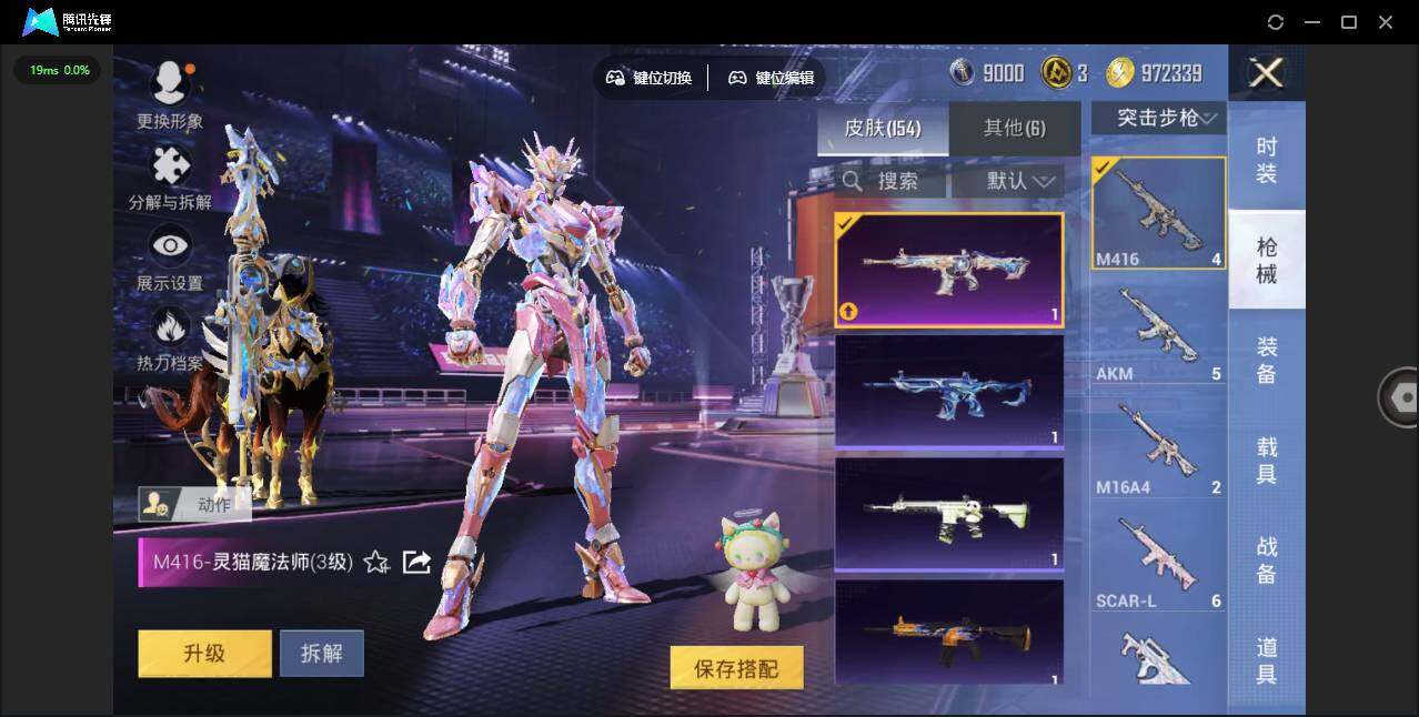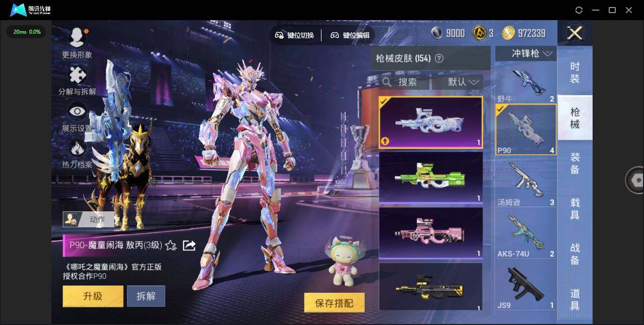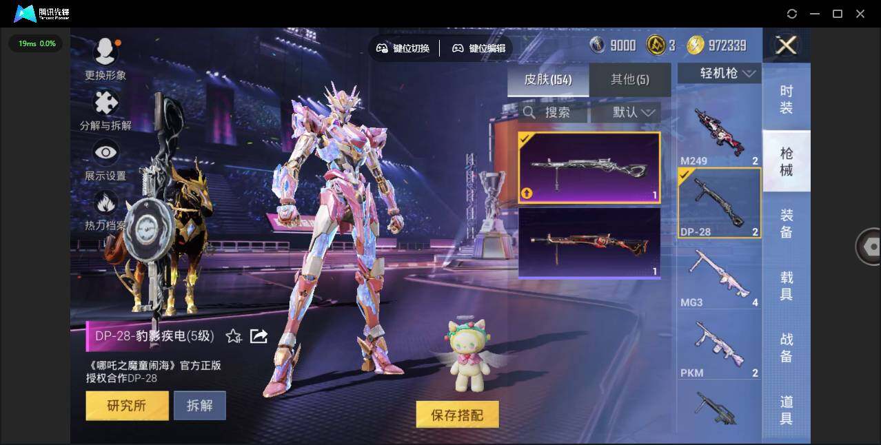 时装数: 86 载具数: 4 枪械数: 153 战备数: 113 热门装扮: 寒光使者,复仇流浪者,星梦奇缘,初号机 觉醒Ver.,英伦信使 载具: 星梦玉骢 稀有枪皮: 七级MG3-梦幻舞会 五级SCAR-L-锦绣绵绵,五级AKM-绿萝繁花,五级Kar98K-巳巳如意,五级DP-28-豹影疾电三级Vector-最终圣卫者,三级M416-灵猫魔法师,三级P90-魔童闹海 敖丙