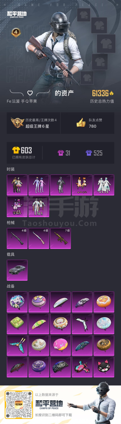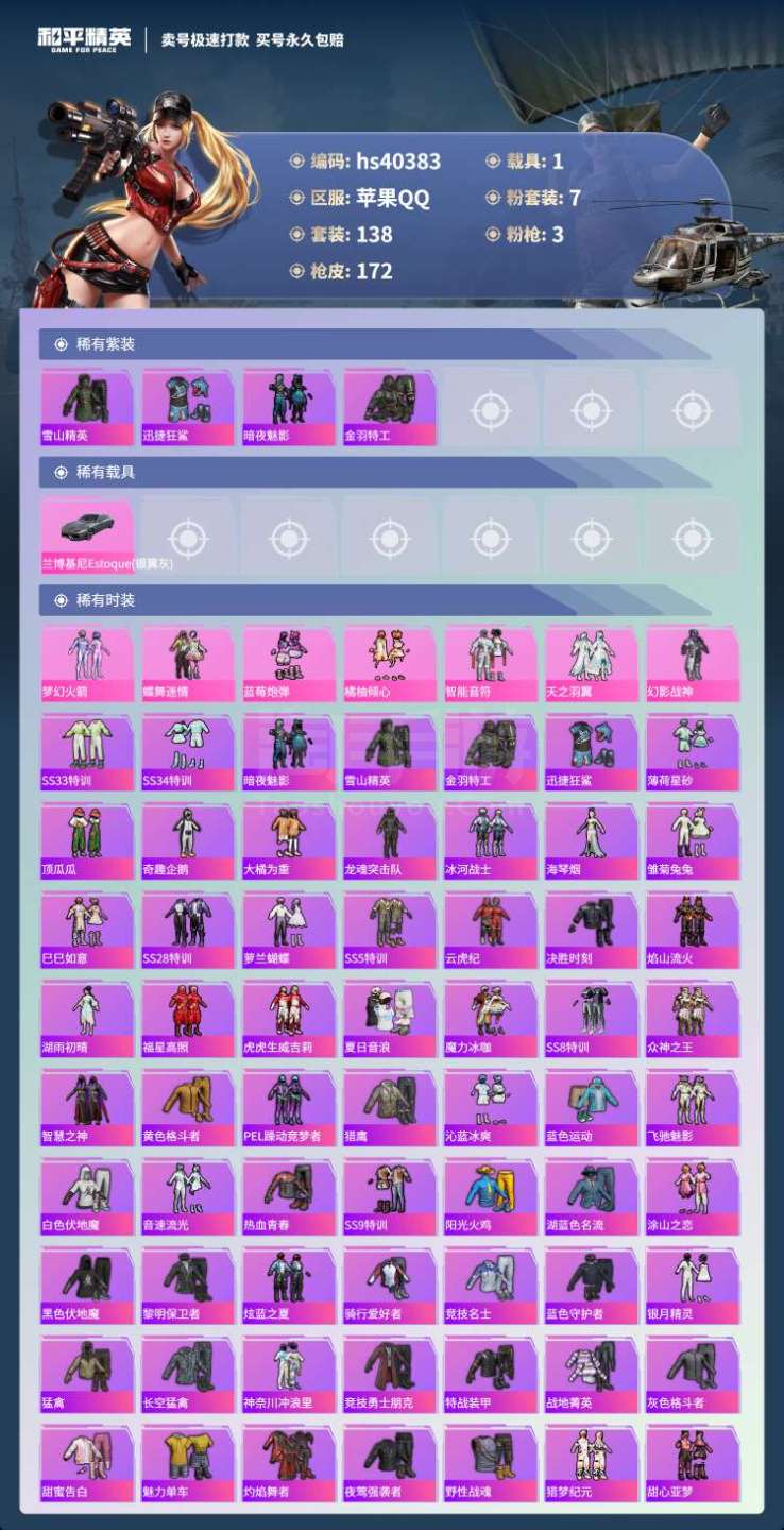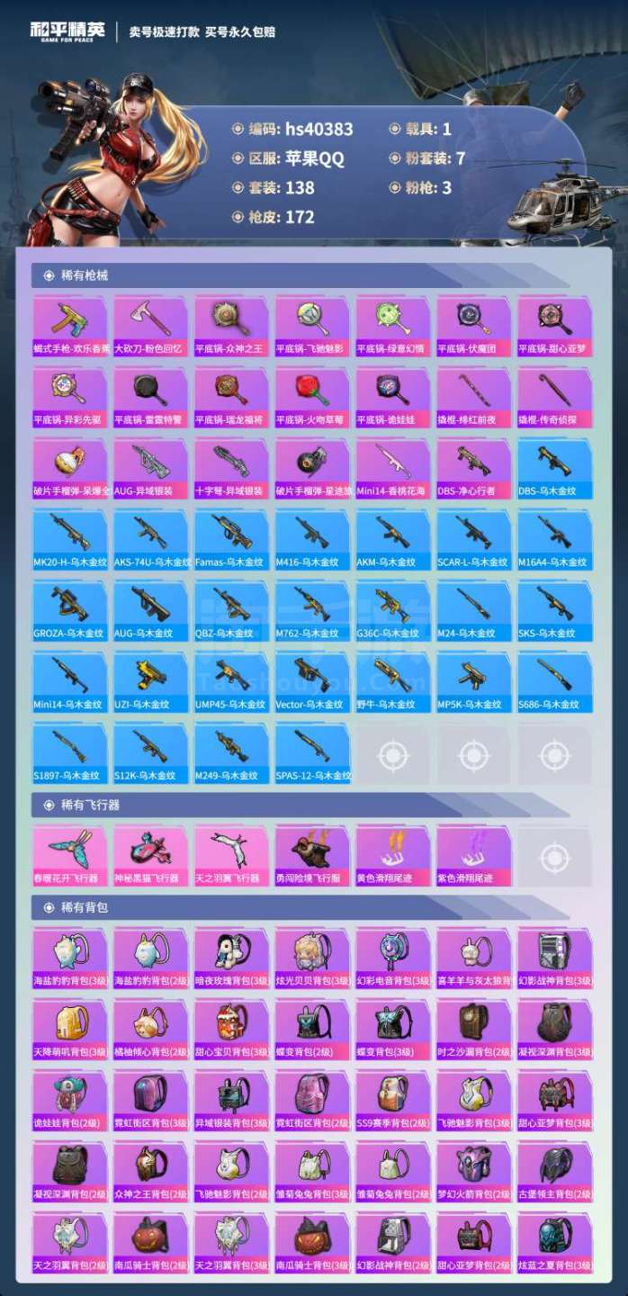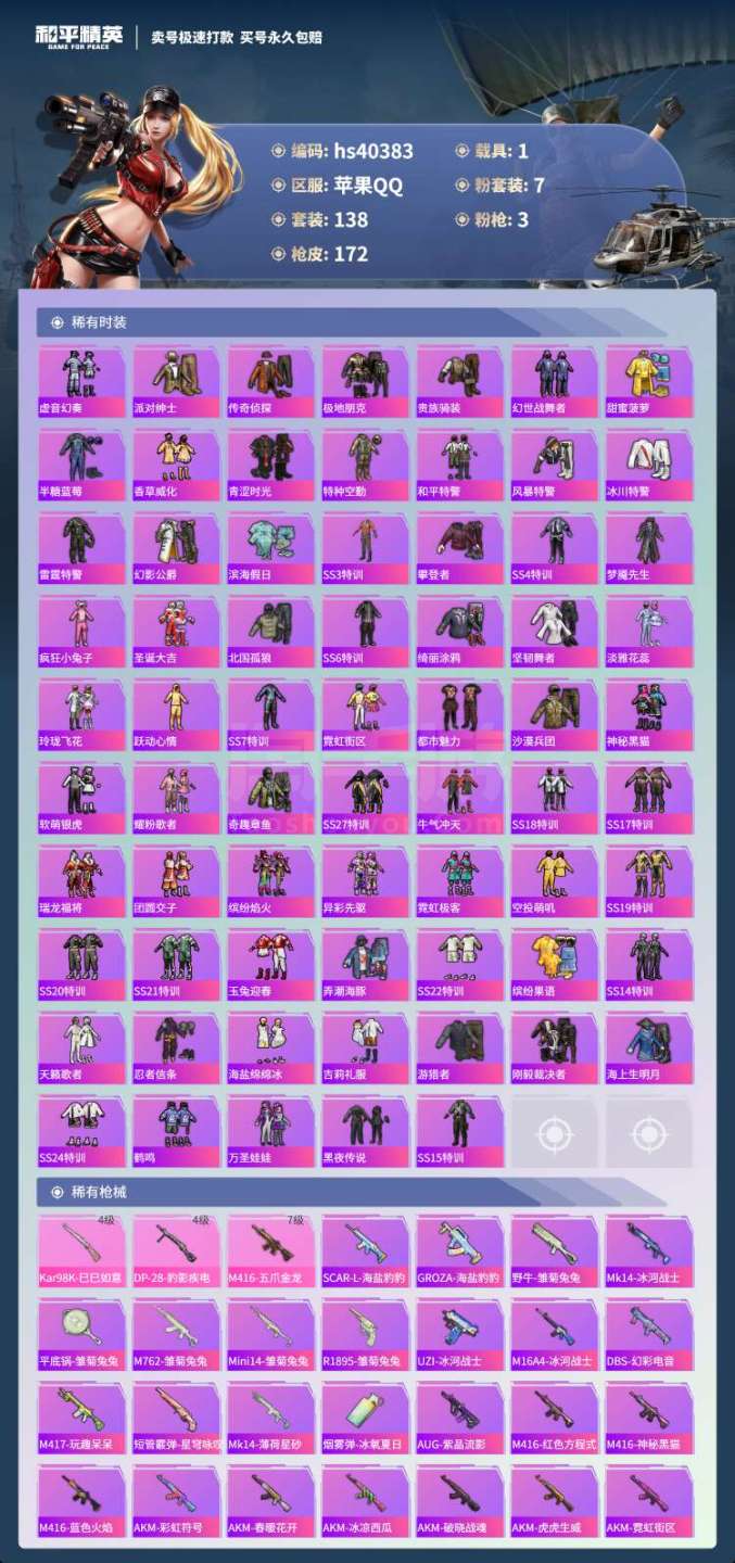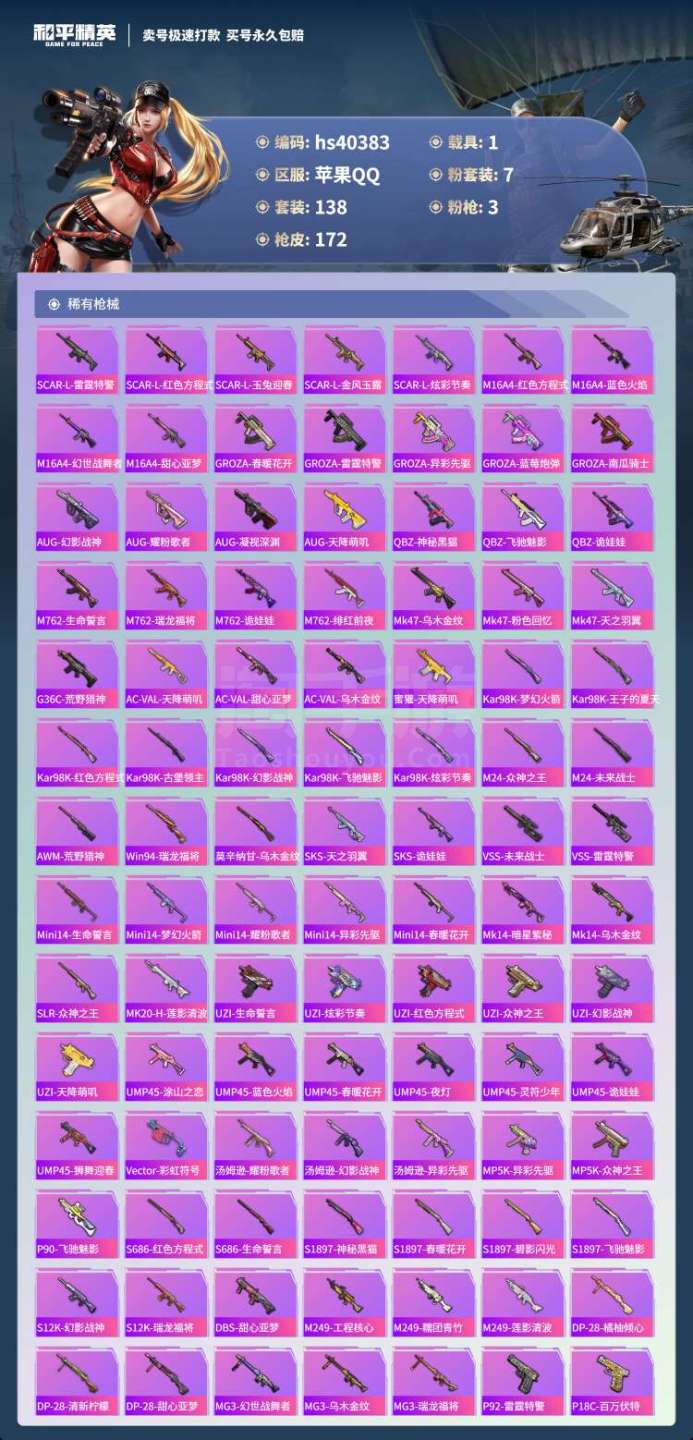 hs40383 苹果手Q-4王牌印记-7粉装-3特效枪-1载具-61336热力值-138套装-172