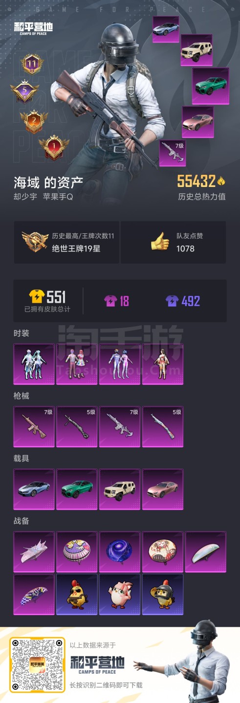 安卓QQ-贵族6-232皮肤-1典藏 万战金标马超狂铁 连体和平精英4粉套4粉枪4载具