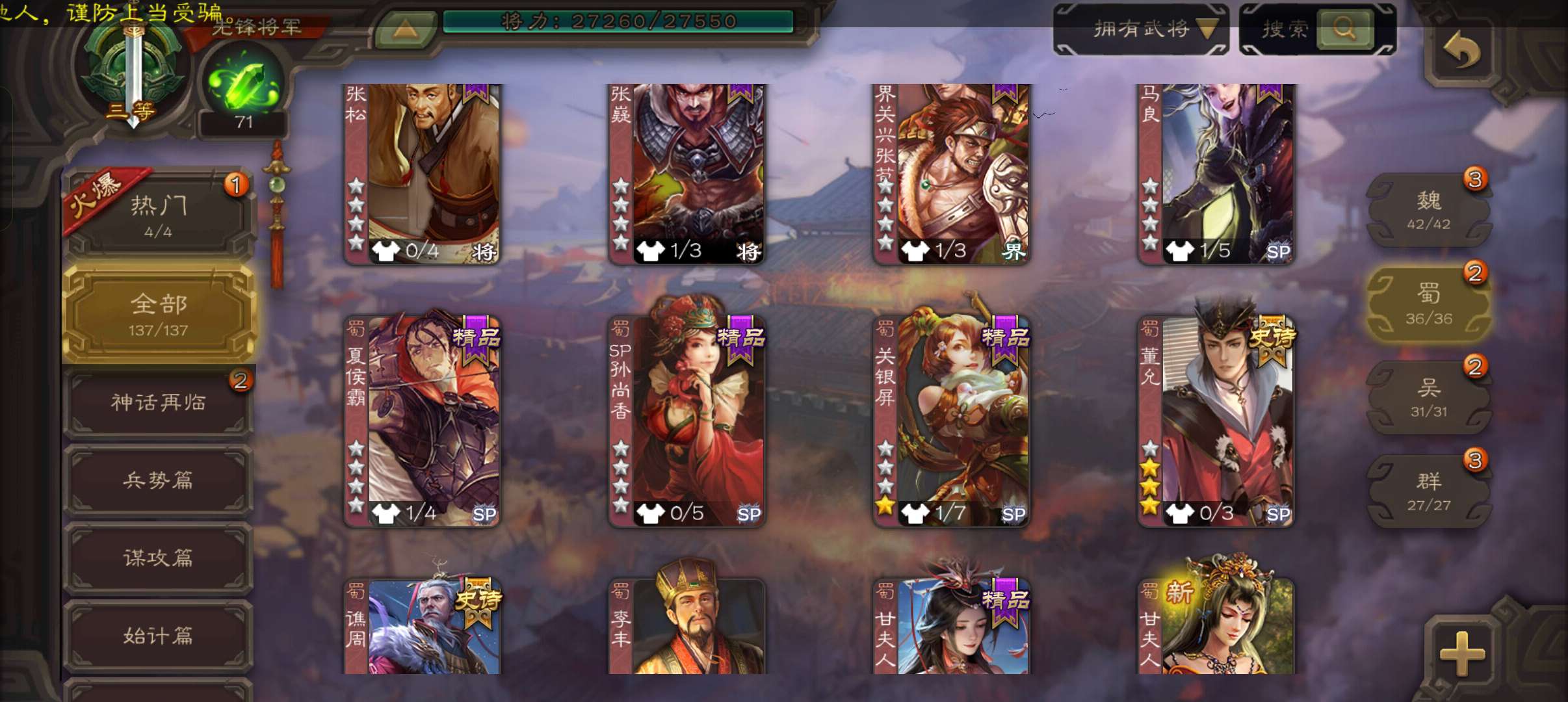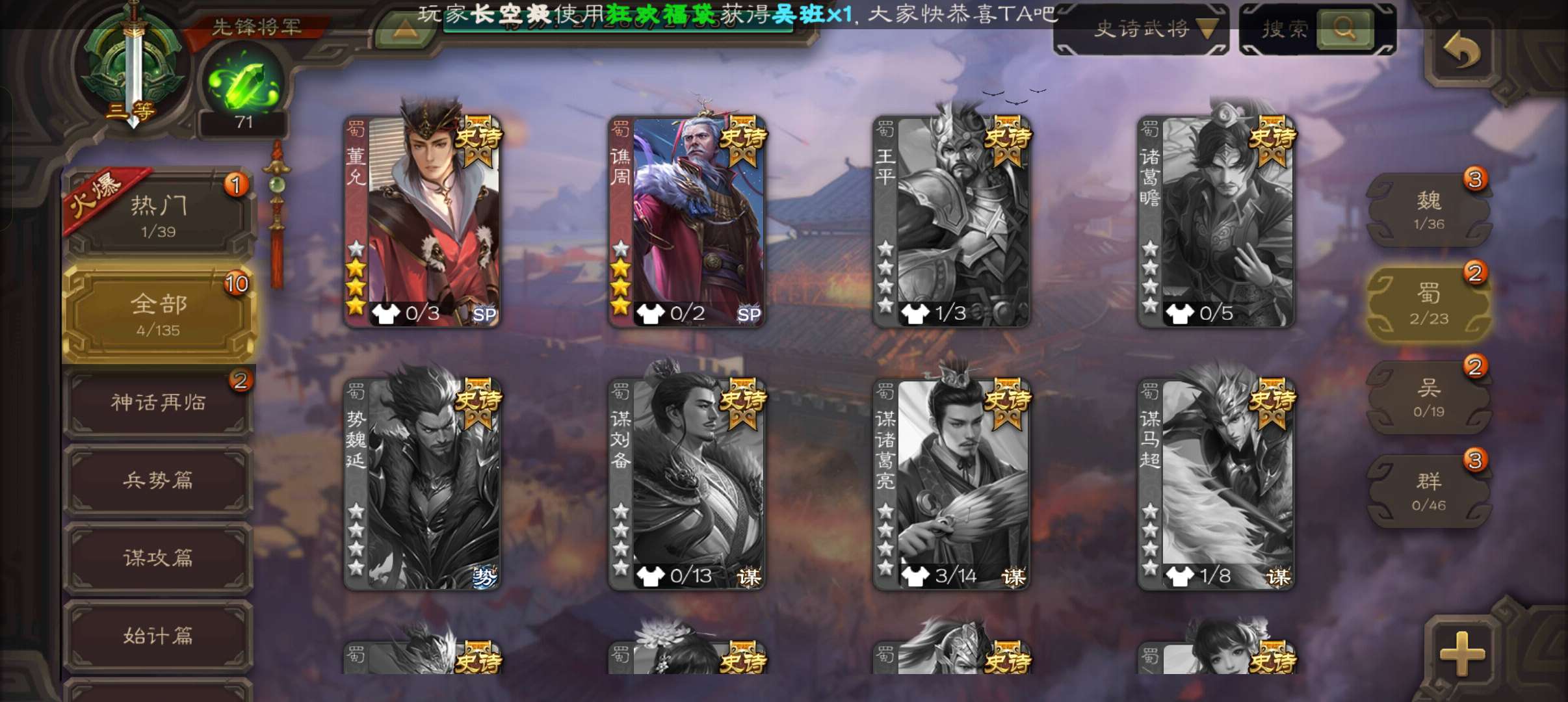 史诗武将数量:
