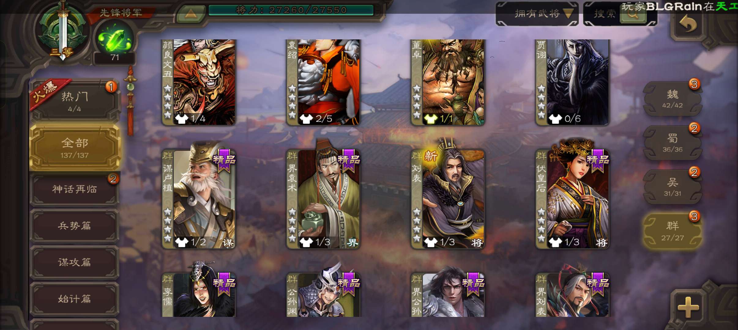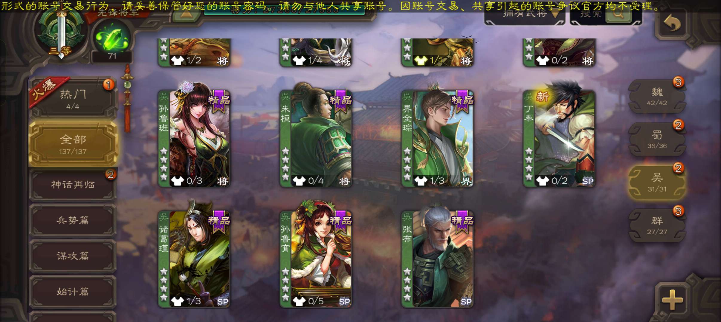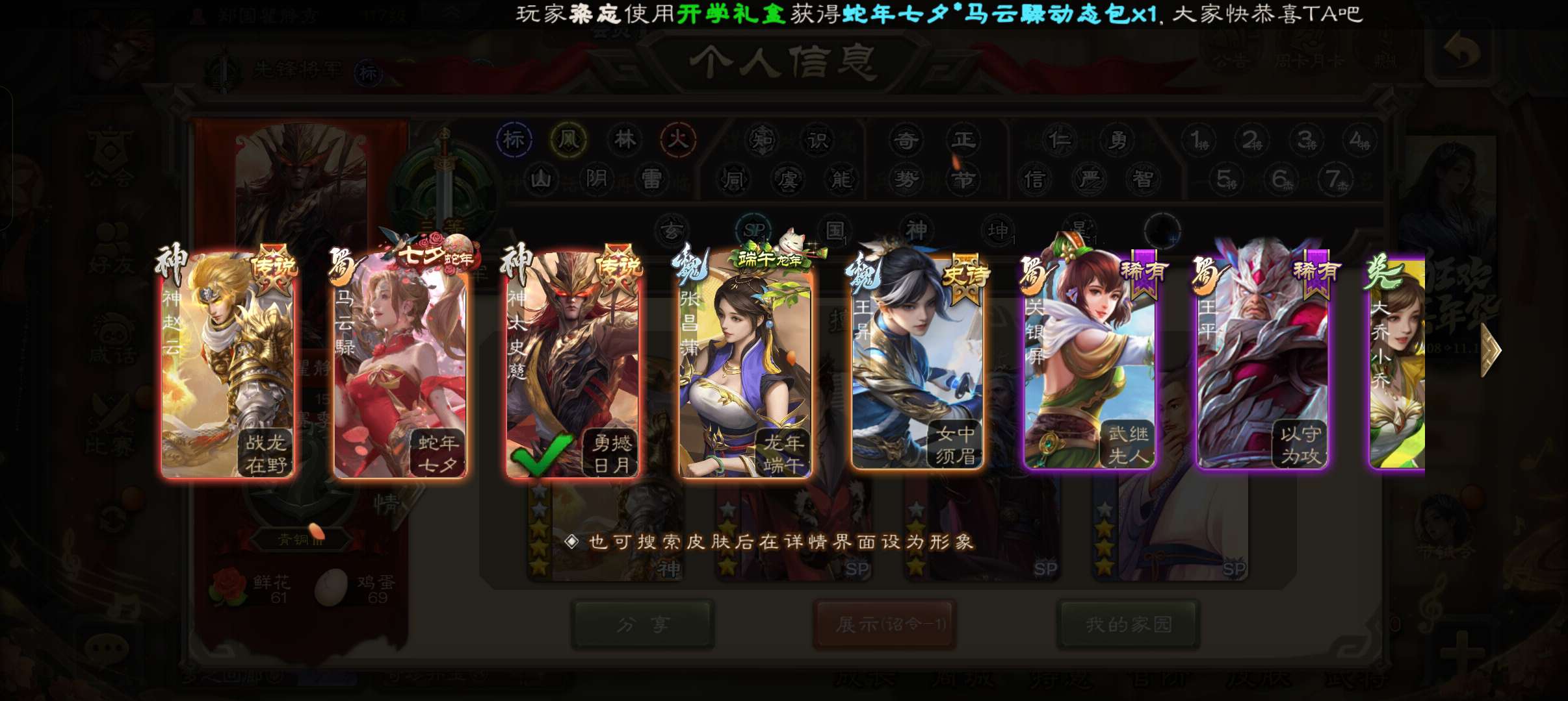 先锋将军,战龙在野动态神赵云谯周董允杨修4史诗,谋卢植谋韩当界全琮甘夫人关银屏137将