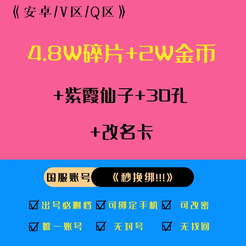 王者荣耀【安卓QQ】安卓紫霞仙子+30孔4.8万碎片2万金币改名卡