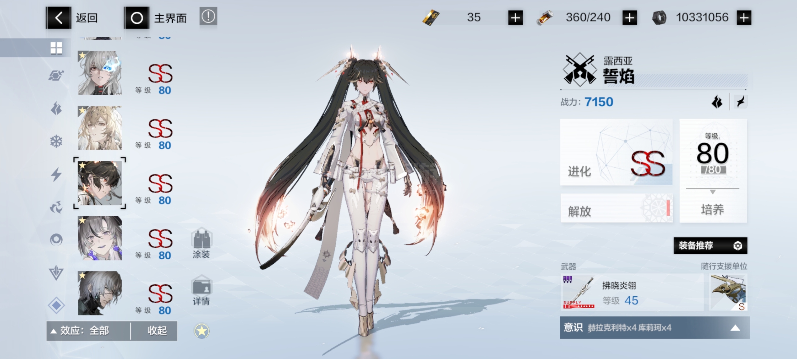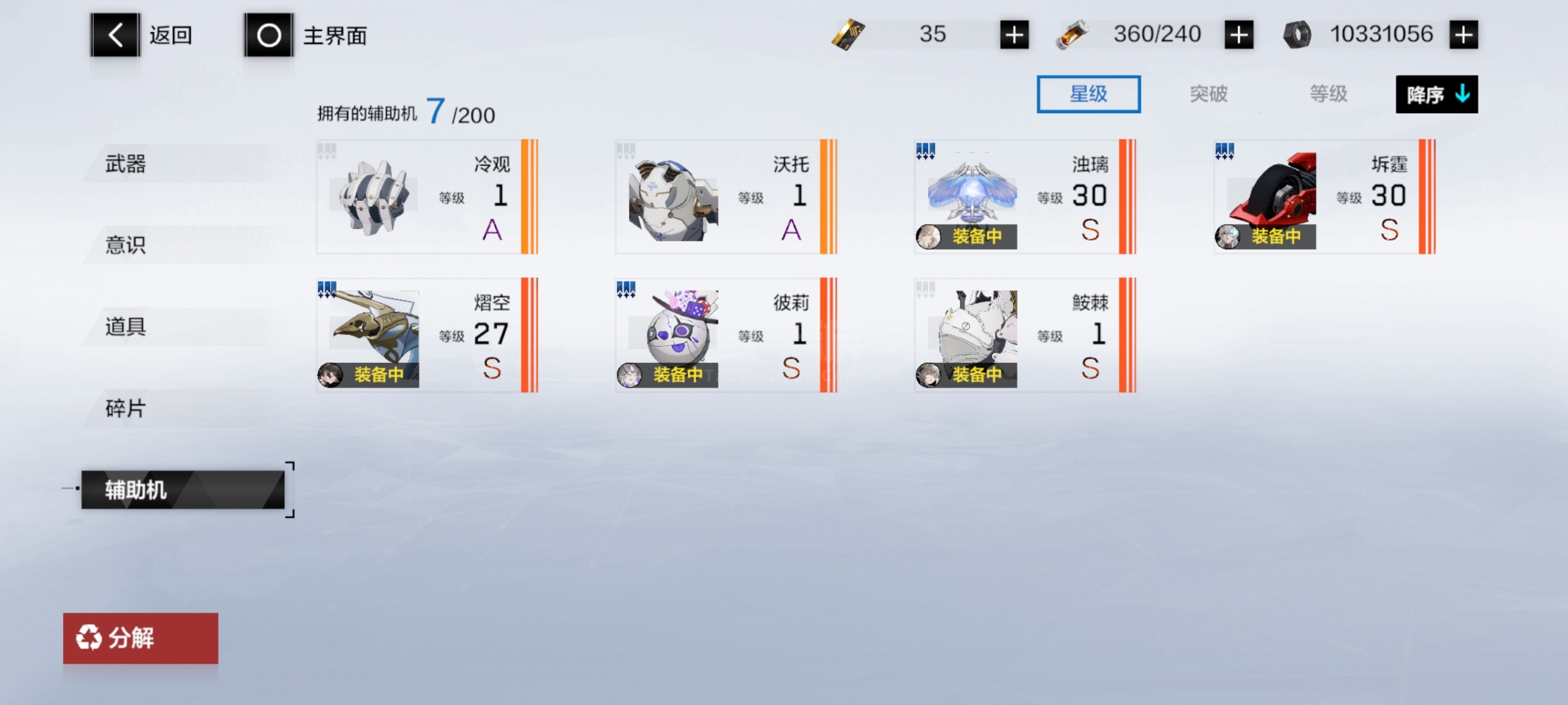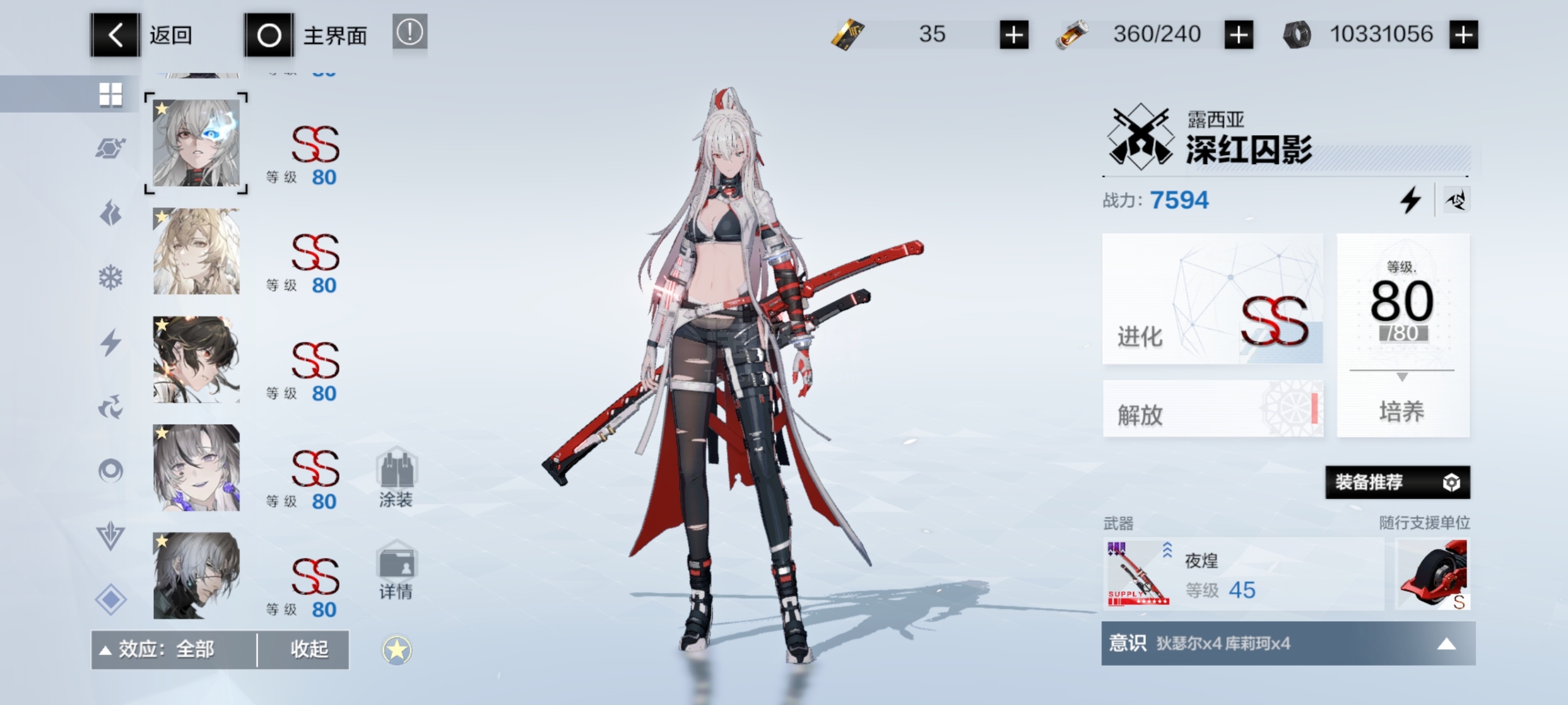 自己看吧这些角色全是2S加六星专武全部升满的,还有众多角色材料,皮肤有两个,六个六星武器