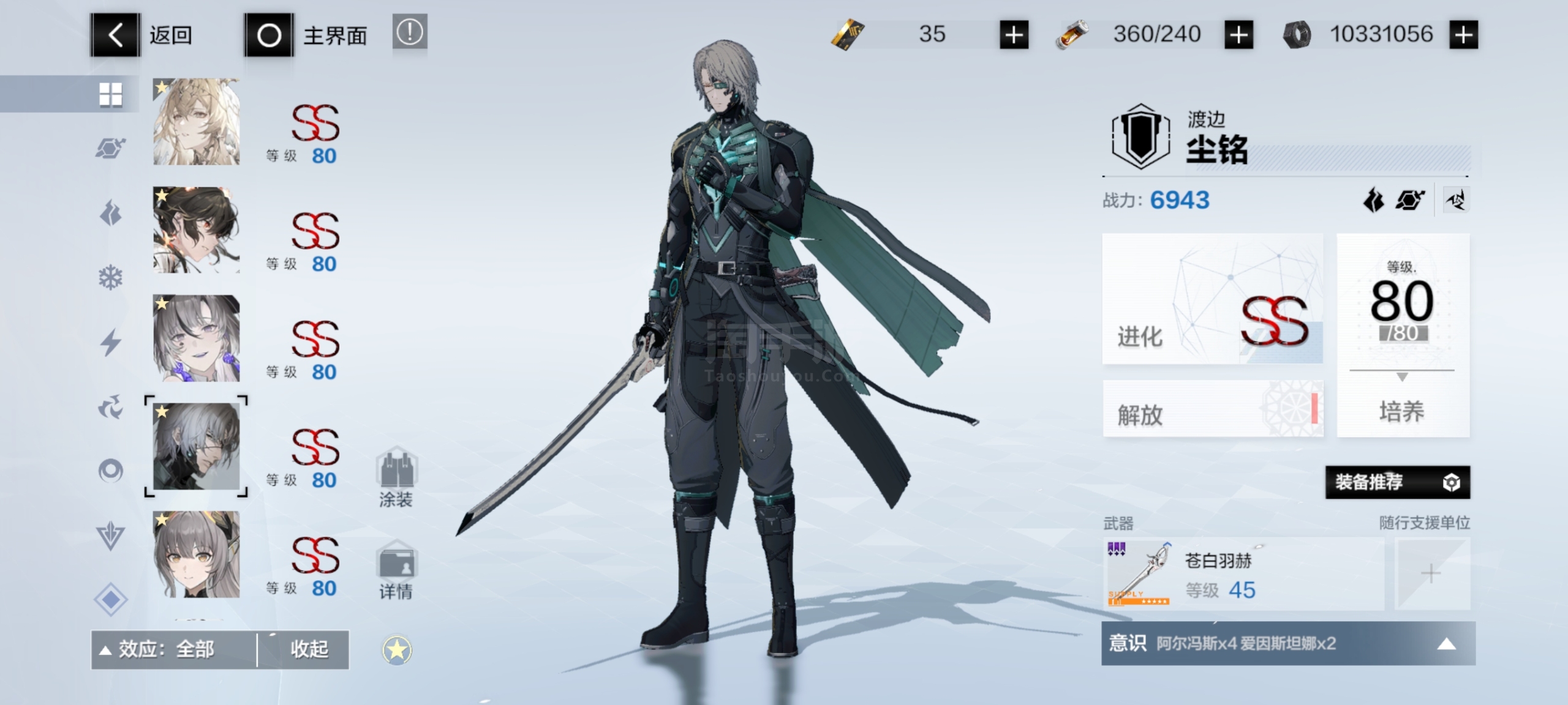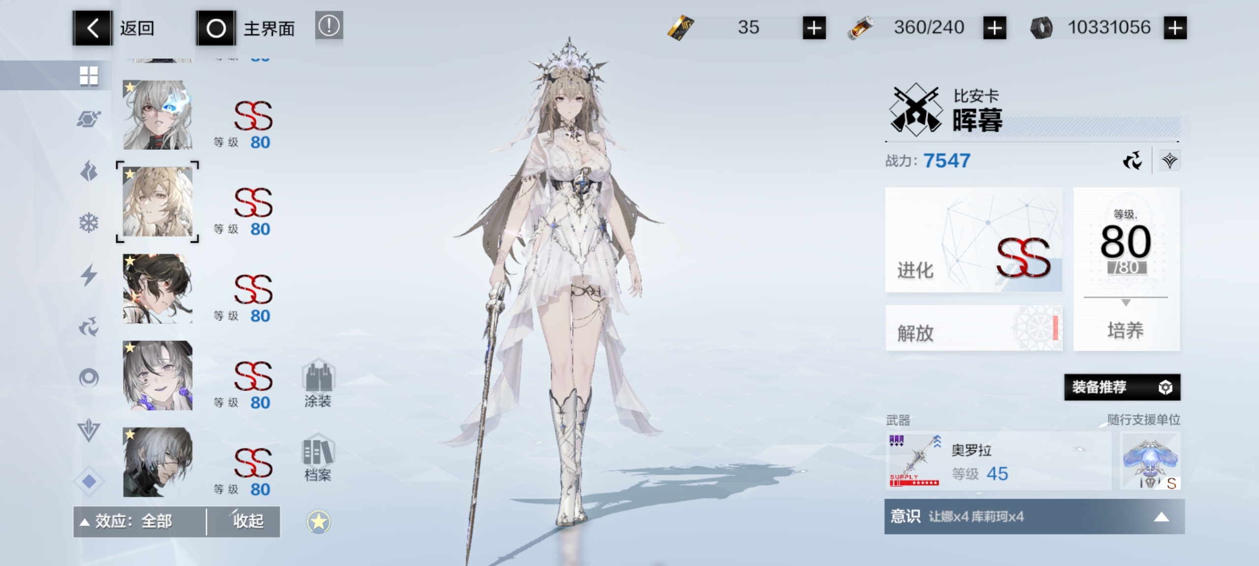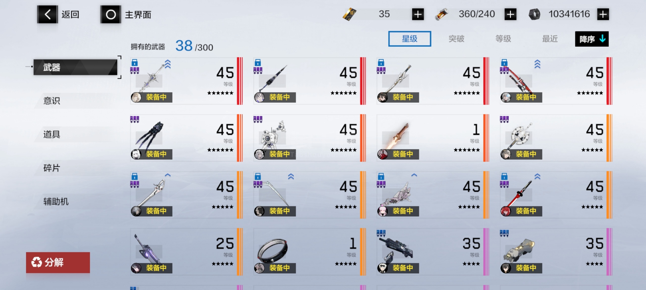 自己看吧这些角色全是2S加六星专武全部升满的,还有众多角色材料,皮肤有两个,六个六星武器