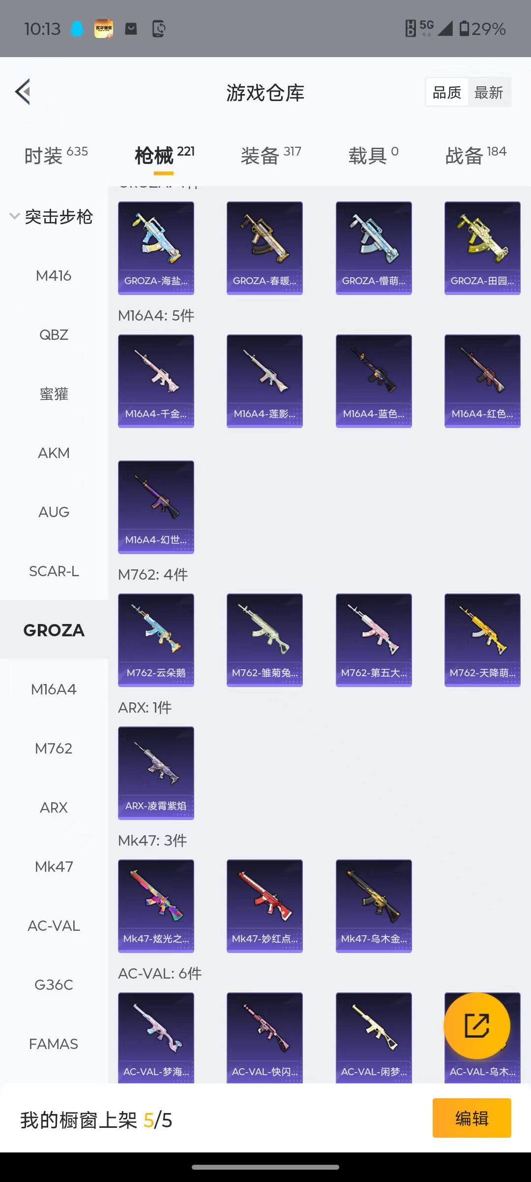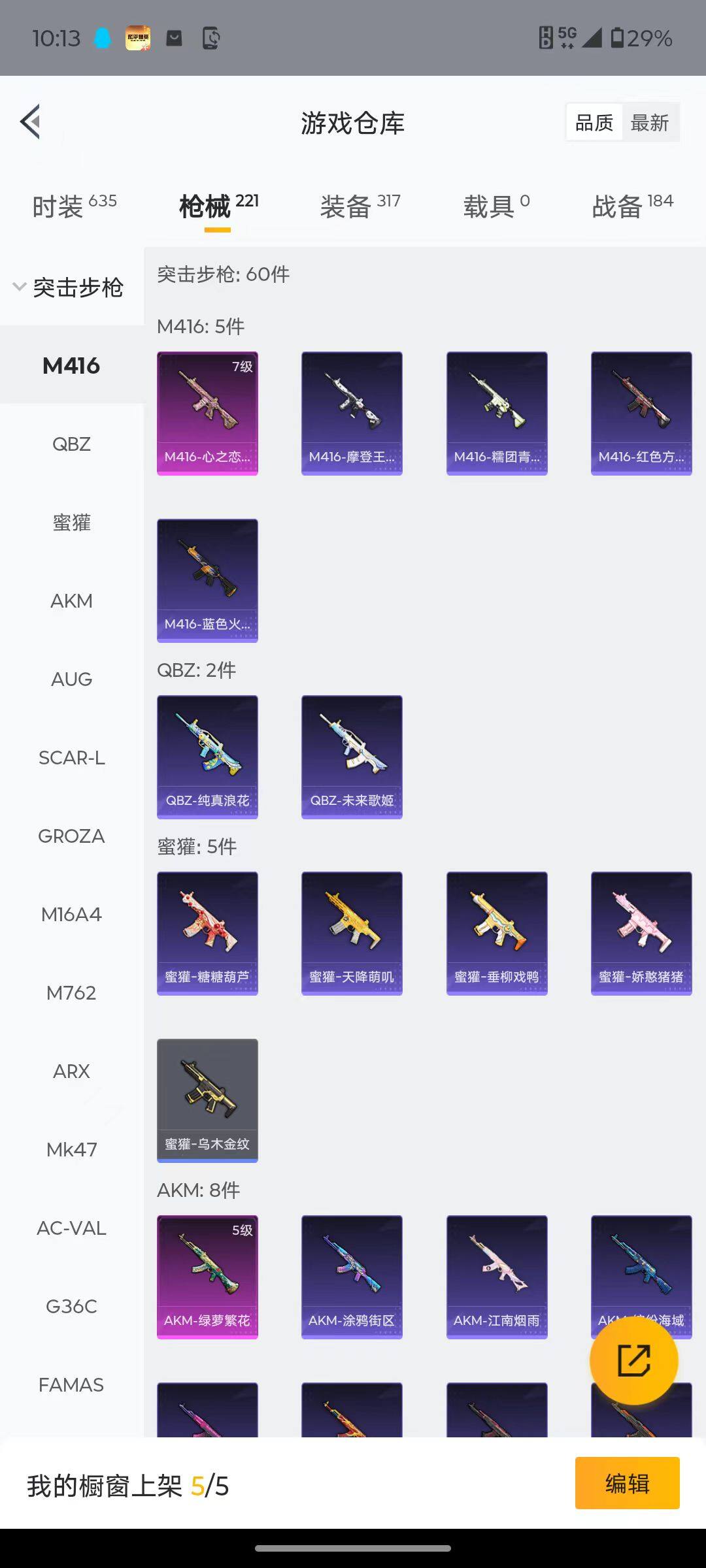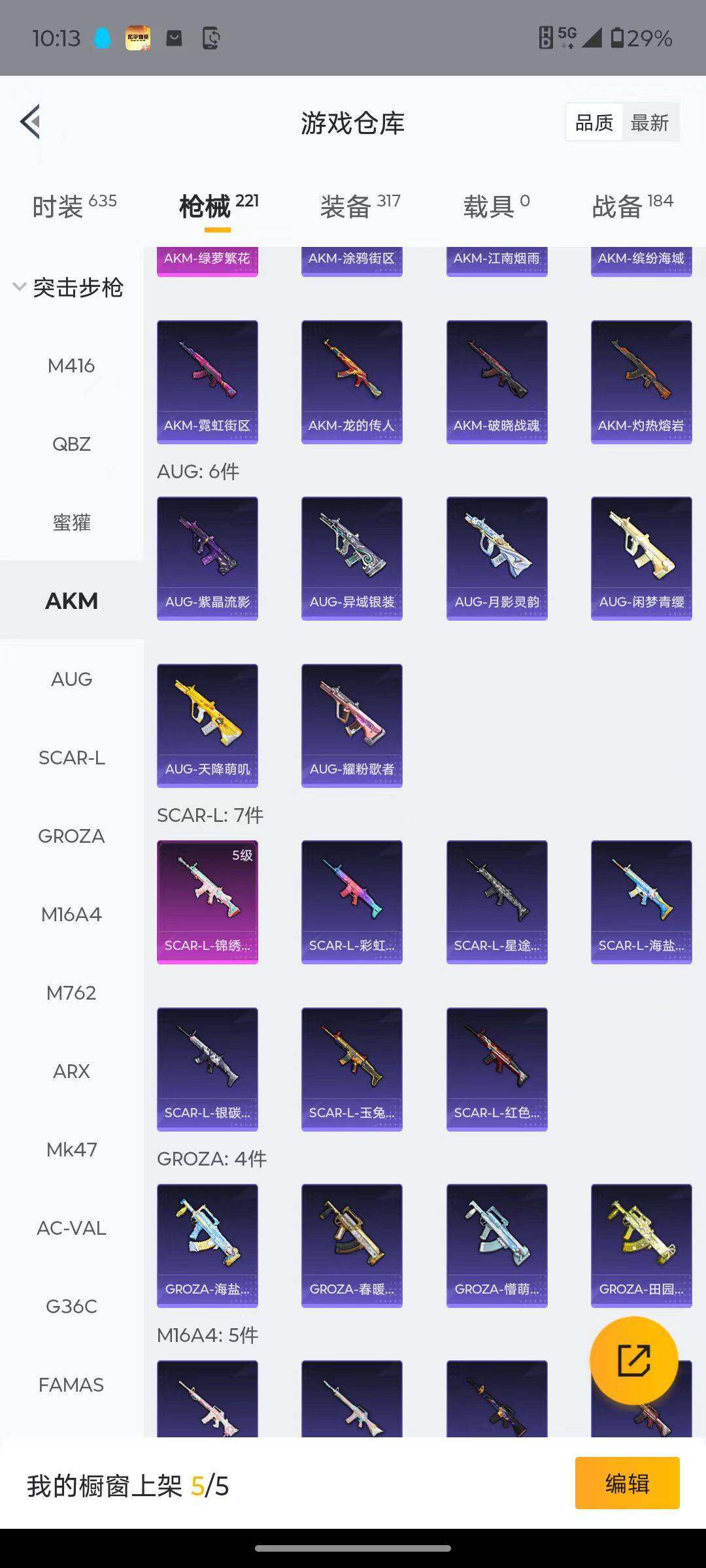 【粉色枪皮等级】:AKM-绿萝繁花(五级),SCAR-L-锦绣绵