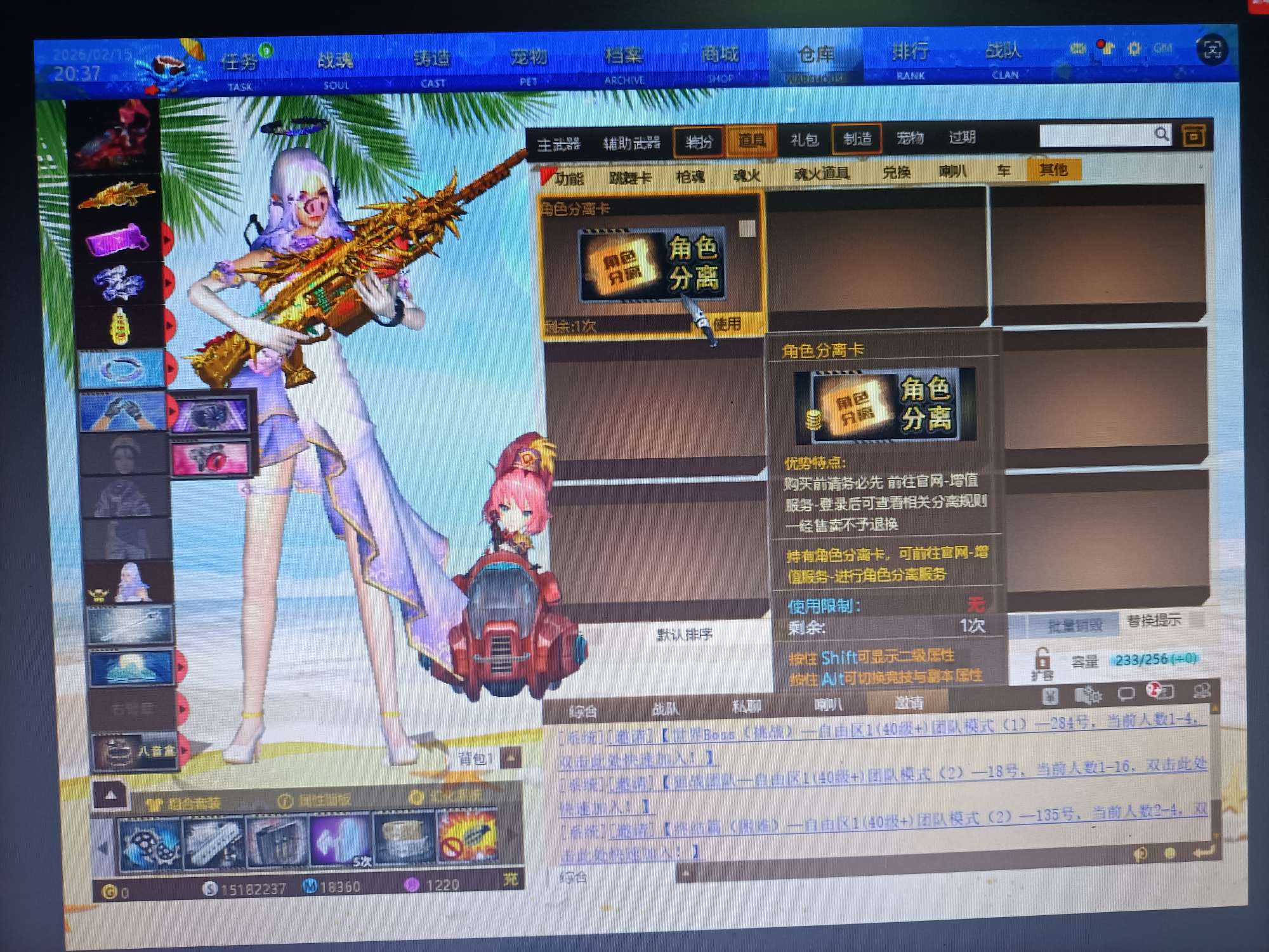 03无充值交易一手号1461卷轴46宝石有角色分离卡到你号上8.5枪8星宠物副本炮姐副本套装爆破套装