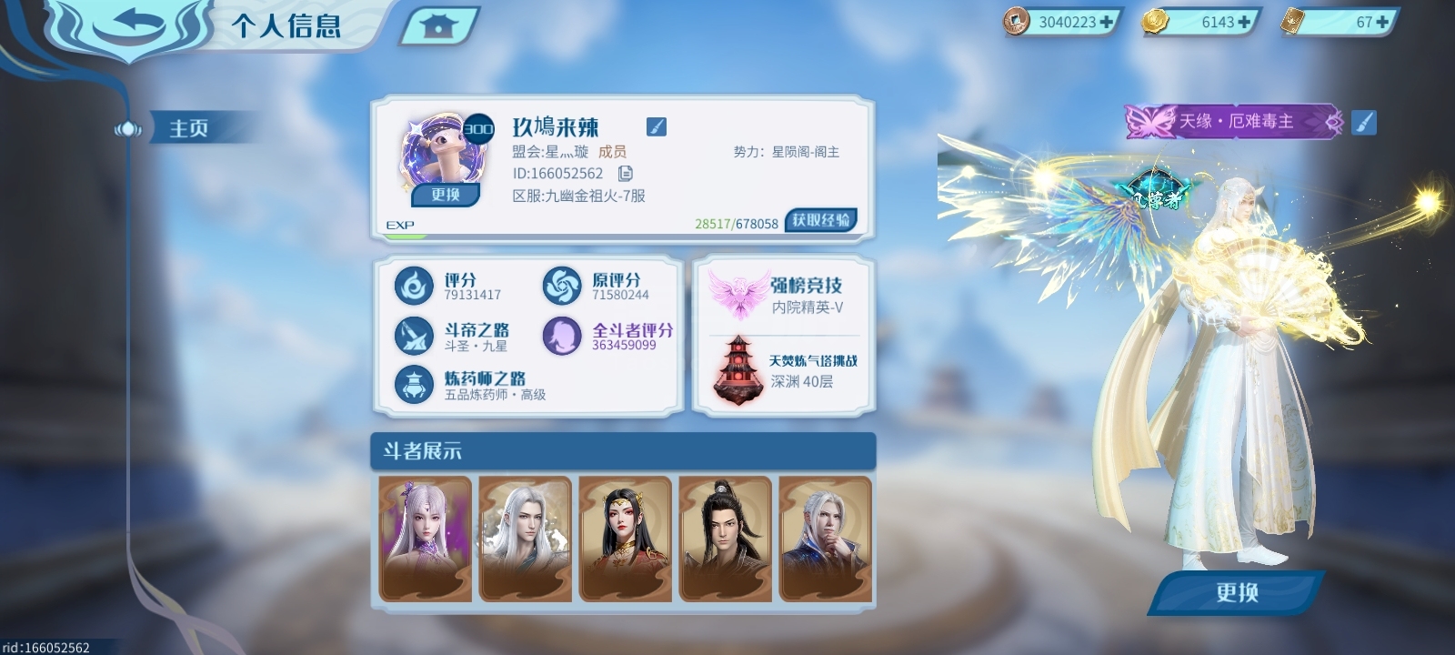 原战7200W赛季末最高9100W氪金2万7,灵体都极好,美杜莎皮风尊白皮,该有的火都有