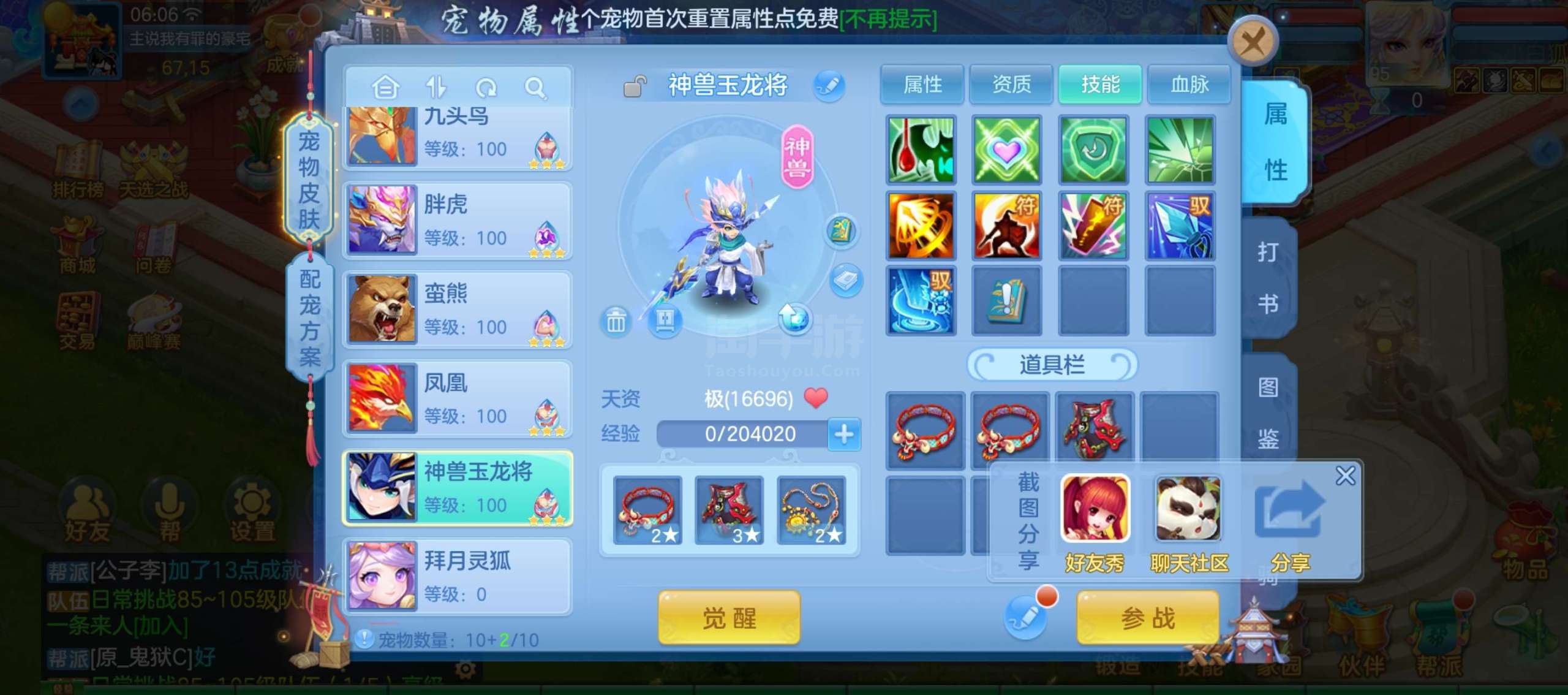 五技能神兽250万银子