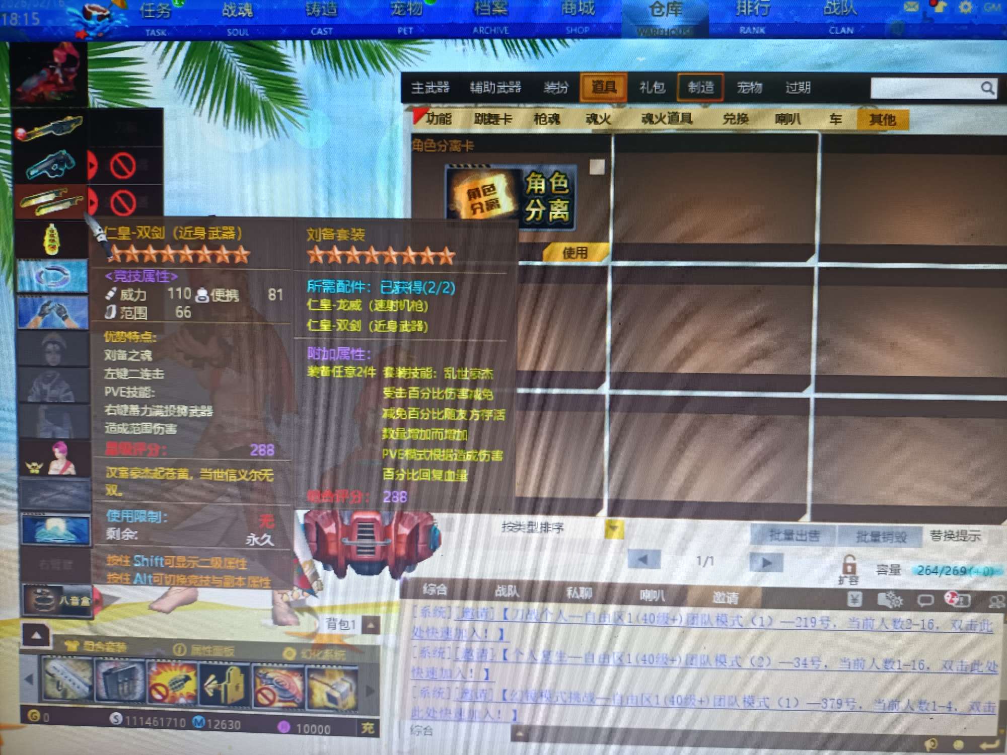 05无充值交易一手号1285个卷轴22宝石有角色分离卡8.5枪吸血套8星宠物副本炮姐副本套装爆破套装