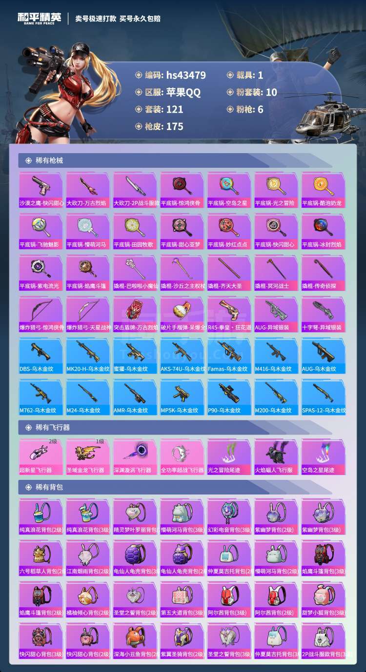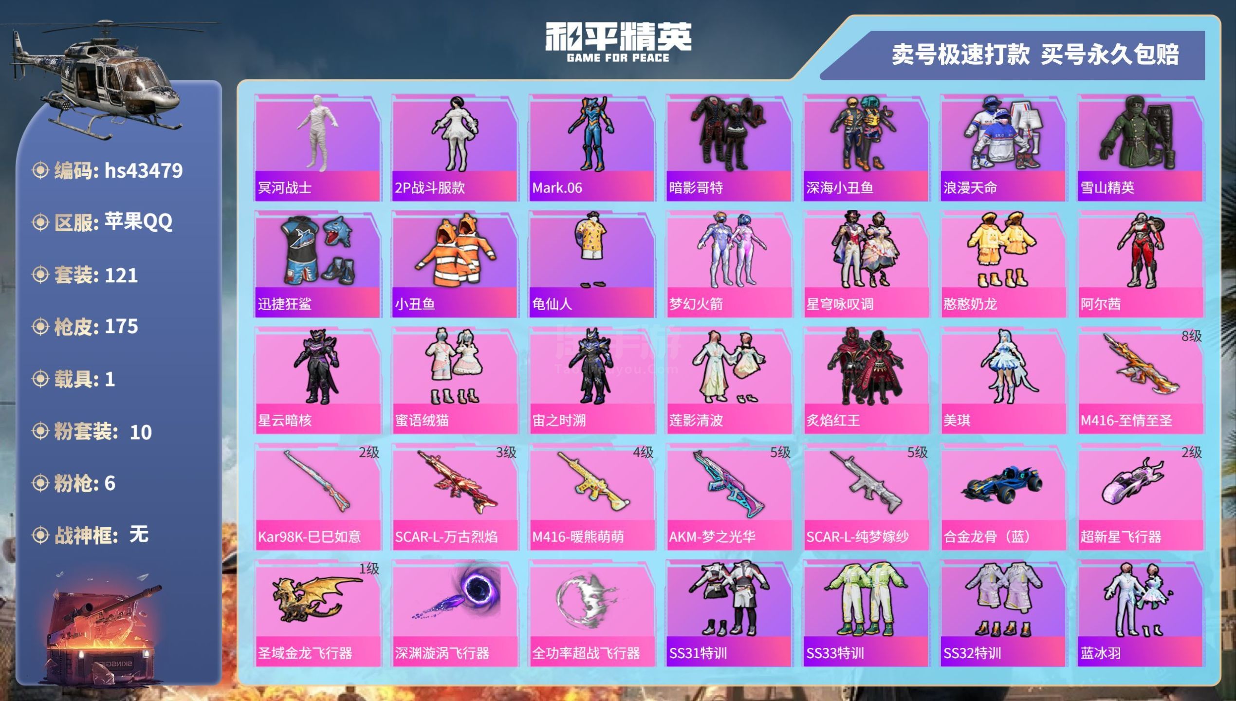 hs43479 苹果手Q-10王牌印记-10粉装-6特效枪-1载具-59847热力值-121套装-1