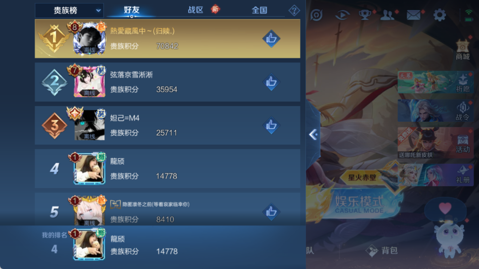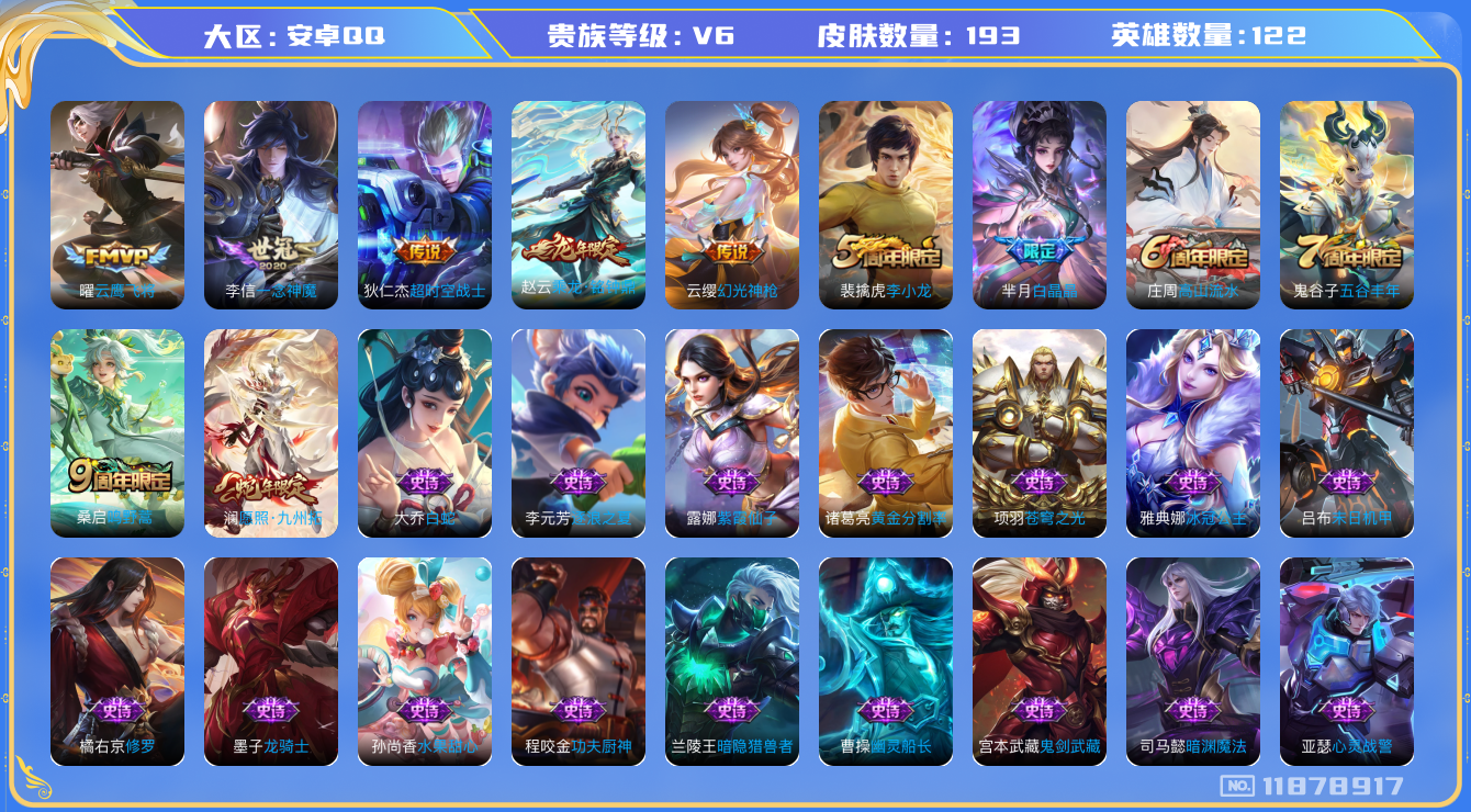 王者荣耀【安卓QQ】【11878917】[11878917]实名: 可修改 贵族等级: V6 英雄