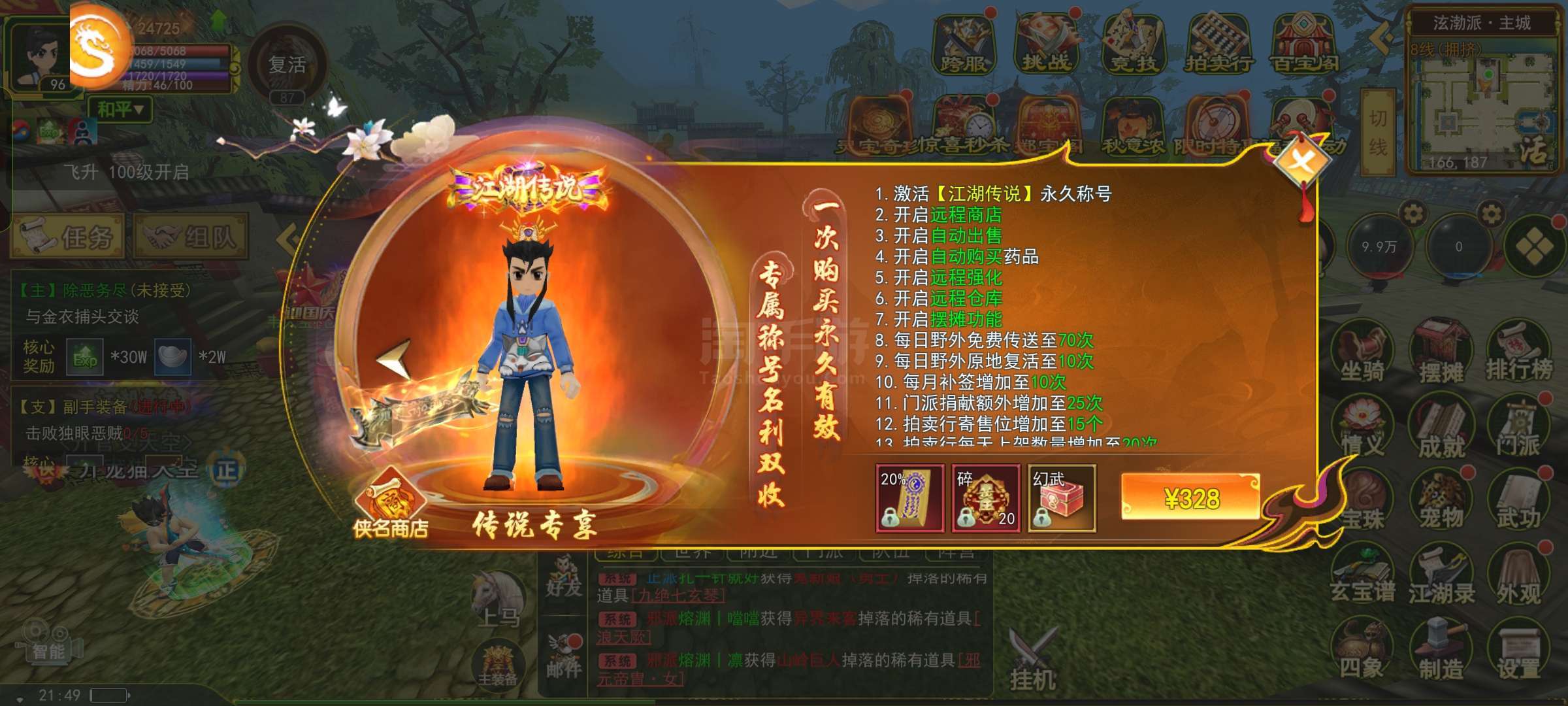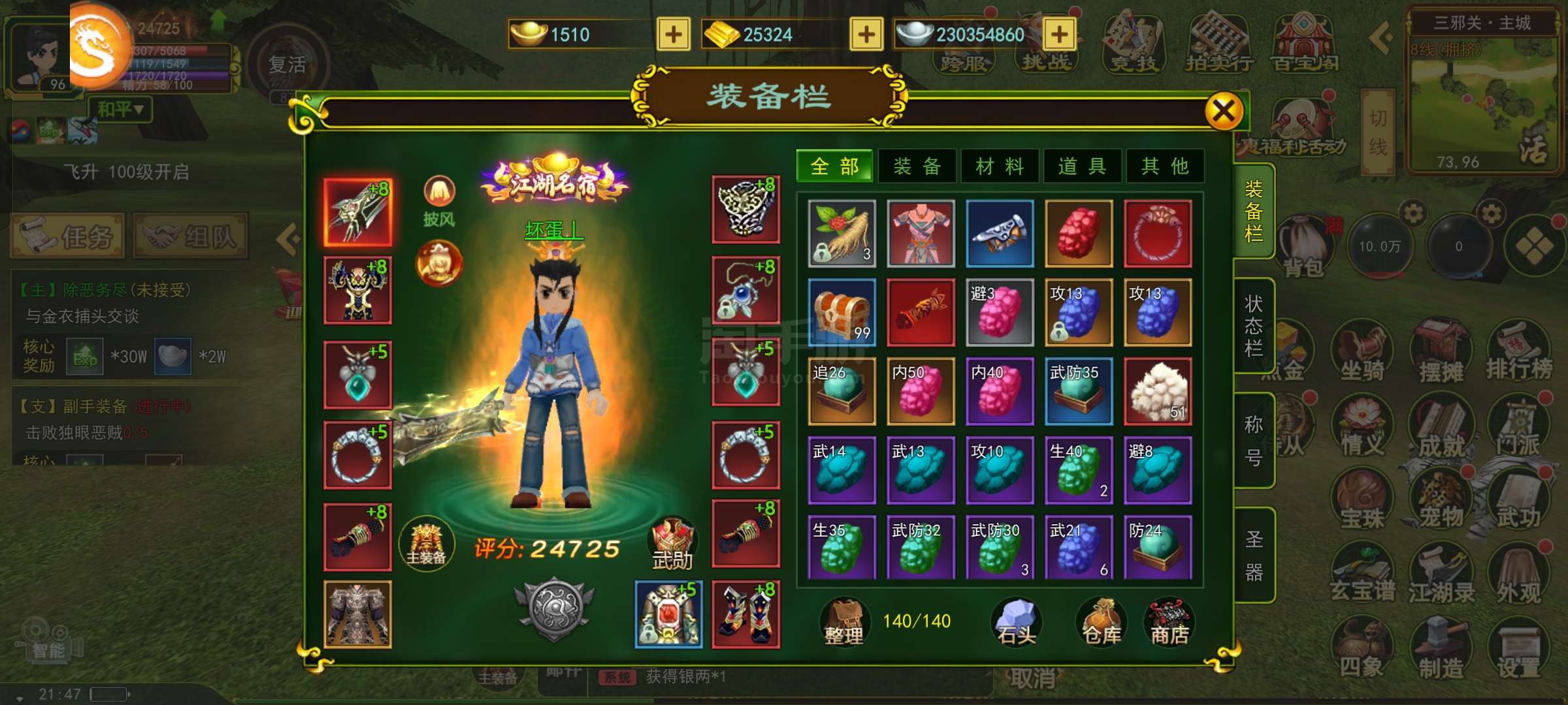 七龙热血江湖96邪刀侠名3段,元宝1500多,金条2万5