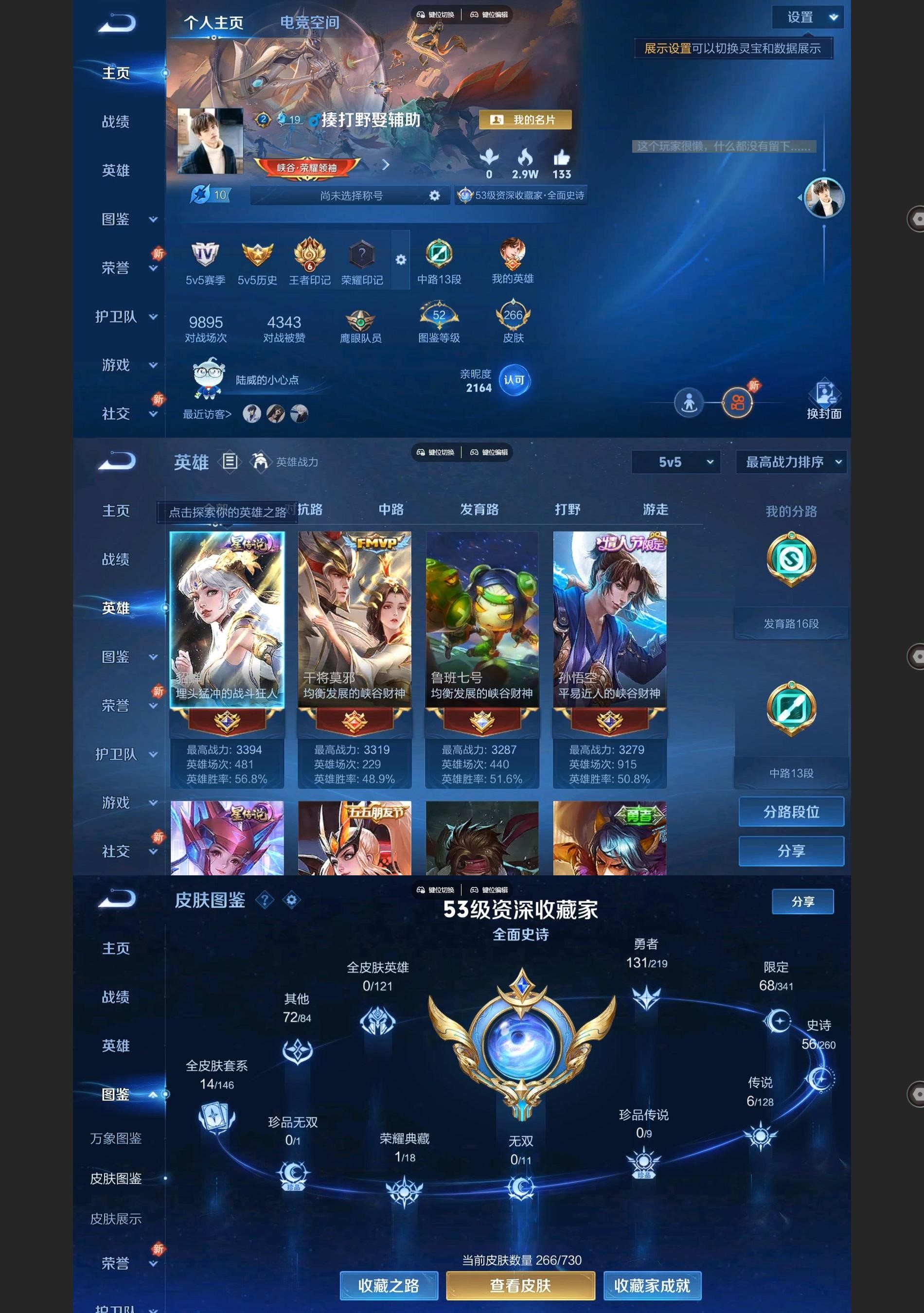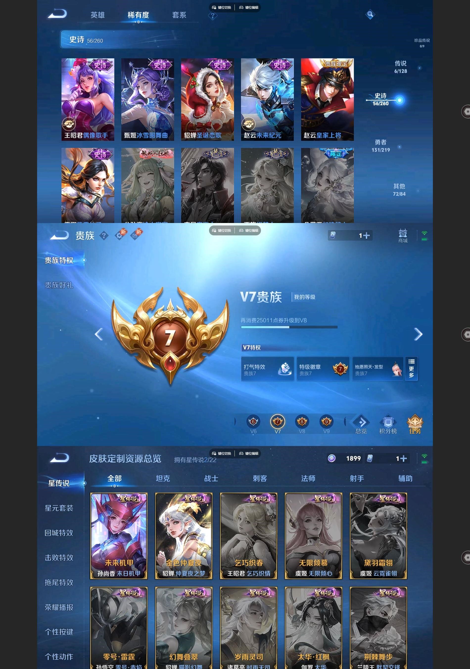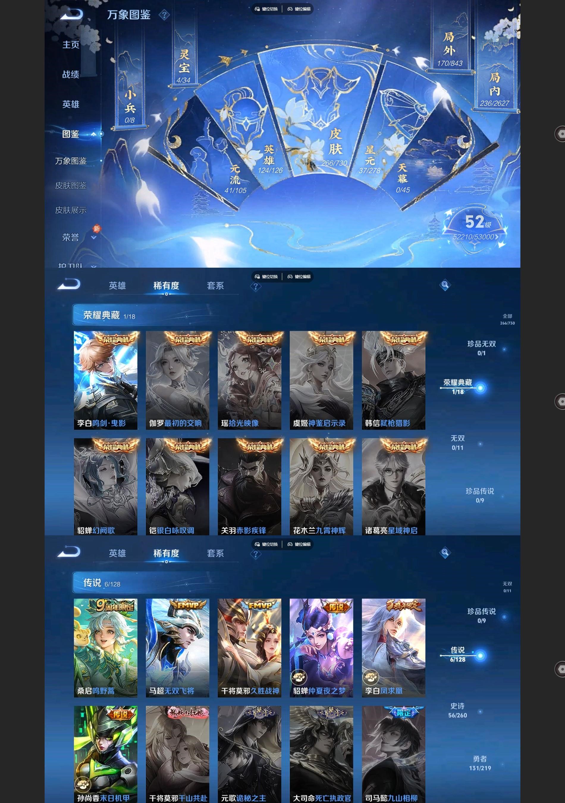 [王者荣耀]V71典藏6传说56史诗266皮肤123英雄永恒钻石IV