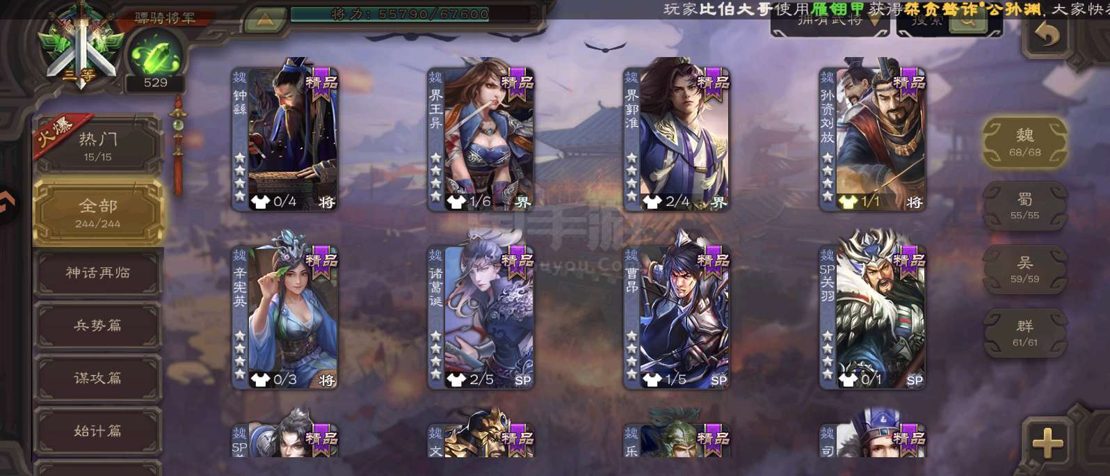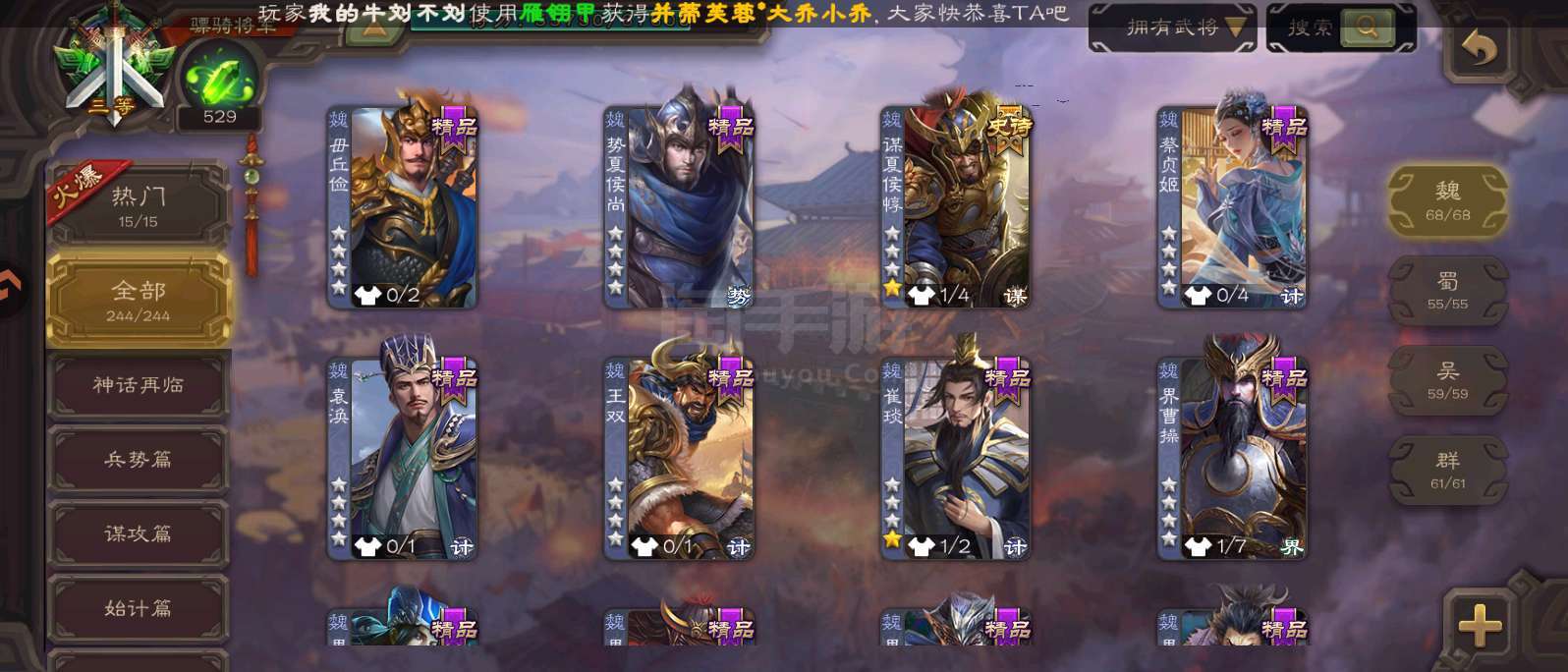极品斗地主号,强势势魏延,曹髦,石头,三卡还有很多,票子也有,军八还有杜预,便宜卖