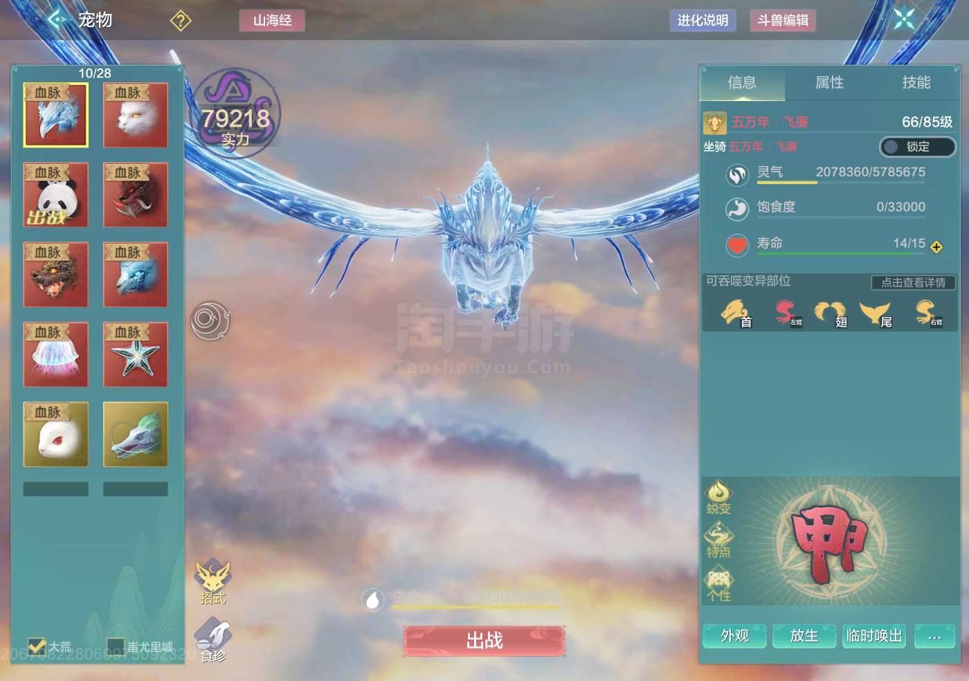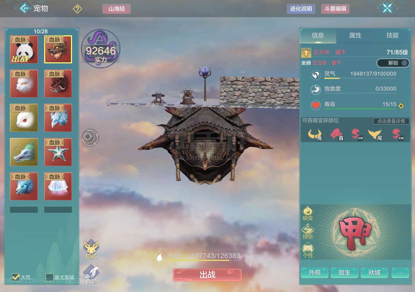 妄想山海【安卓QQ】11万战力,5个五万年宠物,飞廉 白泽 熊猫 穷奇 霸下,都是五万年宠物,有三个野宠偏转