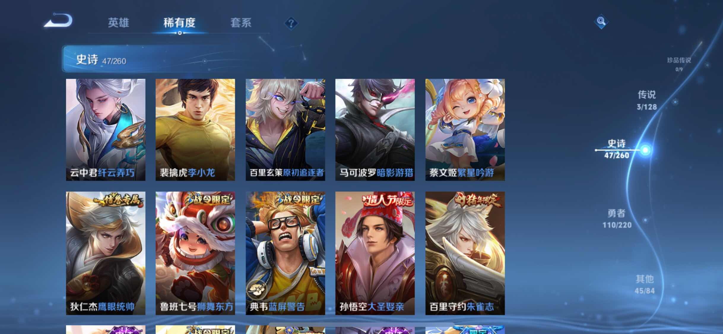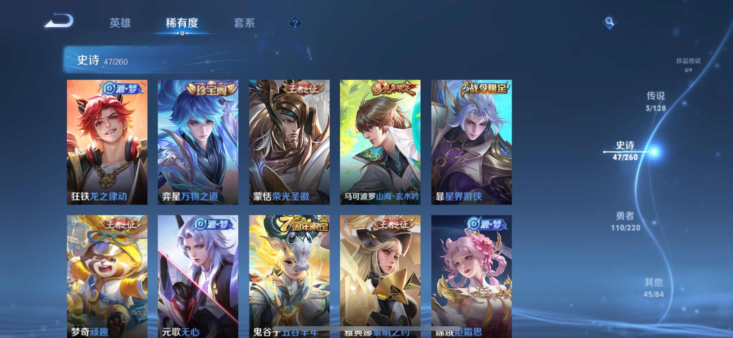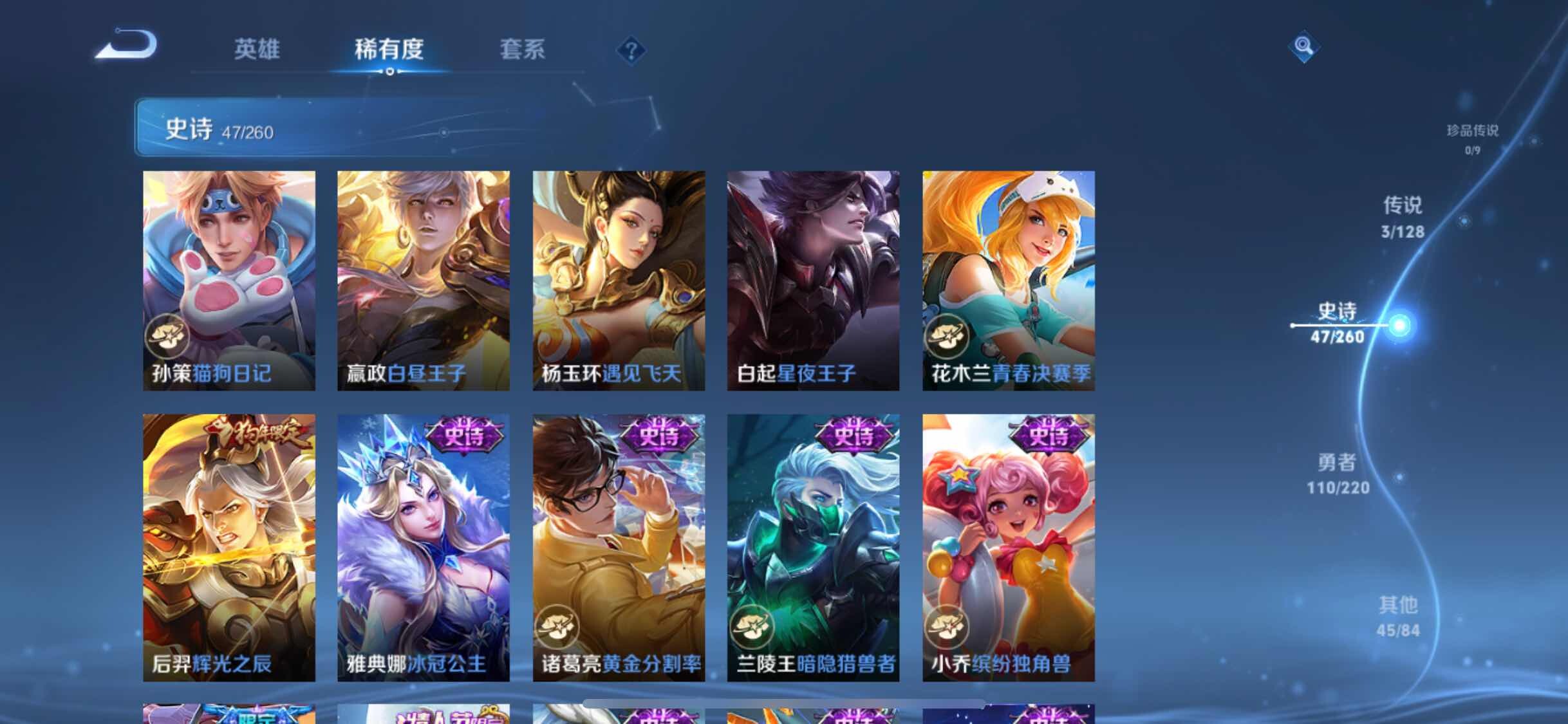 【时雨天司 引擎之心 至尊宝大圣娶亲小号】:苹果Q-V7-最强王者段位-124英雄-205皮肤-0典藏-0珍品无双-0无双-0珍品传说-3传说-47史诗