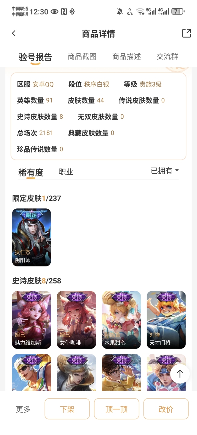通过App,与卖家商议价格及保险,并向卖家索要账号最新截图,确认后下单购买。
