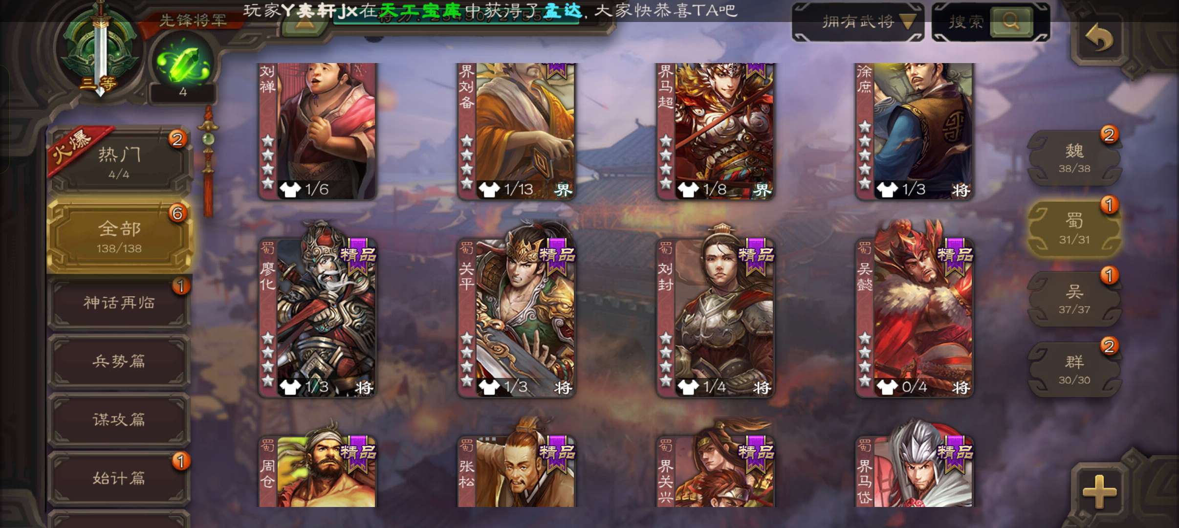 史诗武将数量: