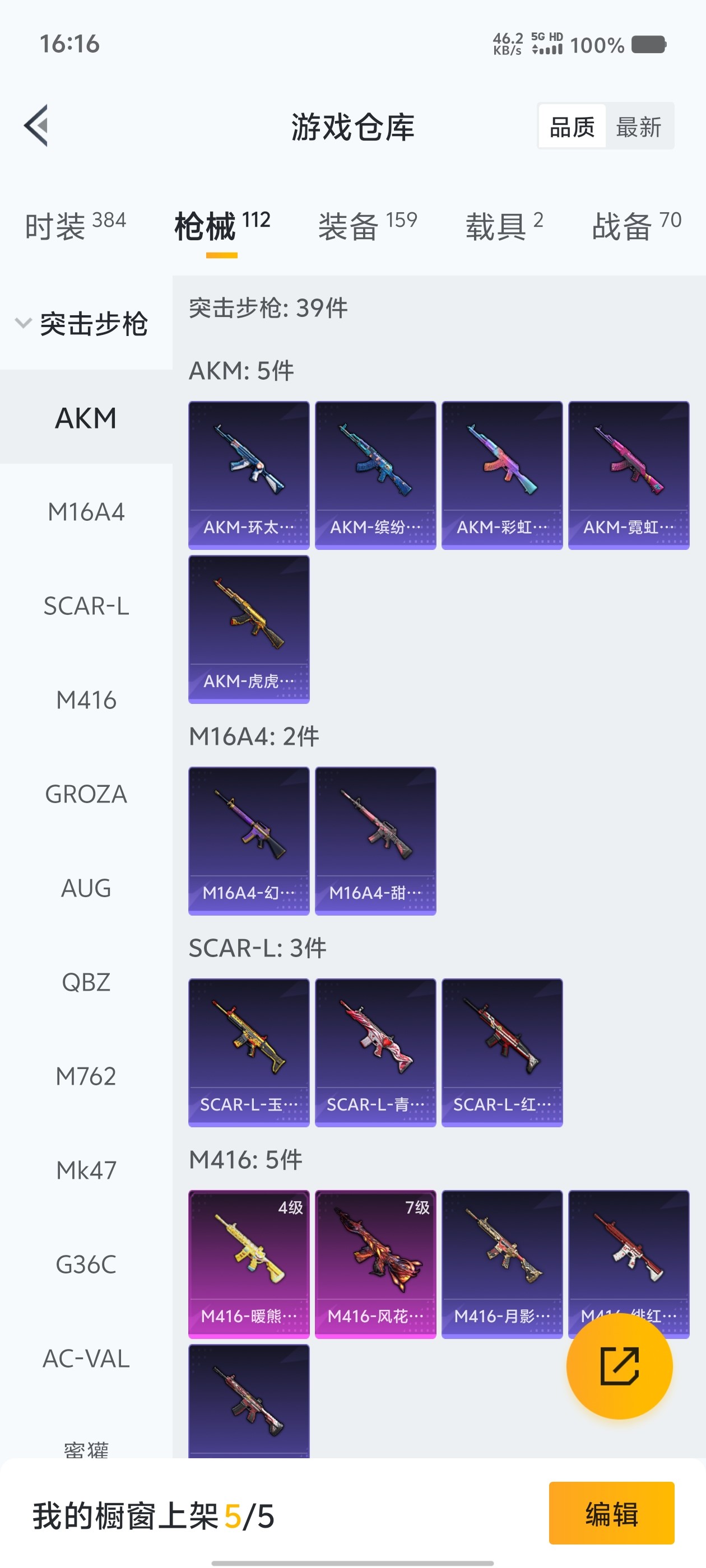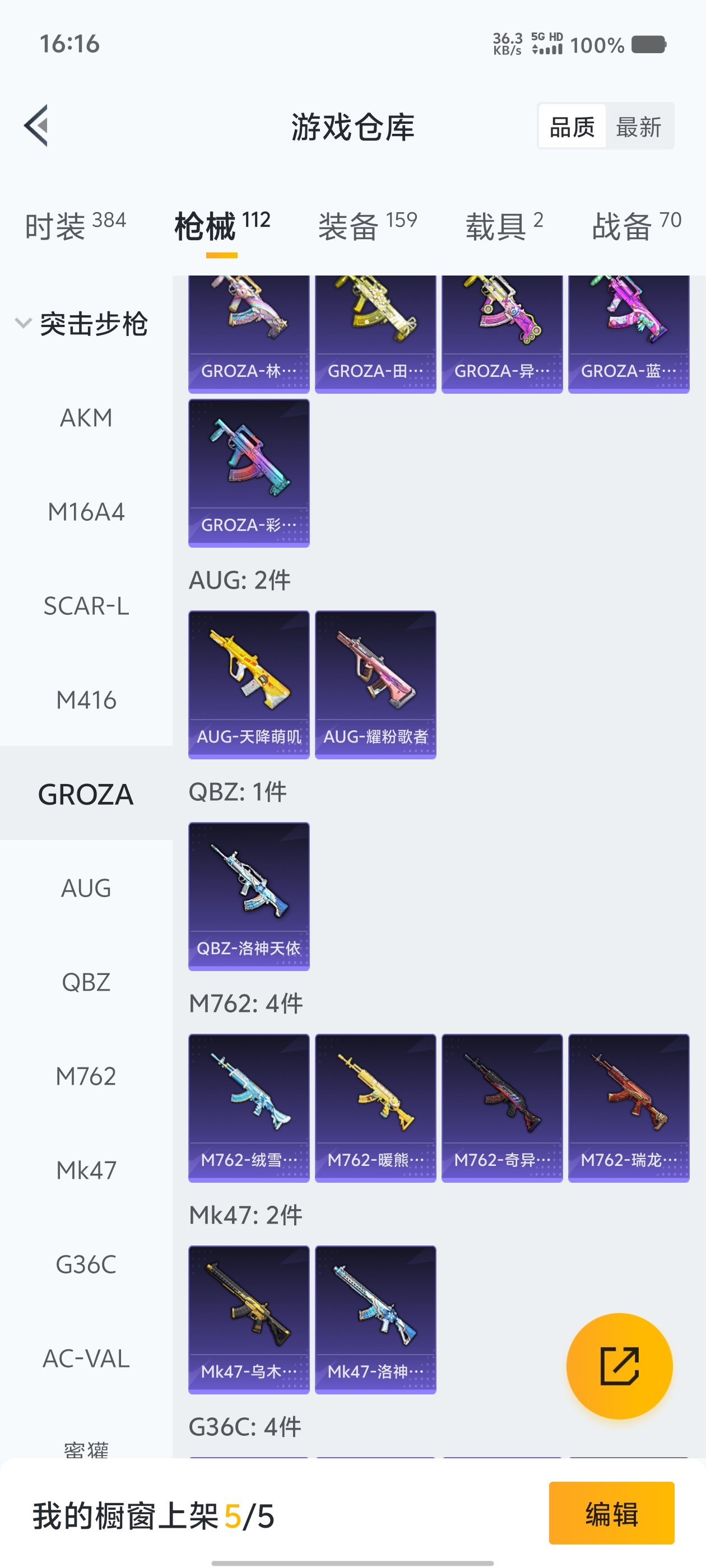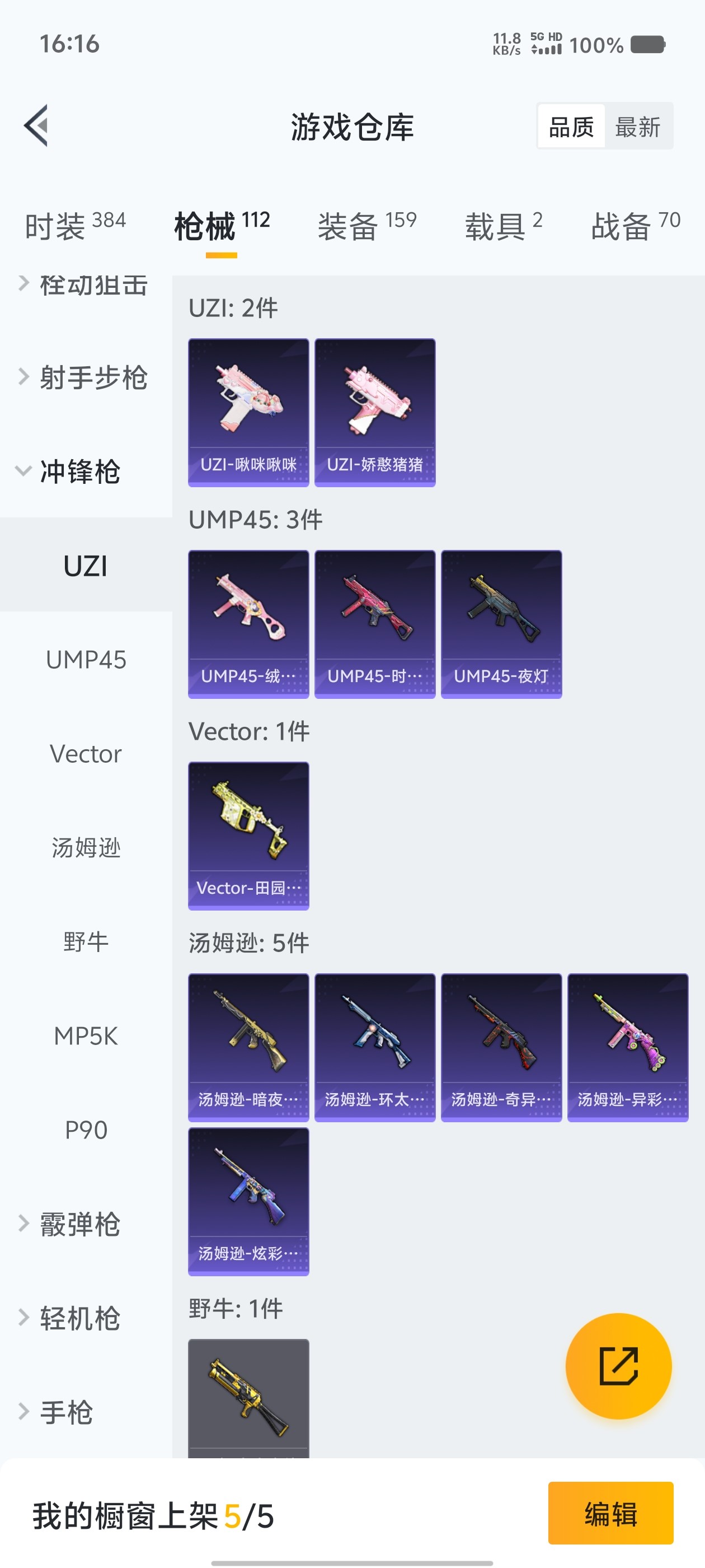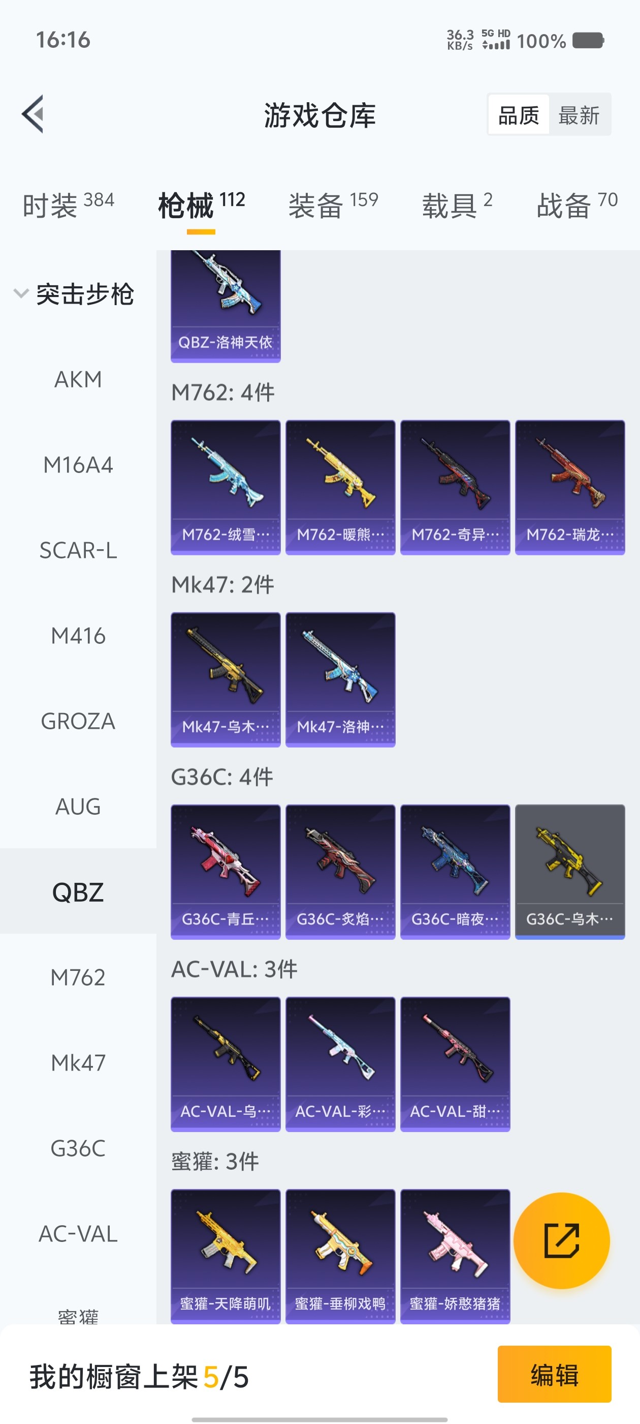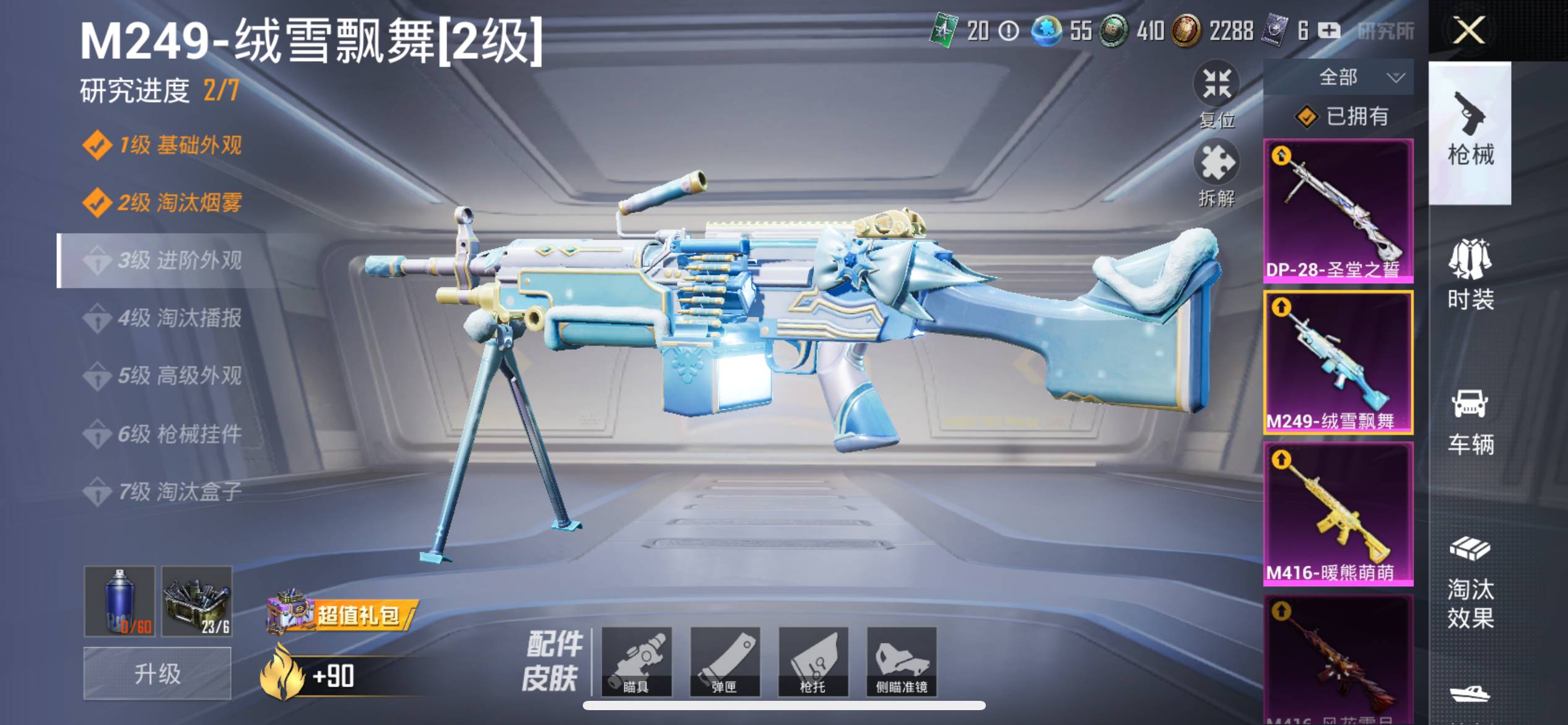 2载具 4升级枪 13粉装 2飞行器 112枪皮 96套装 43935热力 1印记 铂金