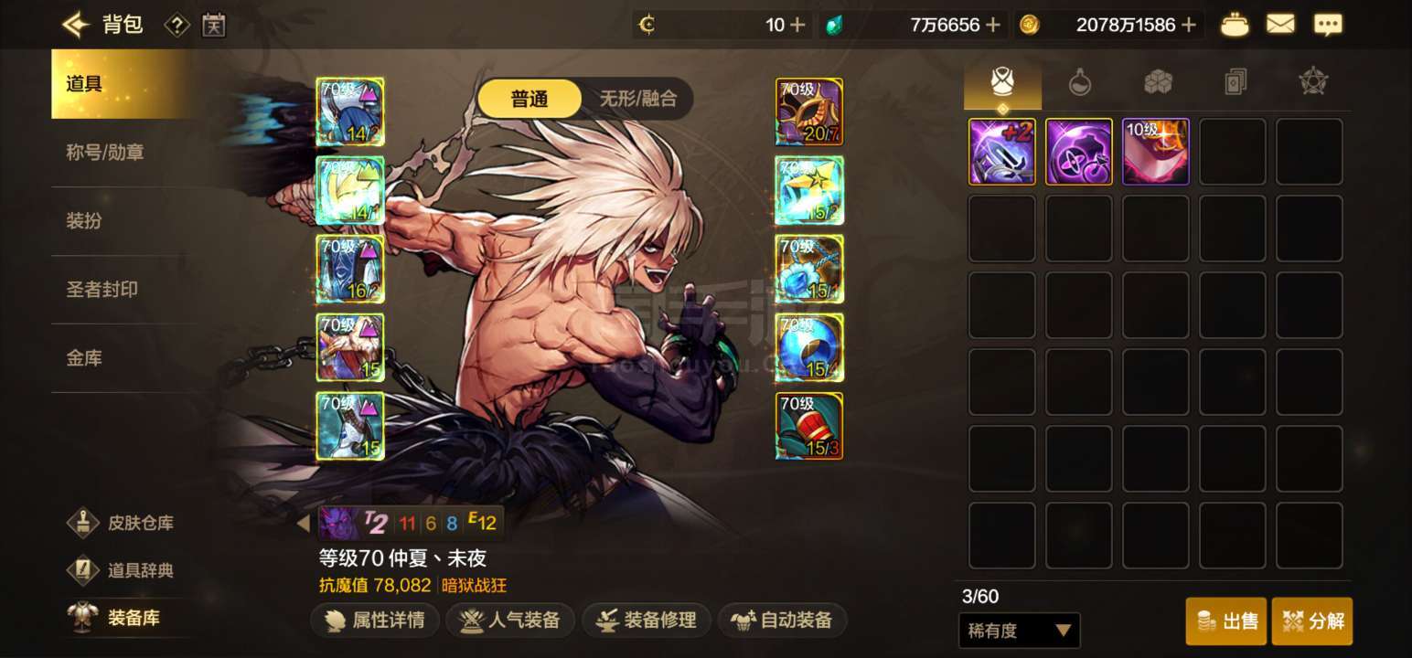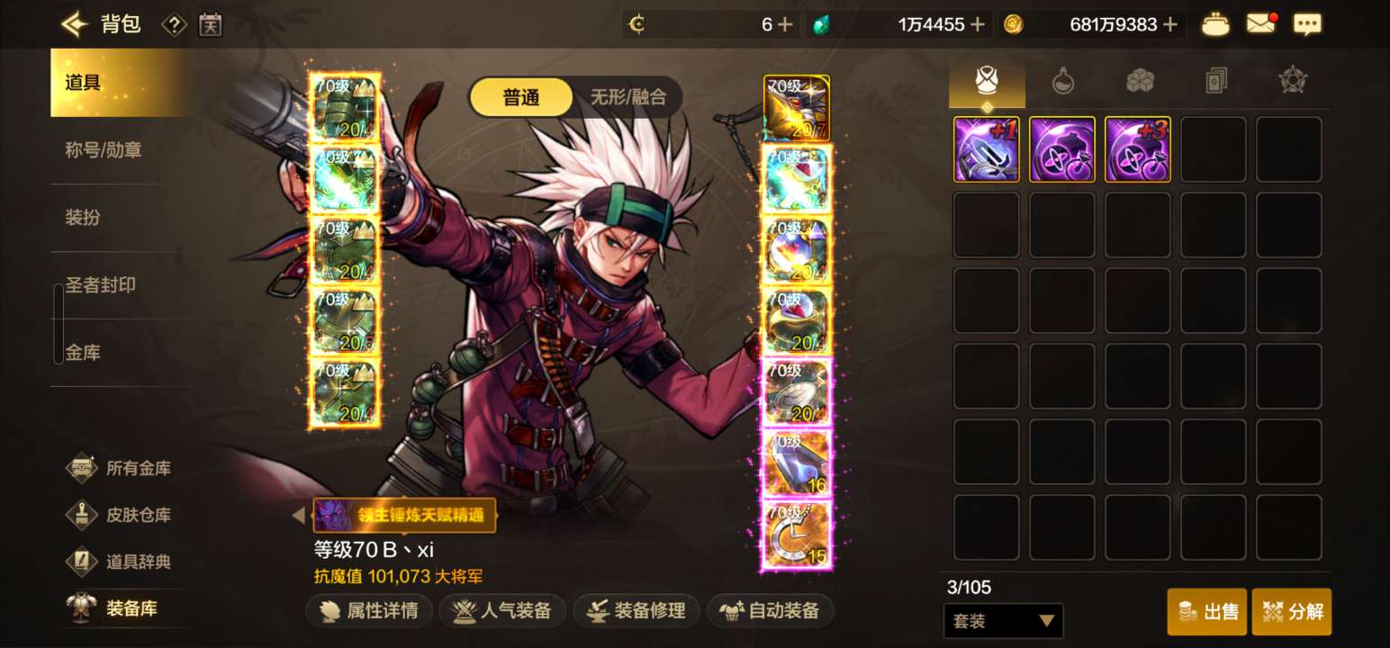 三个天空套号,主号弹药,纯色战灵天舞。装备都毕业,武器半毕业