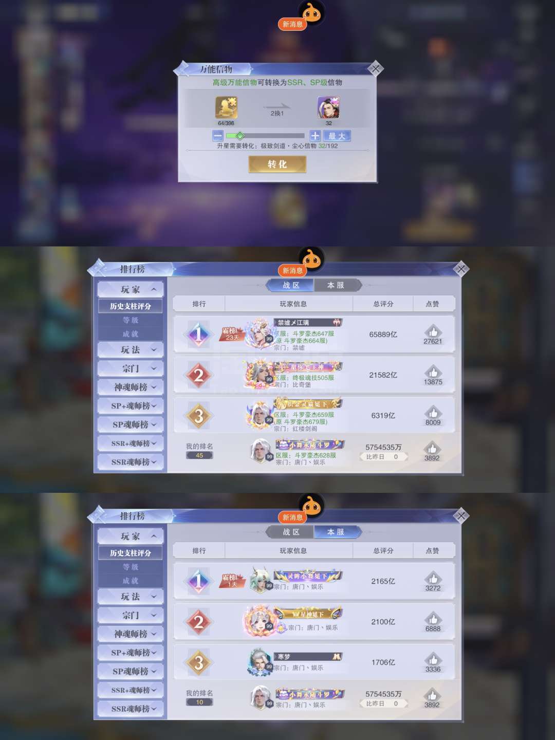 700亿战力。双神唐三21sp。63抽4600钻石。3魂铠核心。6专修唐。6专宁荣荣2幻金。3专千