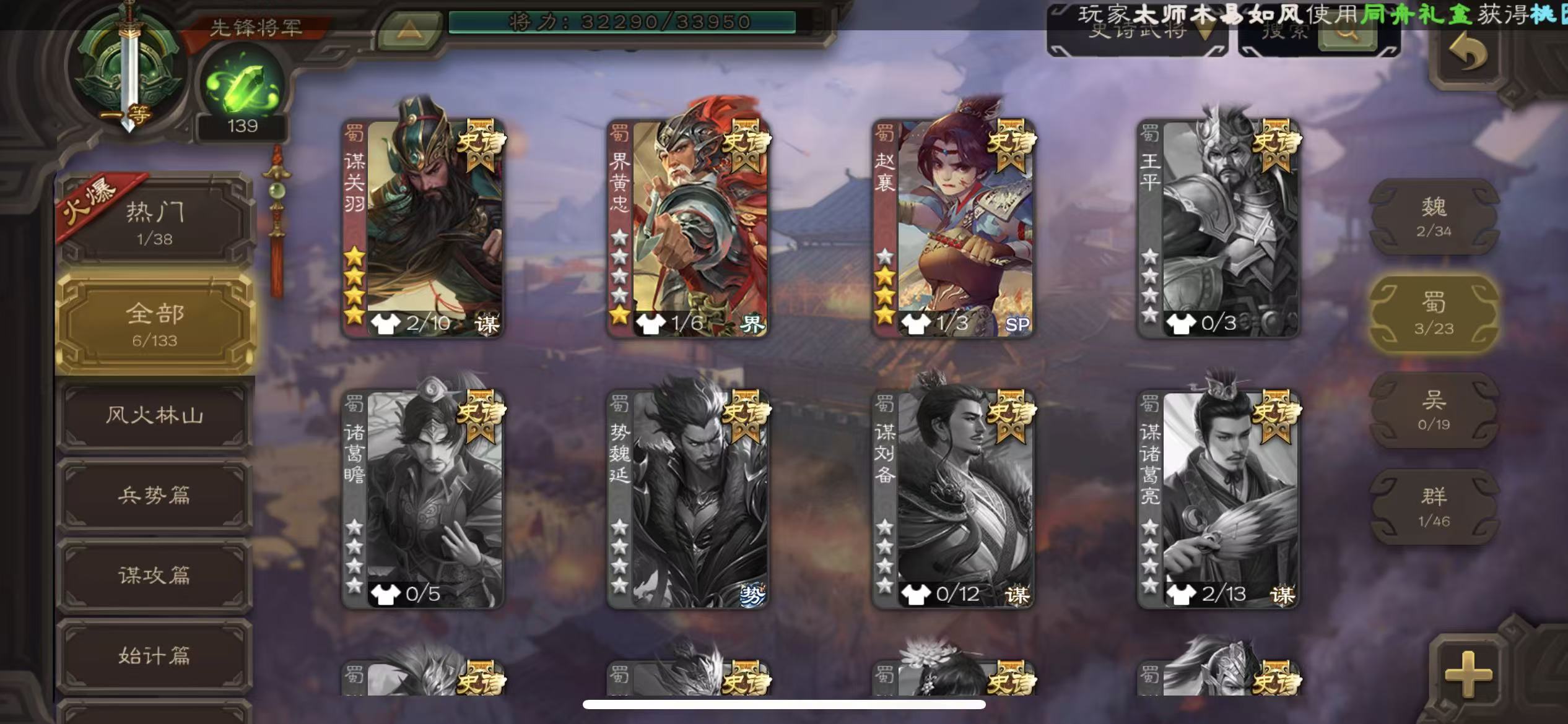 先锋曹髦谋关羽界于禁界黄忠赵嚷星董卓3万羽毛