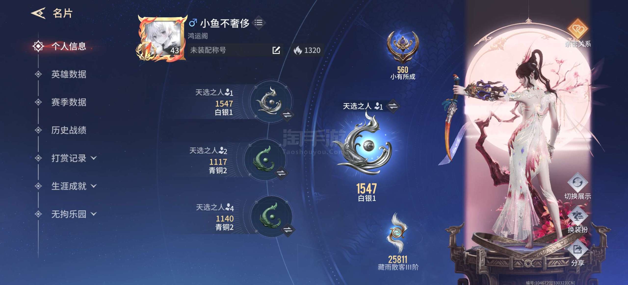 号很好,很值,有很多金,不玩了,便宜卖了新出的洛天依,买了的,但是没有截图,那个武器有,洛天依有头发