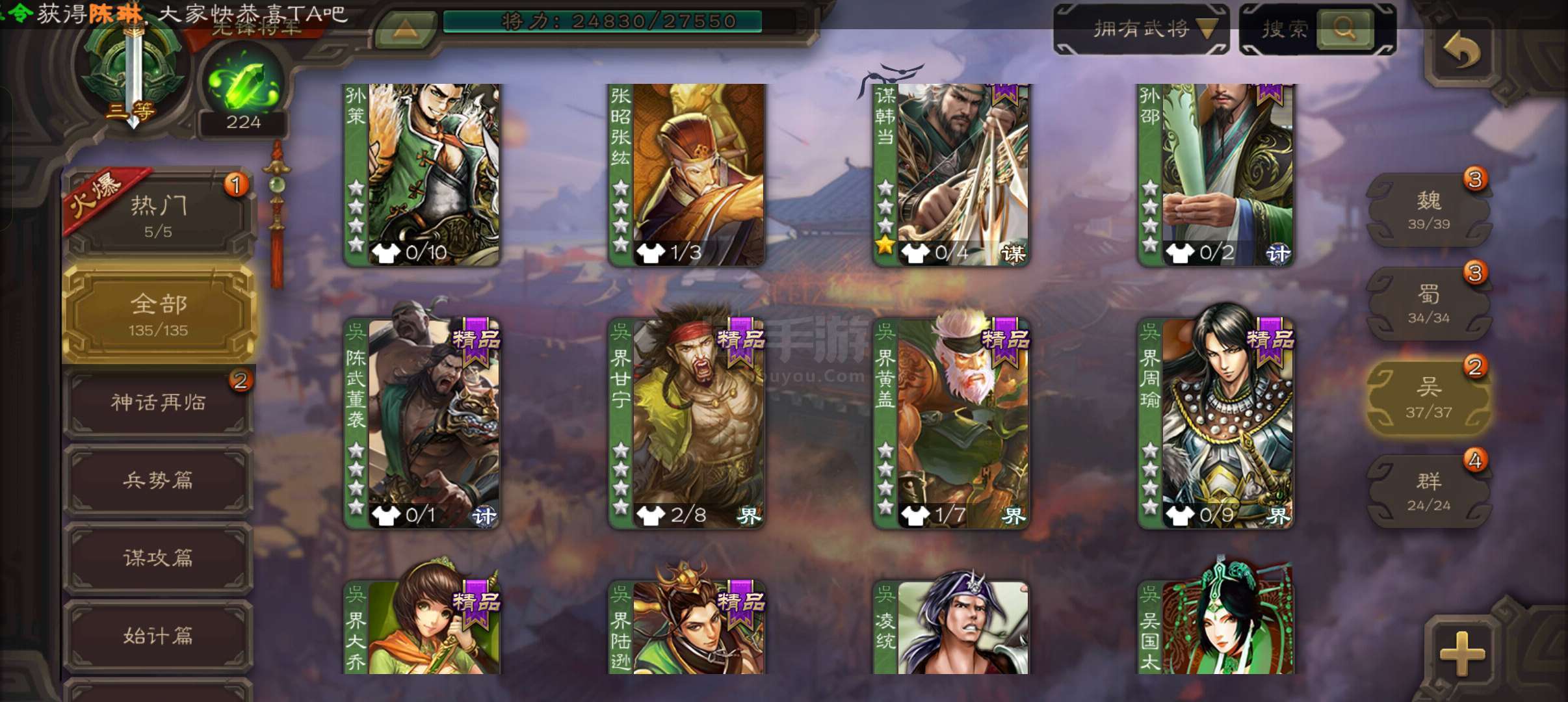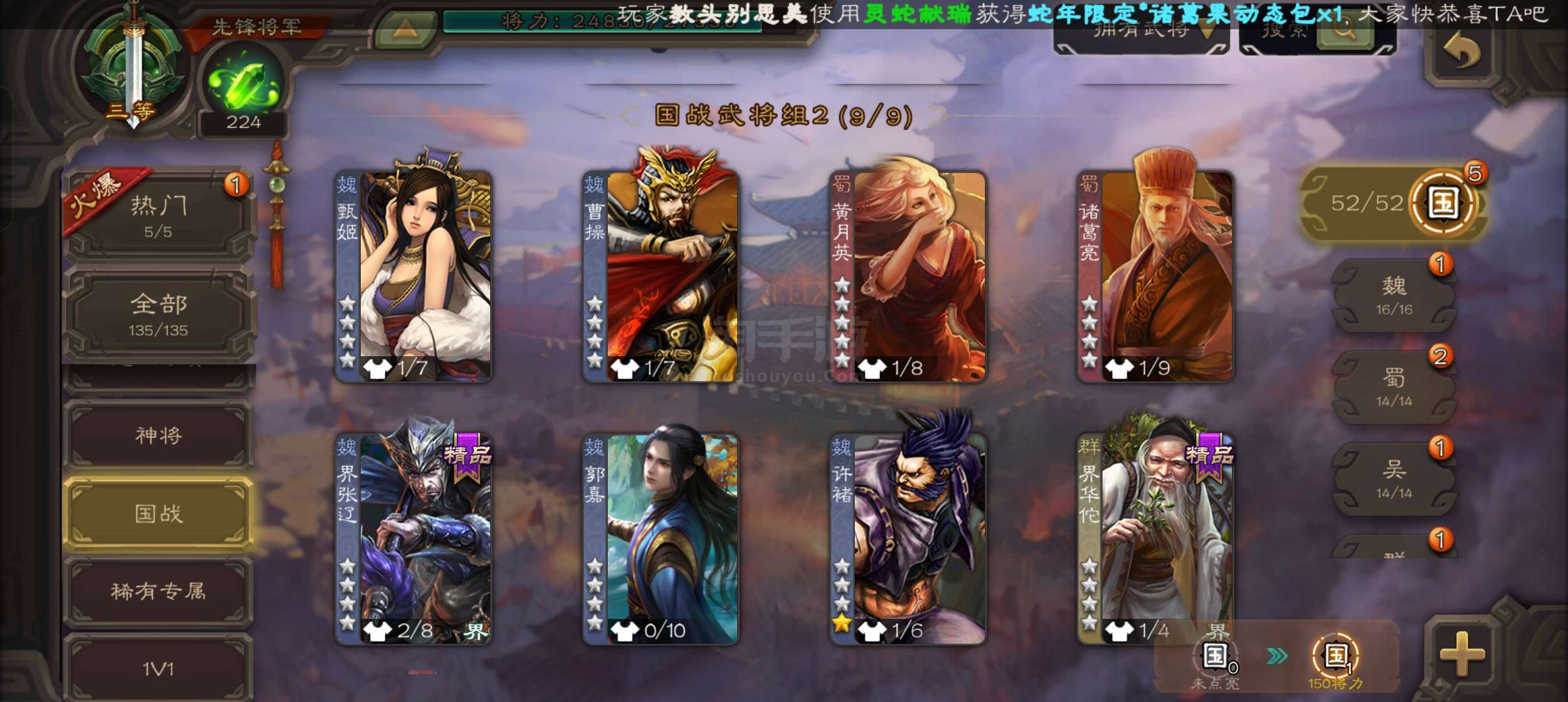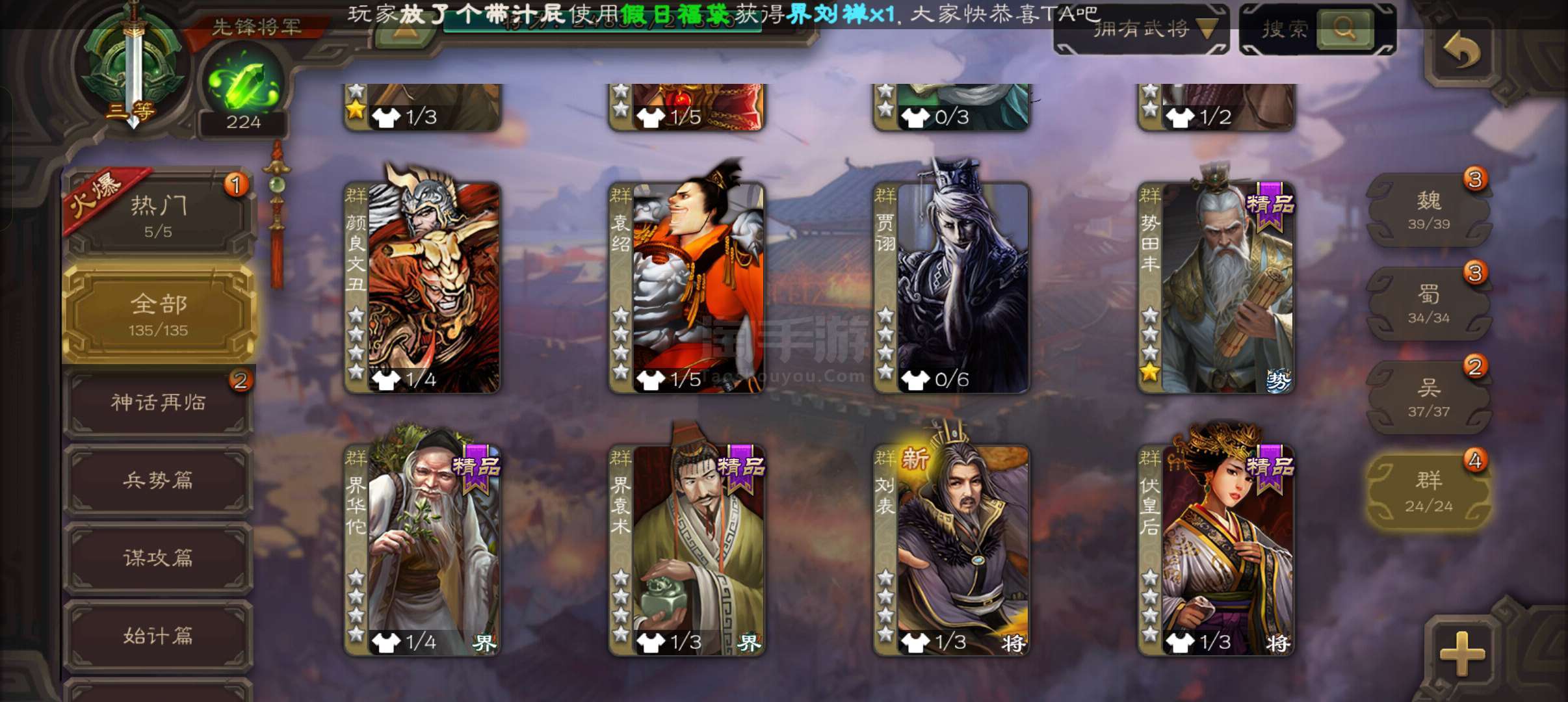 战龙在野动态神赵云花鬘谯周杨修4史诗先锋,谋韩当势田丰崔琰友庞统135将