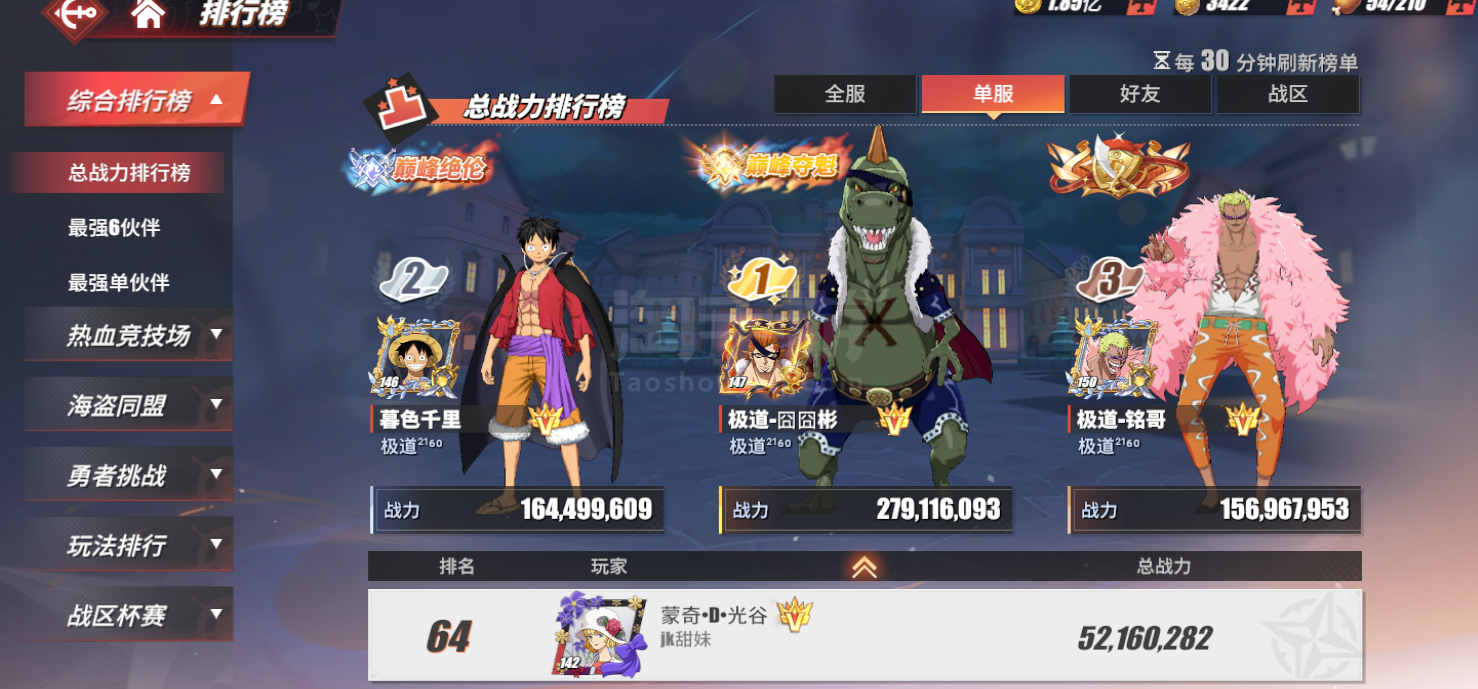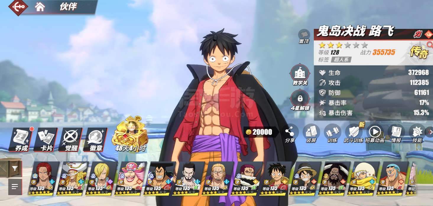 航海王热血航线【安卓华为】有138位角色,战斗力5000多万