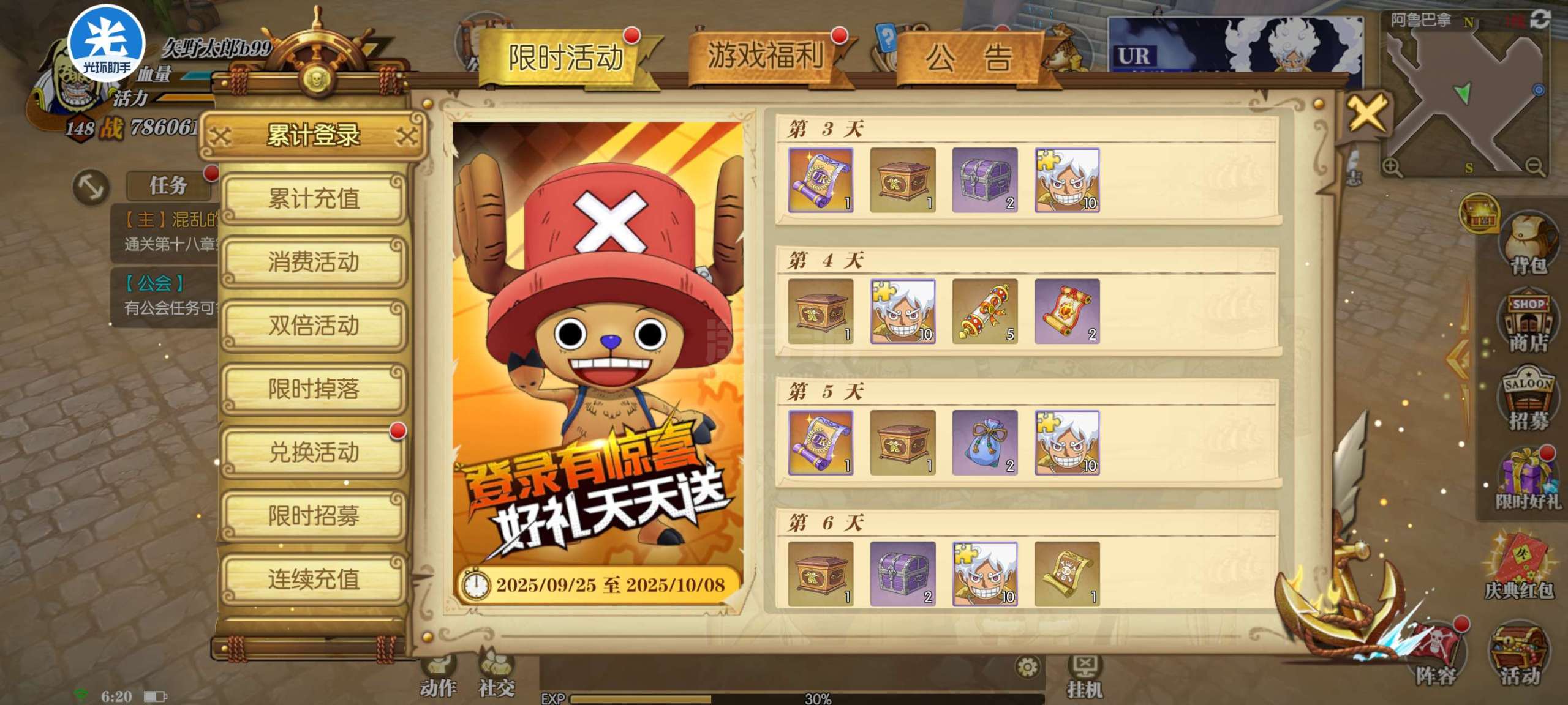 每天登录可八星尼卡,1600卷,12级速宝石,400附魂卷,角色传记都在,卡普,御田三觉。