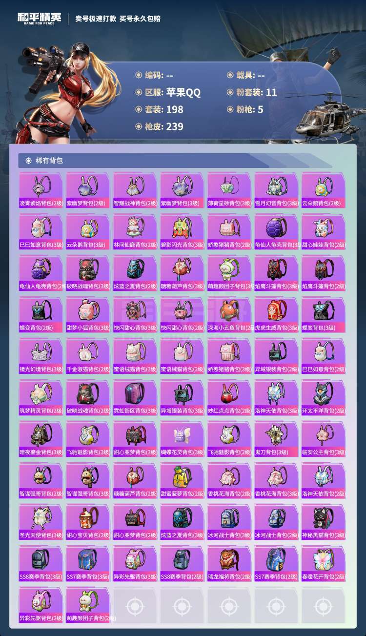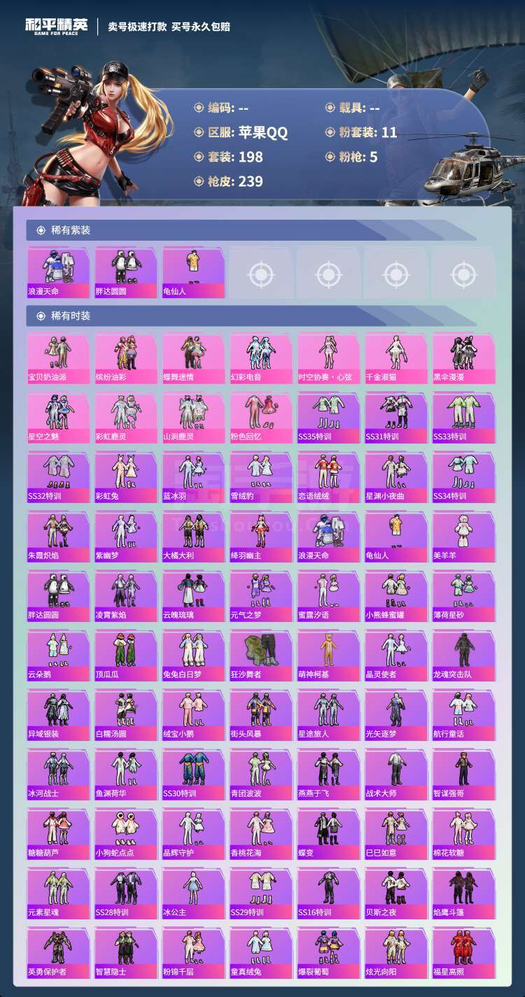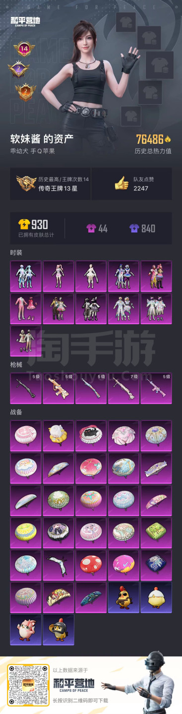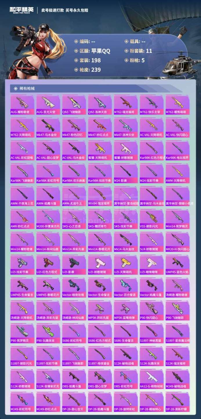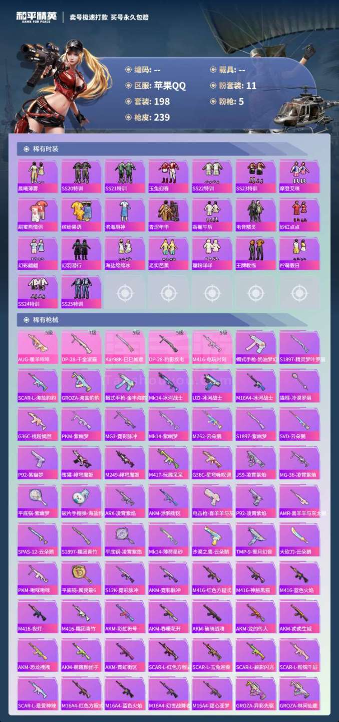 hs43853 苹果手Q-14王牌印记-11粉装-5特效枪-0载具-76486热力值-198套装-2