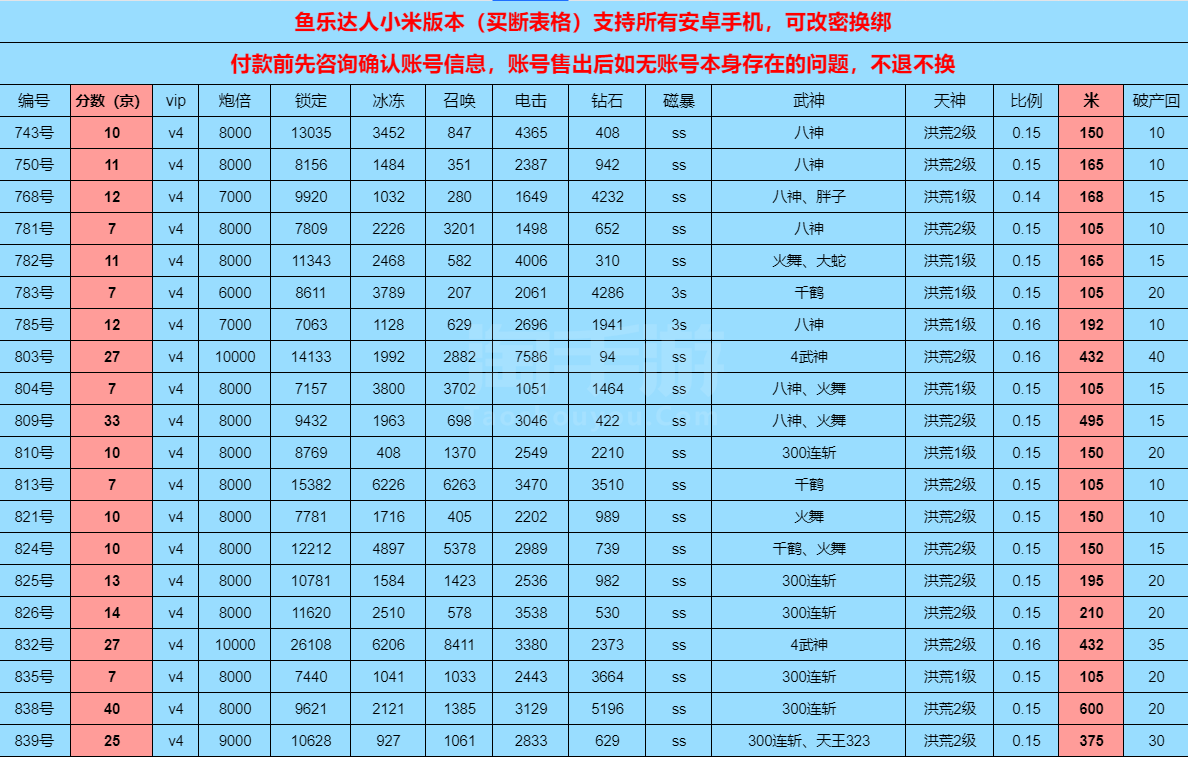 鱼乐达人小米版本金币号,买断纯玩都有,另外破产号一直要