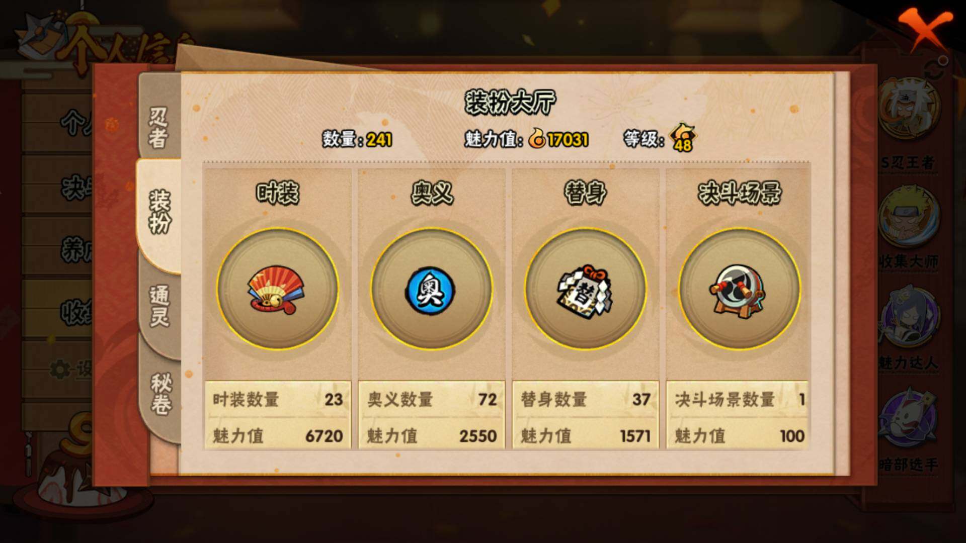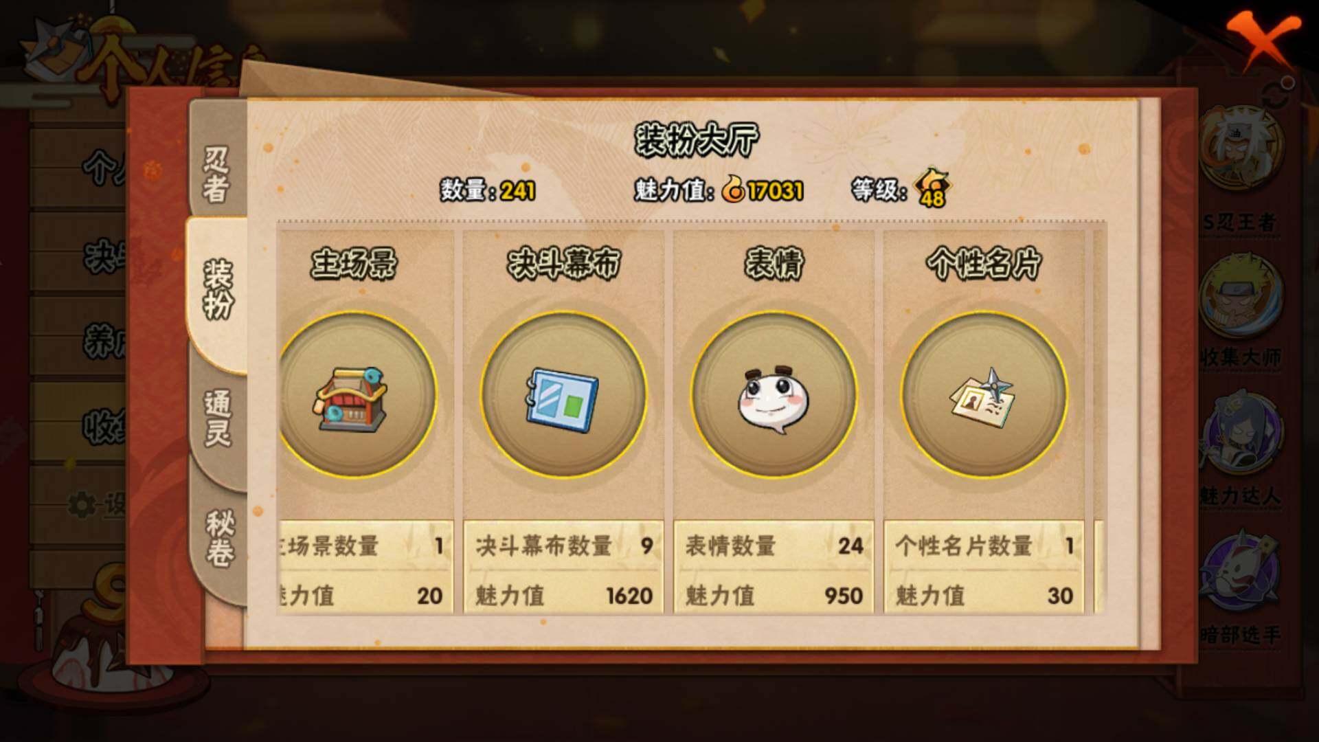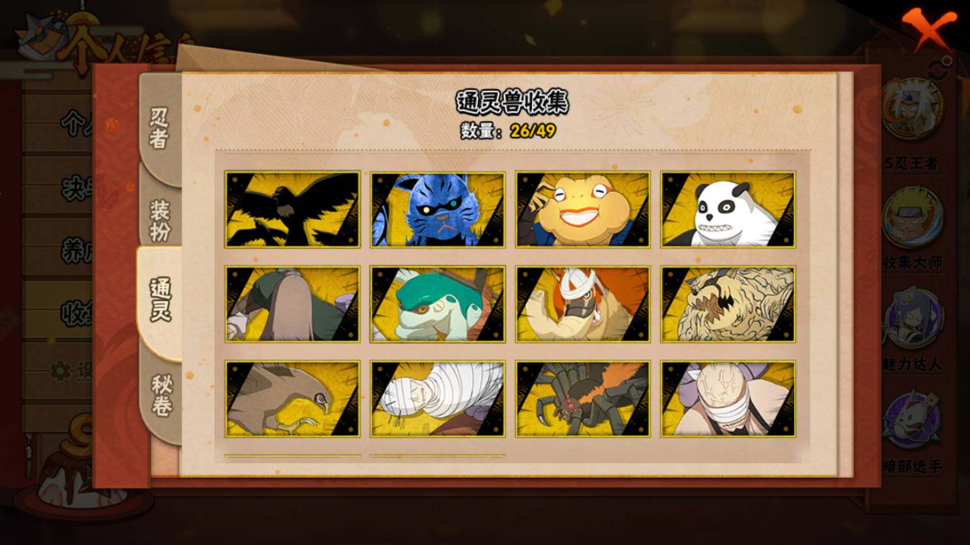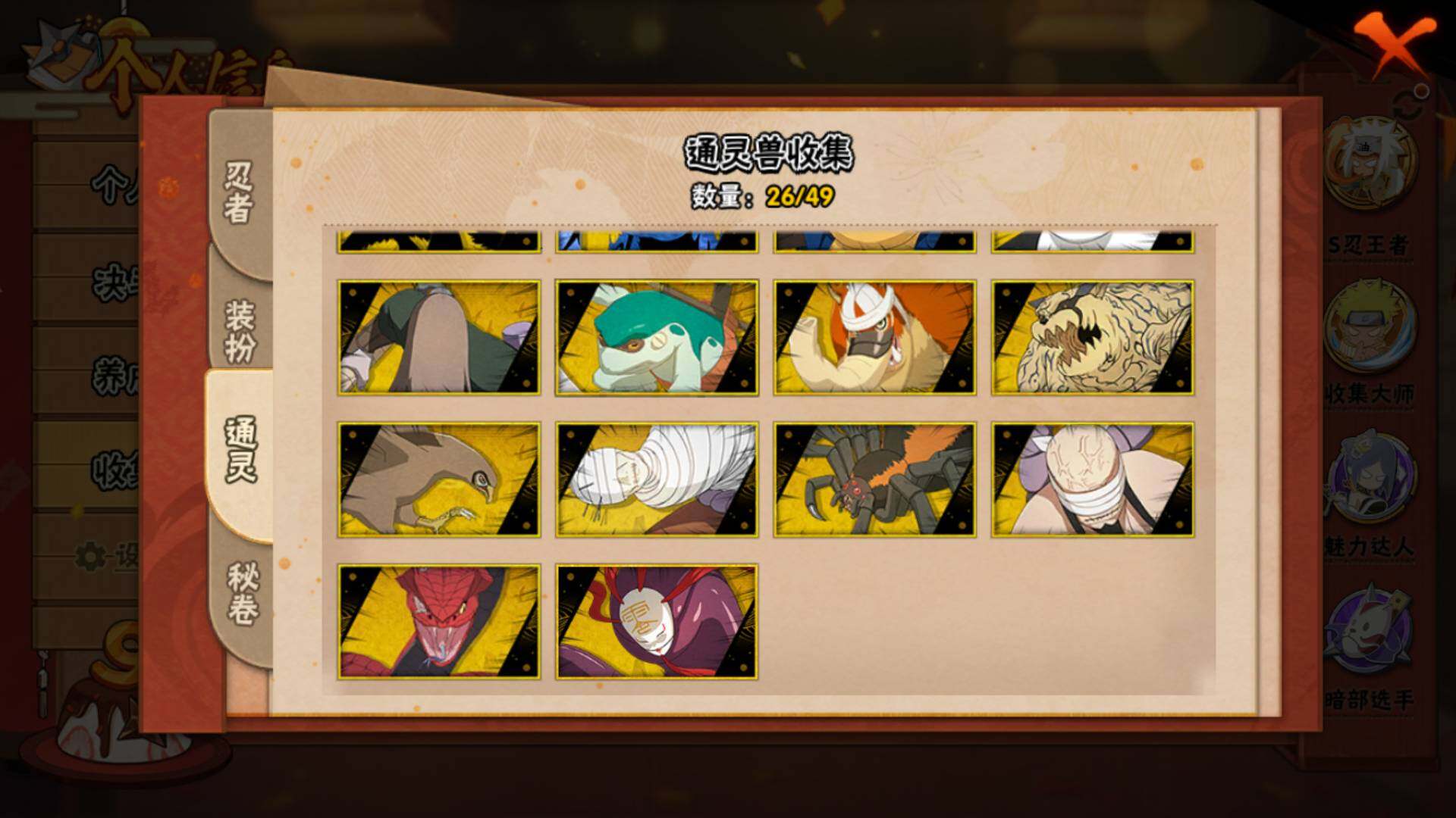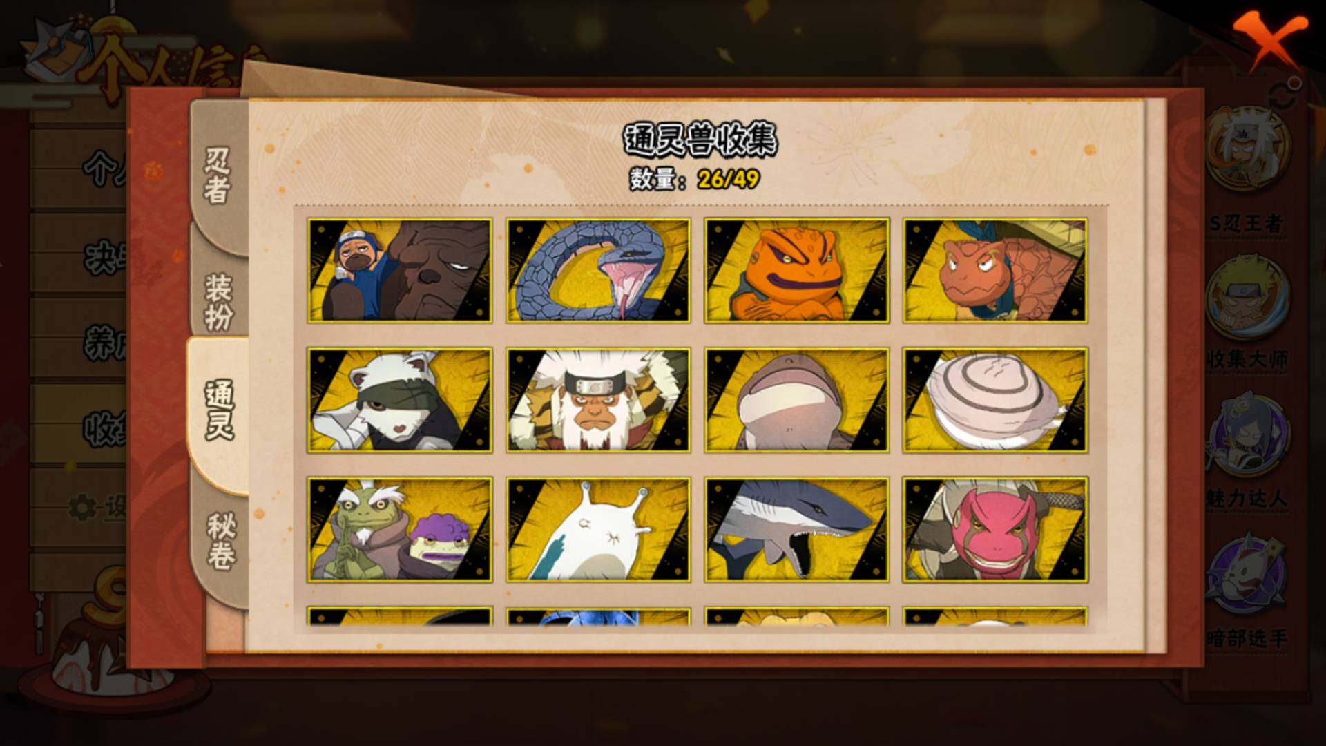 【S级忍者】:长门「秽土转生」(3星),三代目风影「秽土转生」(3星),半藏「秽土转生」(3星),金角·银角「秽土转生」(3星),猿飞日斩「秽土转生」(3星),波风水门「秽土转生」(3星),千手扉间「秽土转生」(3星),千手柱间「秽土转生」(3星),宇智波鼬「秽土转生」(3星),宇智波斑「秽土转生」(3星),宇