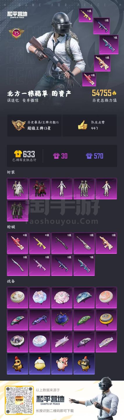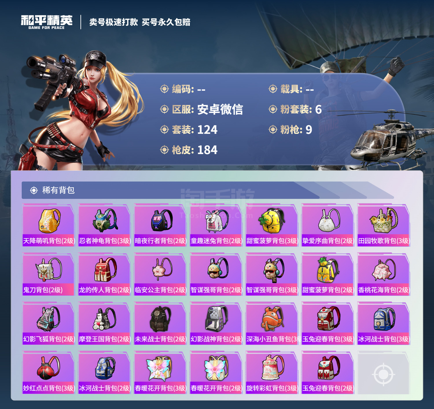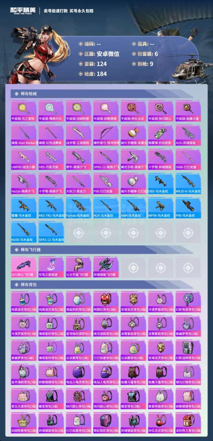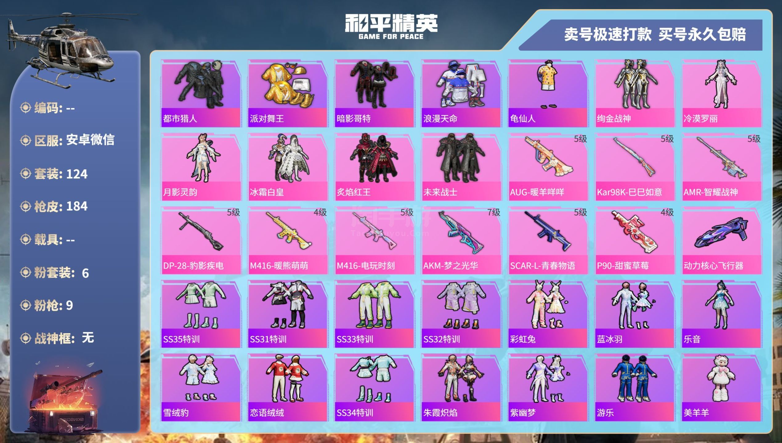 hs44188 安卓微-15王牌印记-6粉装-9特效枪-0载具-55125热力值-124套装-18