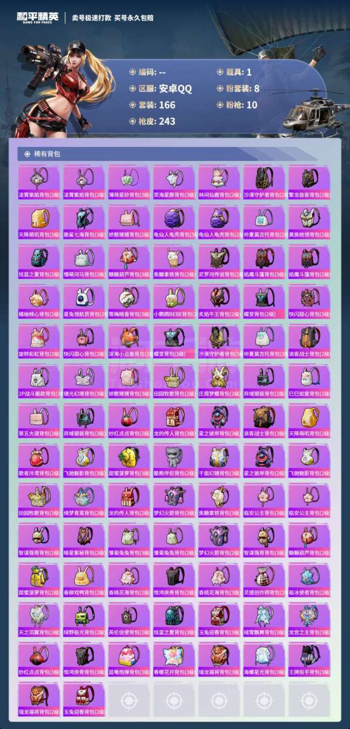 hs43889 安卓手Q-14王牌印记-8粉装-10特效枪-1载具-83643热力值-166套装-2