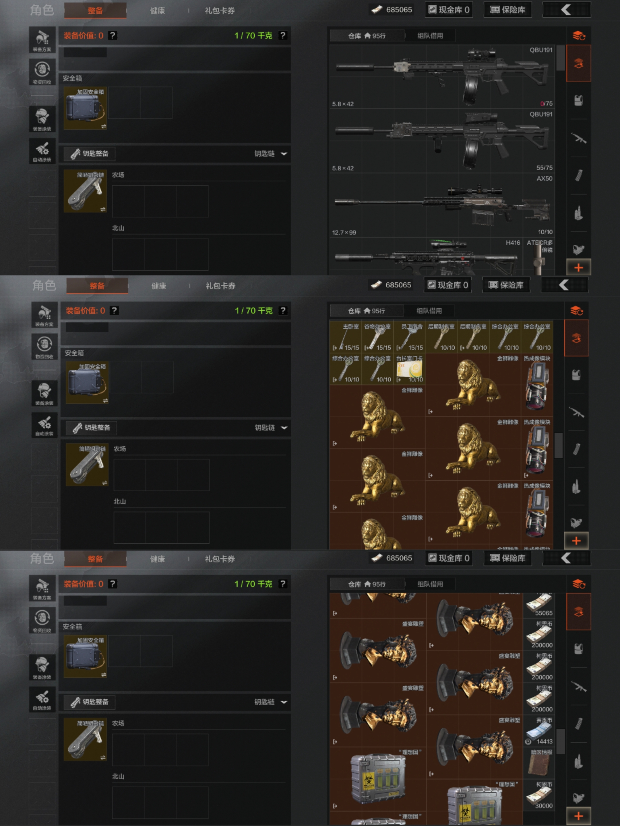 FY5468,总资产:35m,近战武器:,野战折刀,角色装扮(紫):,都市夜影套装,公司成员套装,鎏金街头套装,紫色枪皮:,缟兵玄墨·AKM,玄戈梨花·TO3,07式林地迷彩·QBZ191,秋宴·FAL,炎夏浪花·AR57,大金:,古董茶壶,盘蛇金像,金狮子,盛宴雕像,安卓Q区实名:可修改