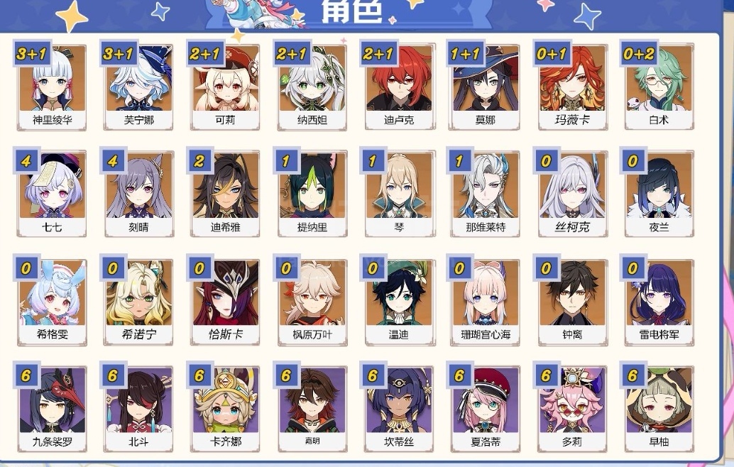 角色多,练度高,成就齐。