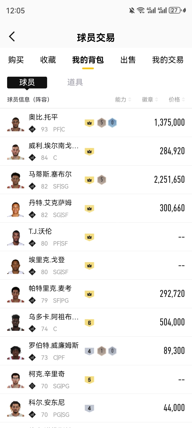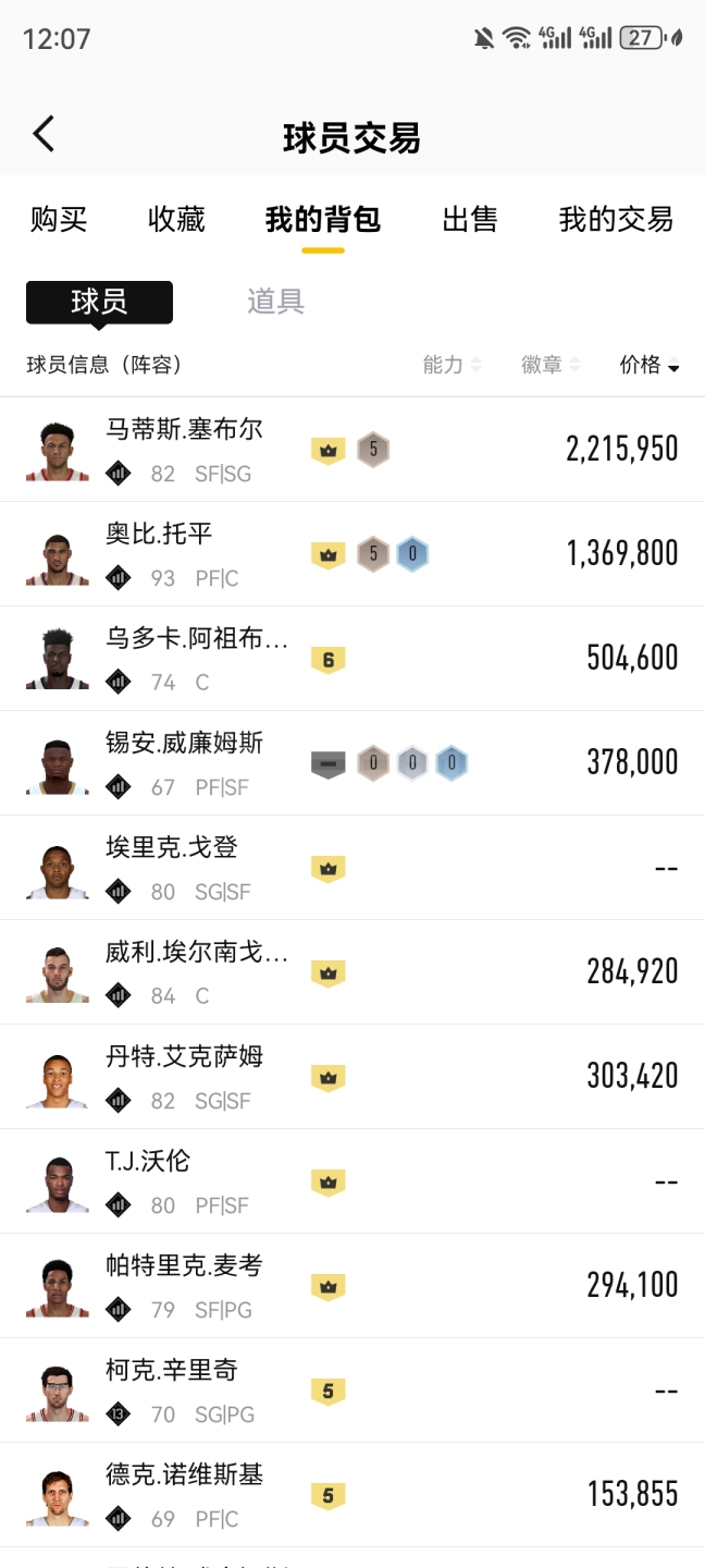 NBA2K OL2【端游】很老的小号了,想要可以拿下满突奥比托平,满突马蒂斯塞布尔