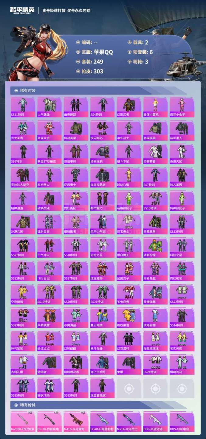 hs43956 苹果手Q-20王牌印记-6粉装-3特效枪-2载具-97354热力值-249套装-30