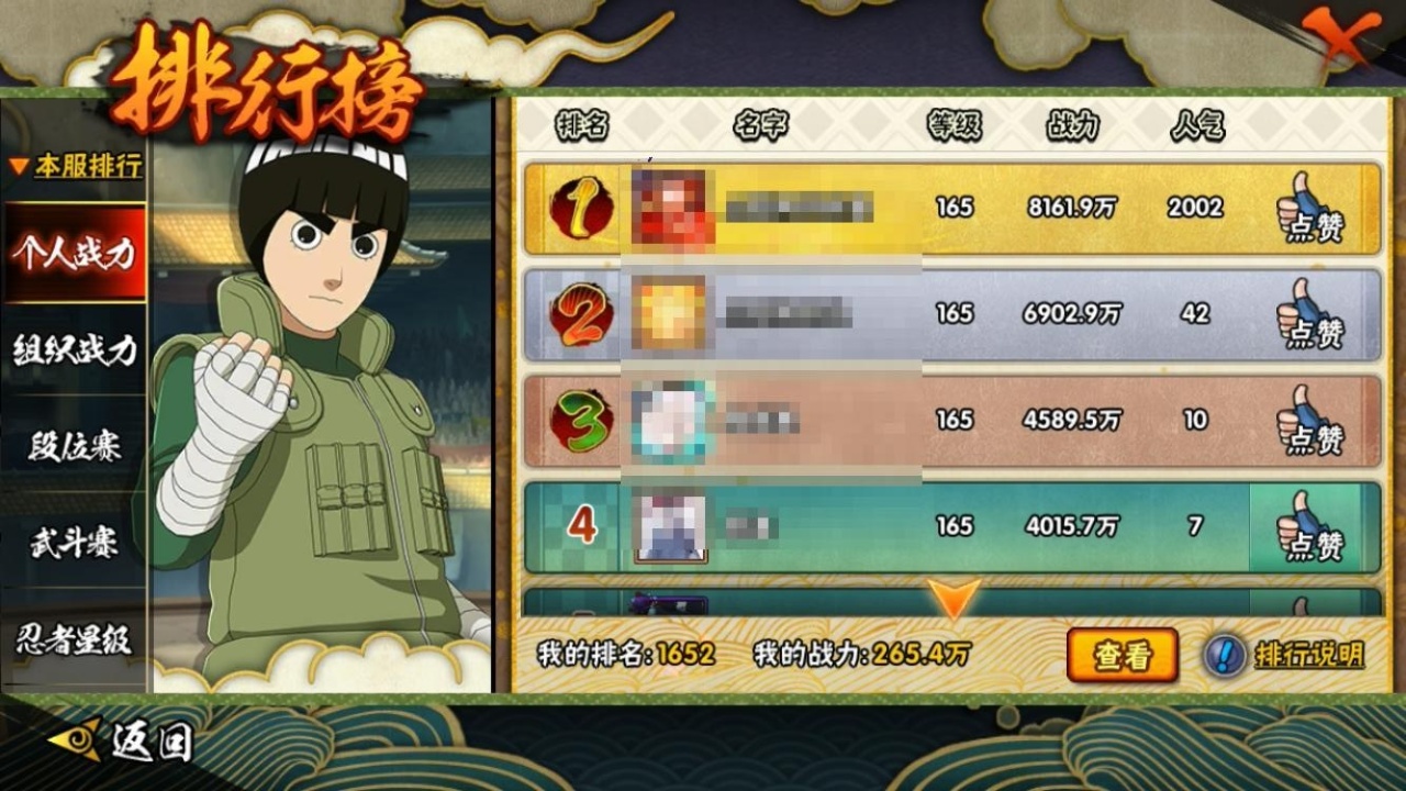 [10924141]7S!实名: 包人脸 贵族等级: V10 S忍数: 7 A忍数: 14 战力值(万): 265 S级忍者: 宇智波斑「秽土转生」,佩恩「天道」,波风水门,宇智波鼬 「须佐能乎」,自来也 「舞之豪杰」,宇智波佐助「永恒万花筒」,宇智波止水「须佐能乎」 通灵兽: 忍龟,蛤蟆吉,蓝蛇,猿魔,蛞蝓,蛤蟆仙人,镰鼬,山椒鱼,蜃,鲛鲨,砂之守鹤