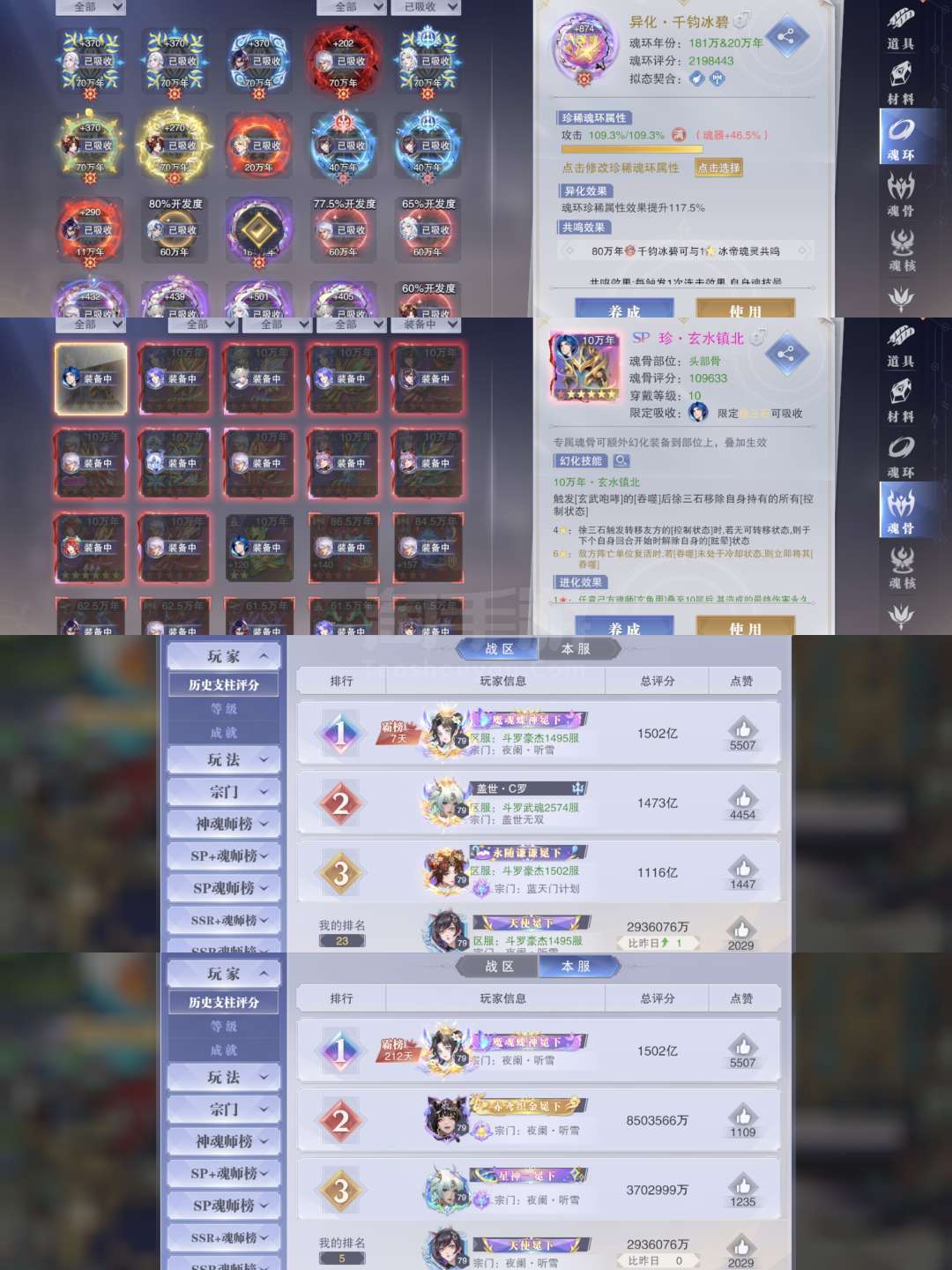 420亿战力。79级魂圣。1万2钻石213抽。双神唐三18sp。黑皮双神。泳装小舞。1法相双神。