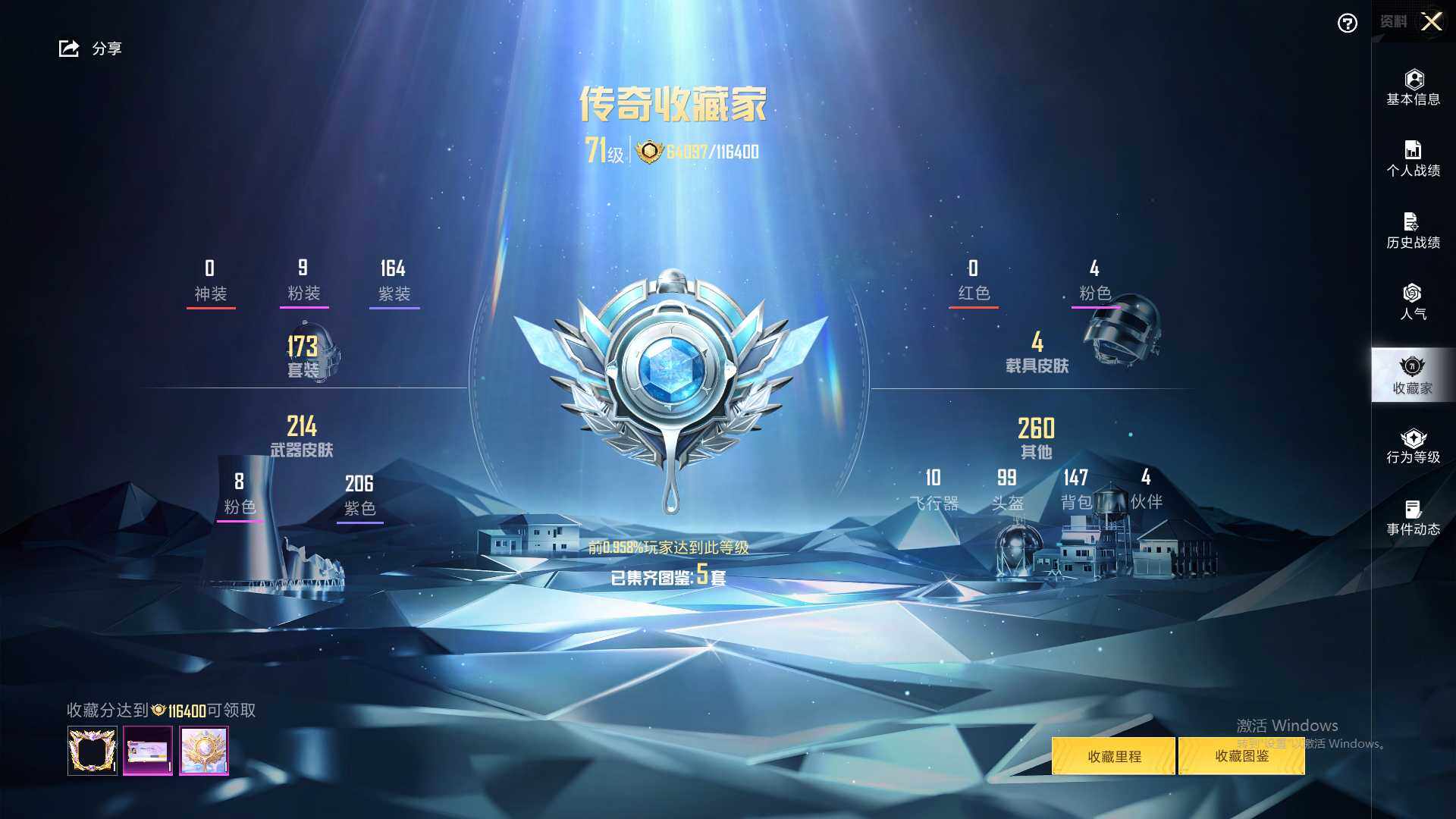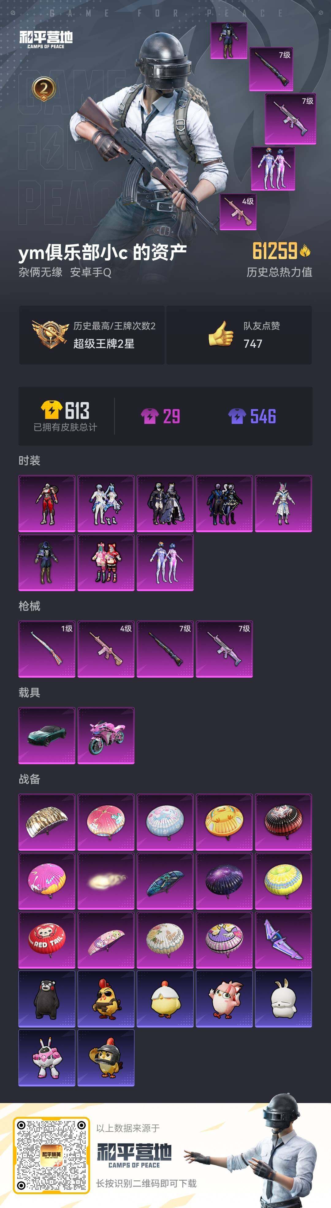 苹果 手Q-9粉装-8特效枪-4载具-5粉色飞行器-82586热力值-13王牌印记-173套装-233枪皮