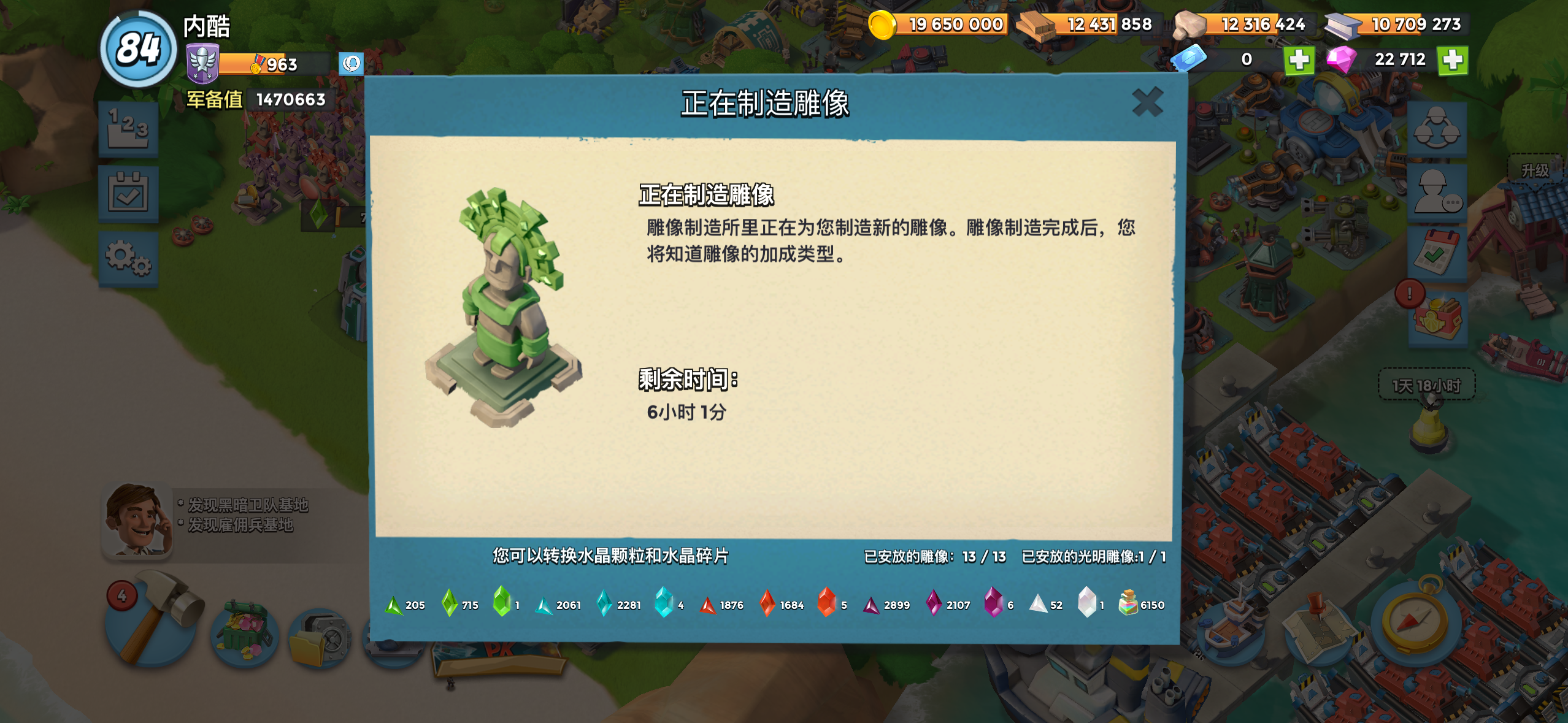 雕像都是进攻型最好的,仓库里还有防御的雕像