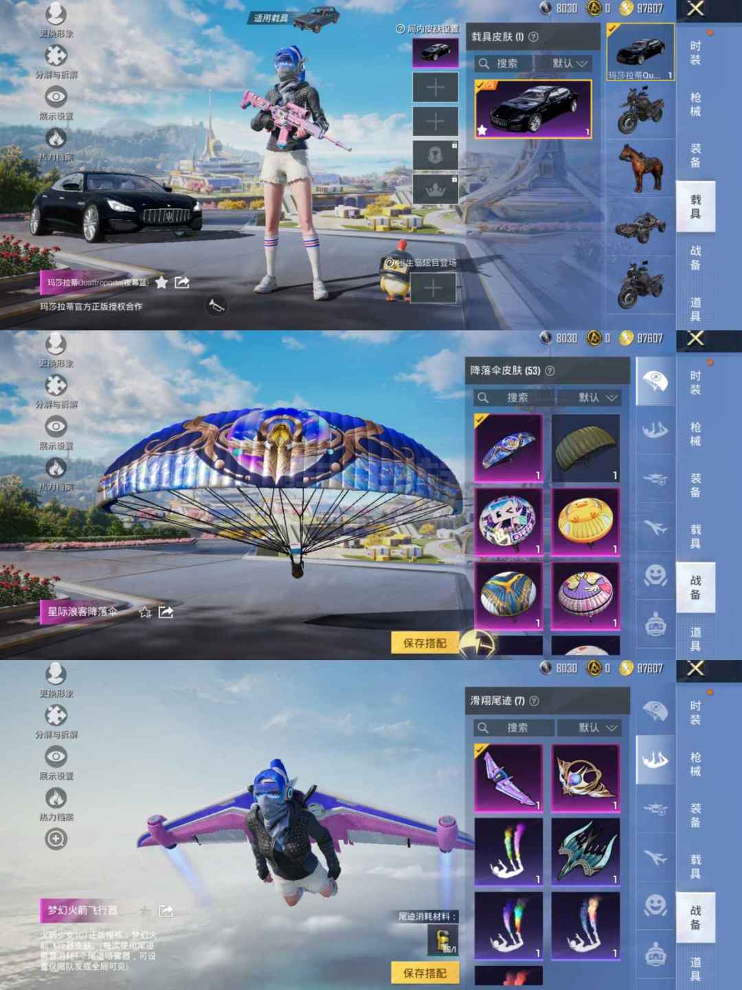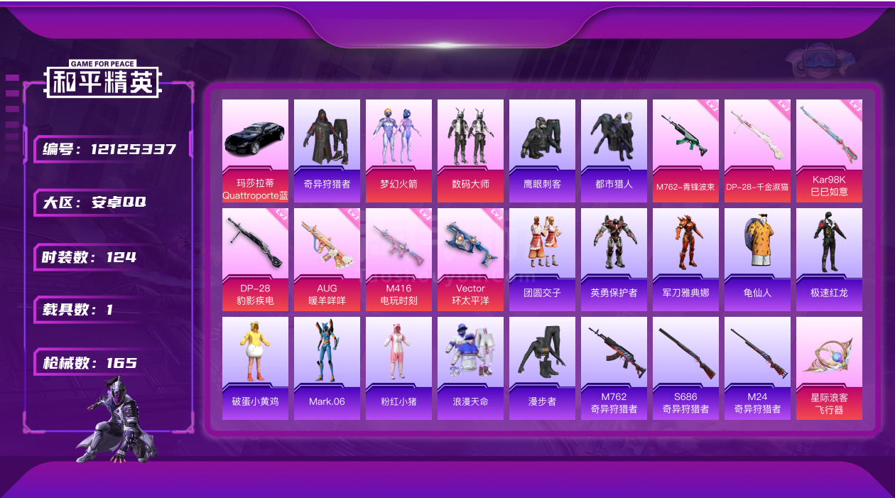 M103161【身法号1载具2粉装7特效枪 梦幻火箭 数码大师 蓝螳螂 奇异狩猎者 都市猎人 浪漫天