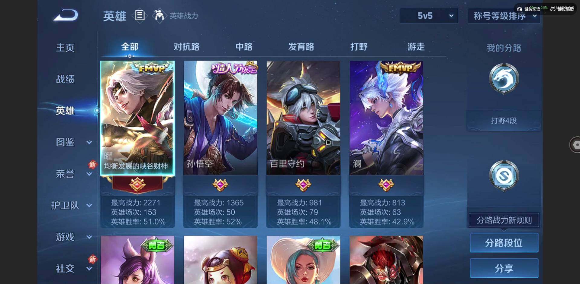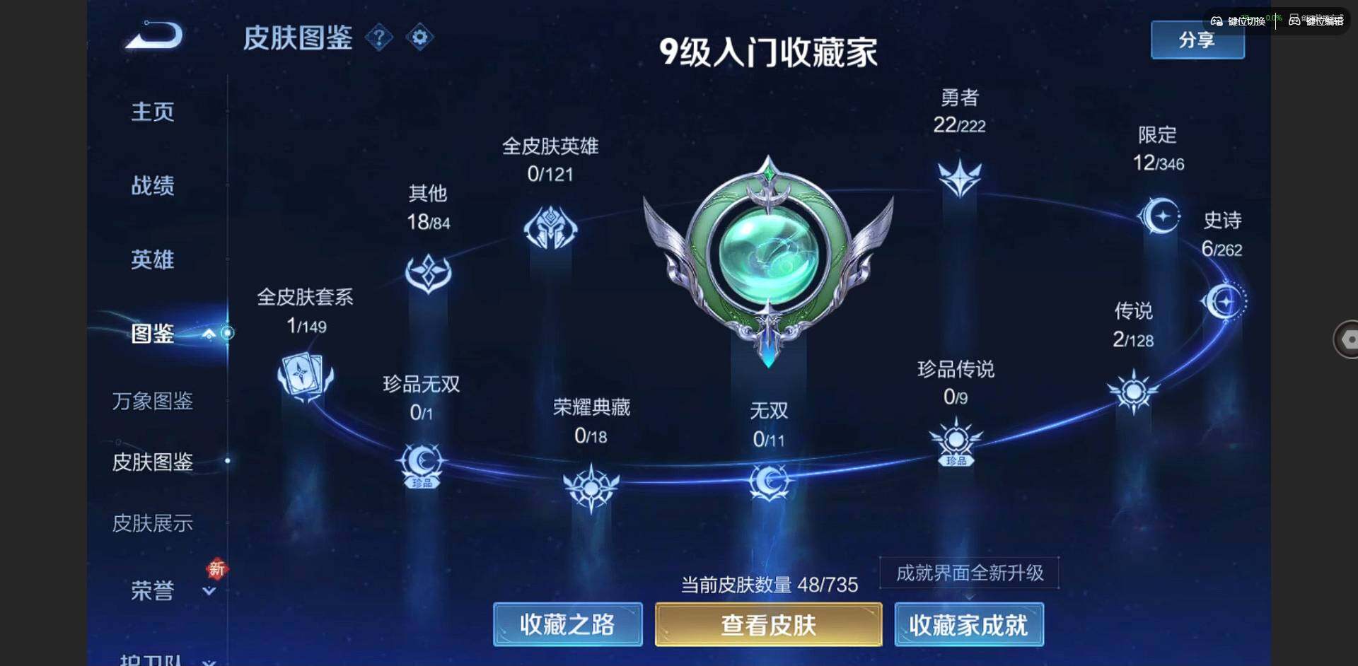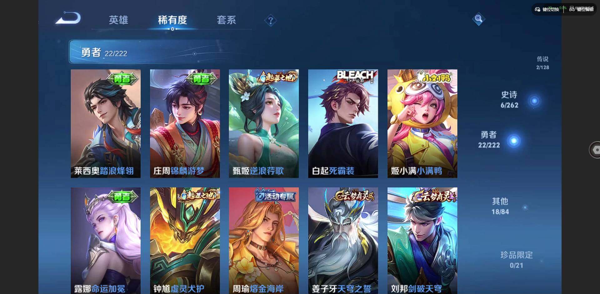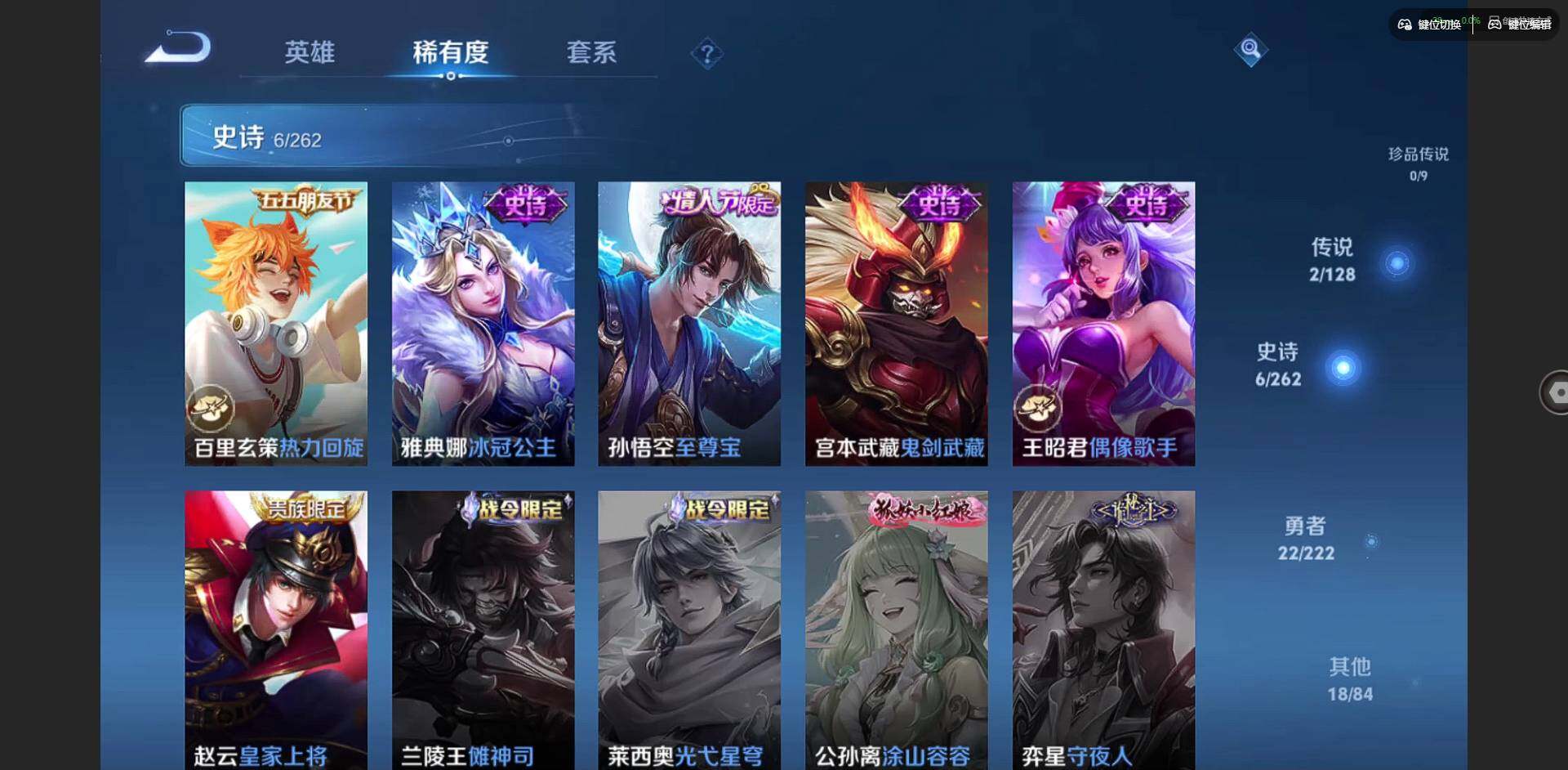 实名: 可修改 贵族等级: V5 英雄数: 85 皮肤数: 48 传说皮: 云