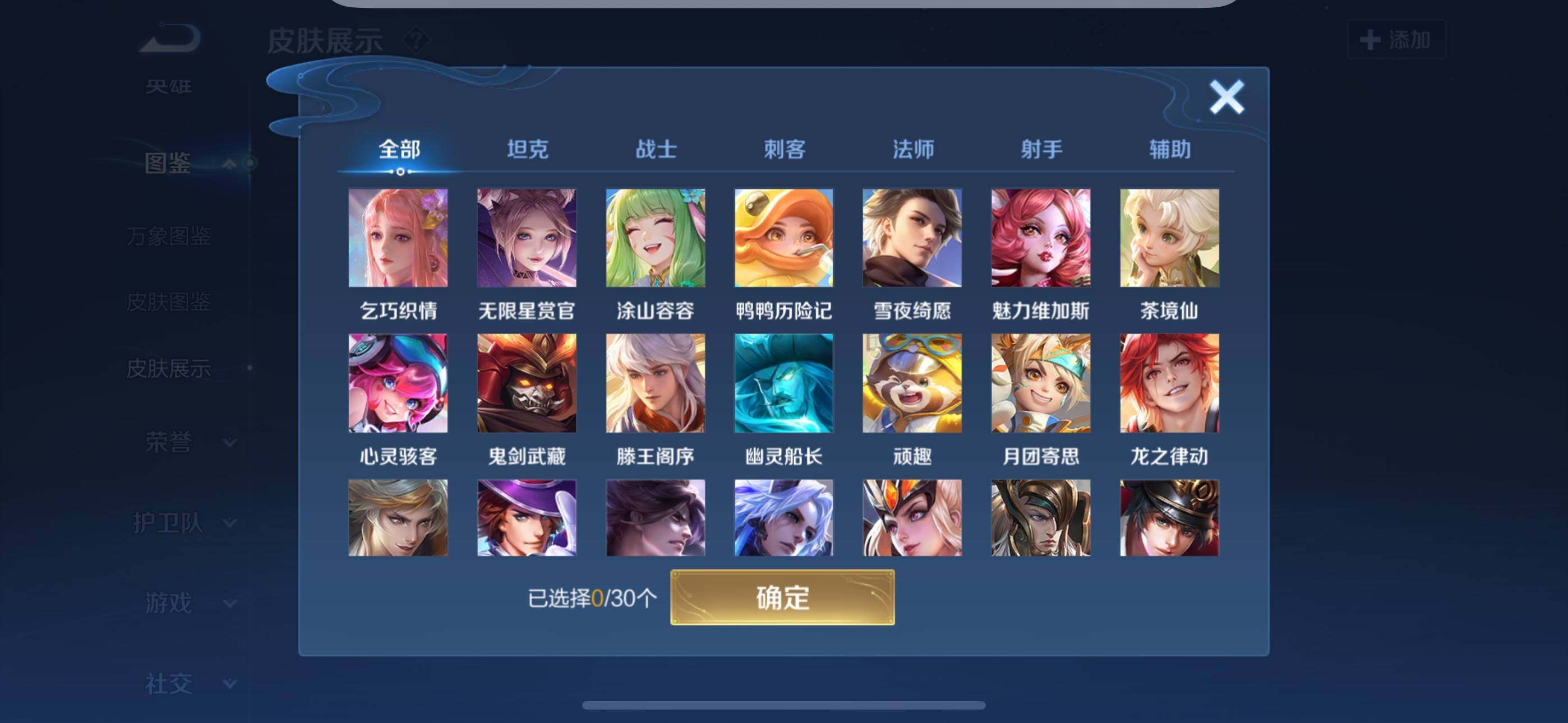 【限定皮肤】:狄仁杰阴阳师,赵云皇家上将,狄仁杰魔术师,项羽海滩派对,梦奇顽趣,裴擒虎擒涛扼浪,鲁班大师探海日志,张良古海寻踪,蒙