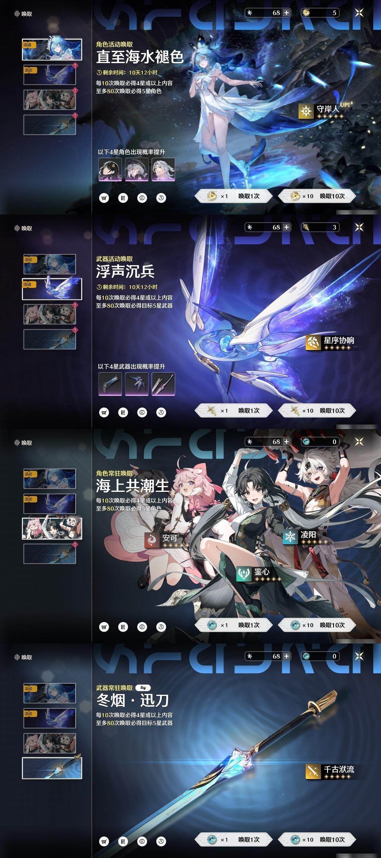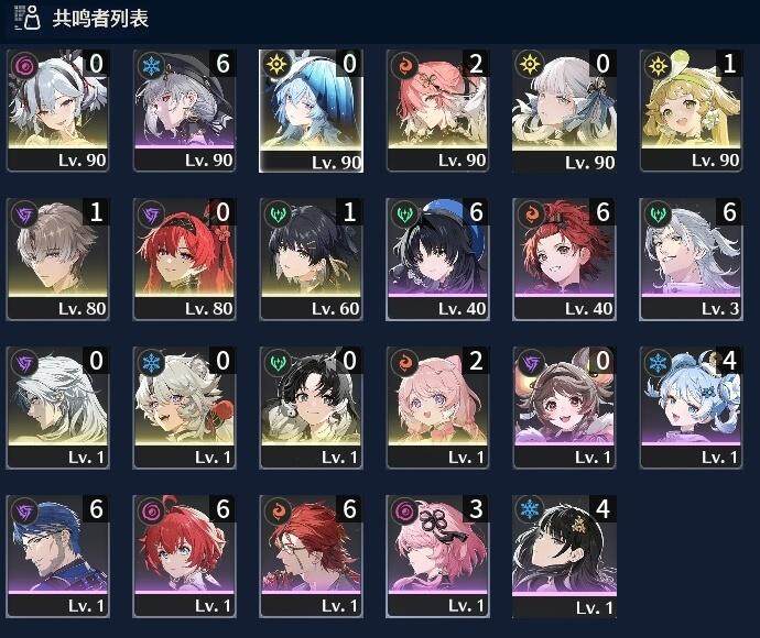 未绑定,椿,守岸人,相里要,长离,今汐,吟霖,维里奈,鉴心,卡卡罗,安可,凌阳,裁春,星序协响,时和岁稔,掣傀之手,千古洑流,停驻之烟,2命长离,2命安可,1命相里要,1命维里奈,0命椿,0命守岸人,0命今汐,0命吟霖,0命鉴心,0命卡卡罗,0命凌阳,精1裁春,精1星序协响,精1时和岁稔
