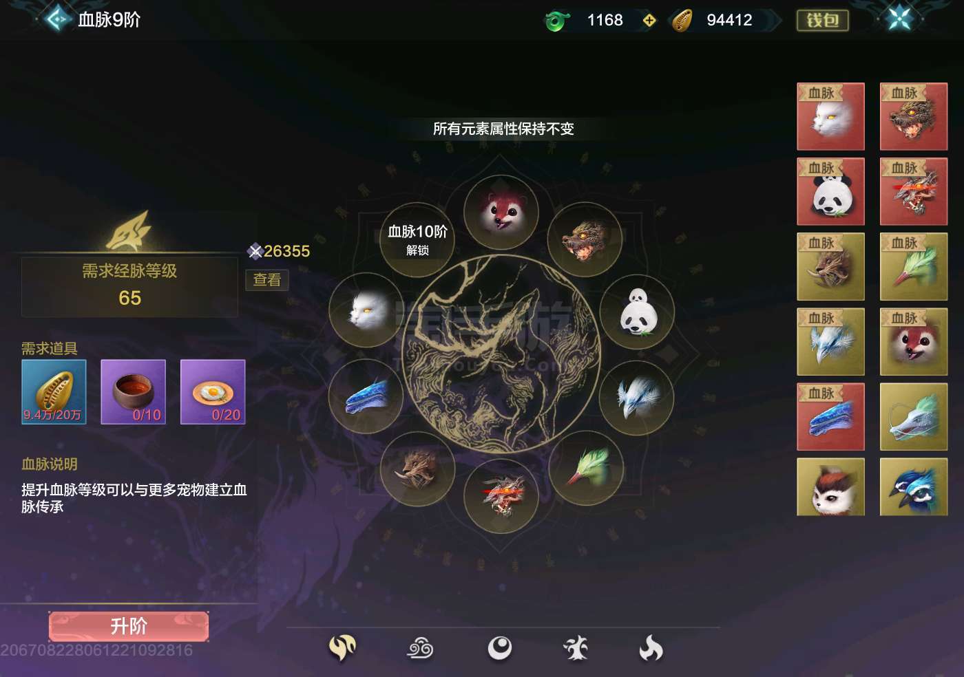 10万战力,4个双甲级宠物,白泽 霸下 睚眦 熊猫,侍从兔媛媛,木元素攻击2400
