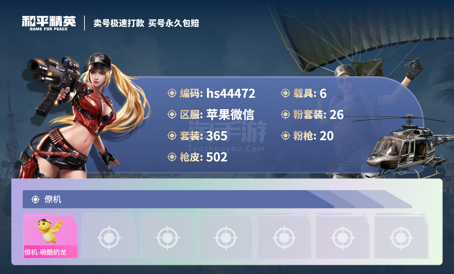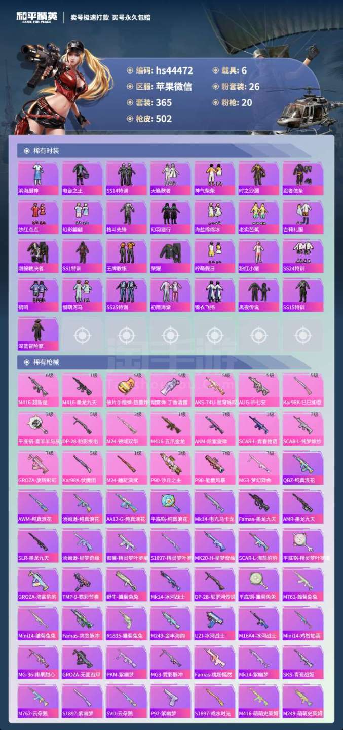 hs44472 苹果v-25王牌印记-有战神框-26粉装-20特效枪-6载具-180188热力值-